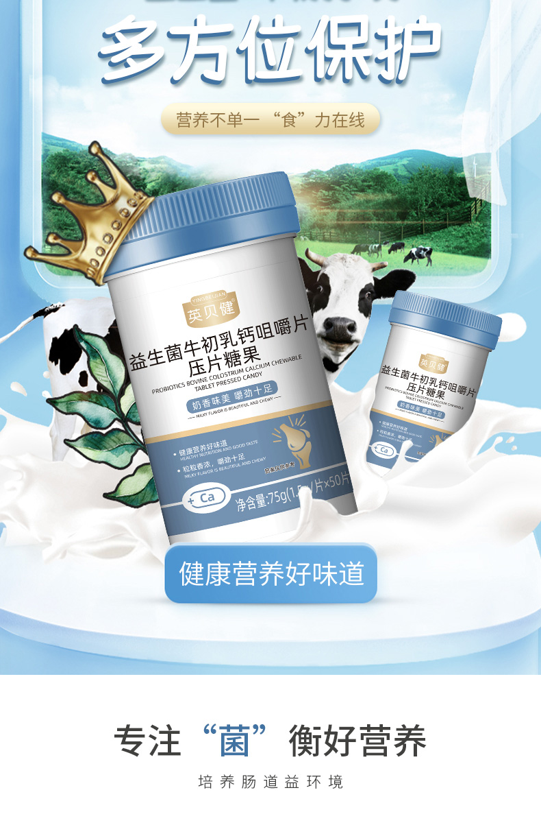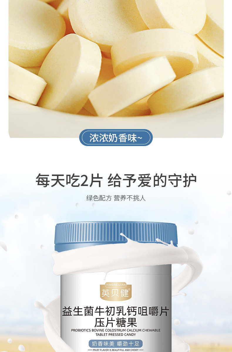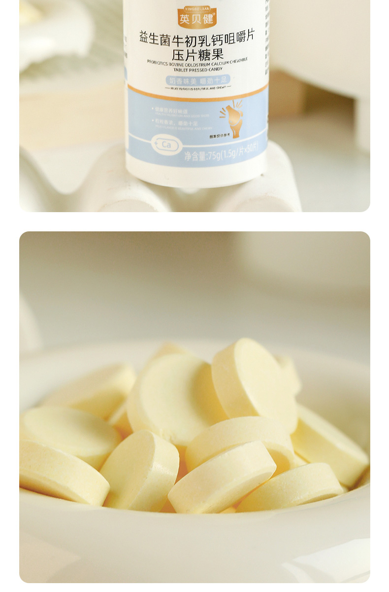 英贝健益生菌牛初乳钙片实发4瓶(1.5g*50片/瓶)
