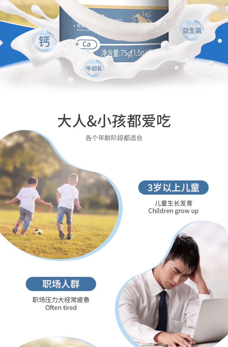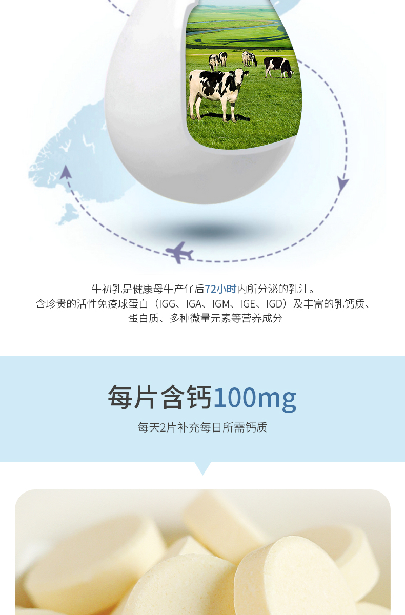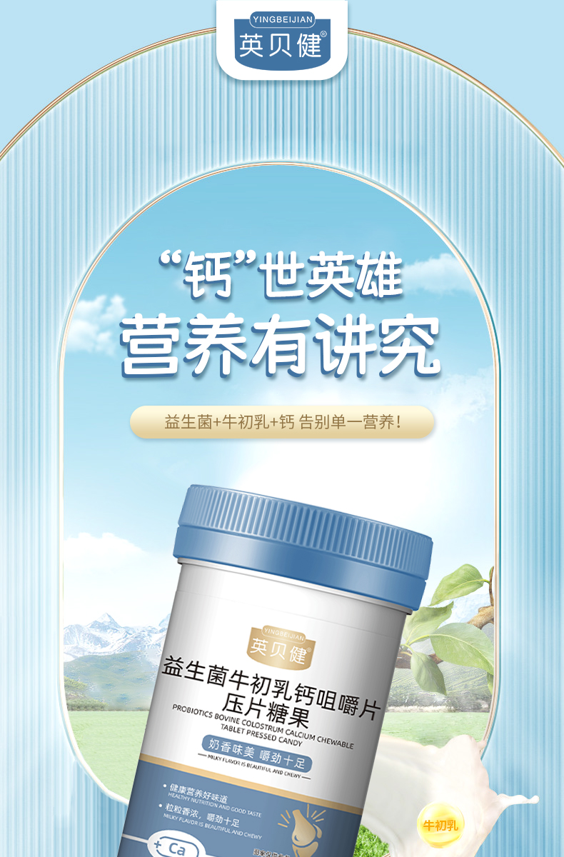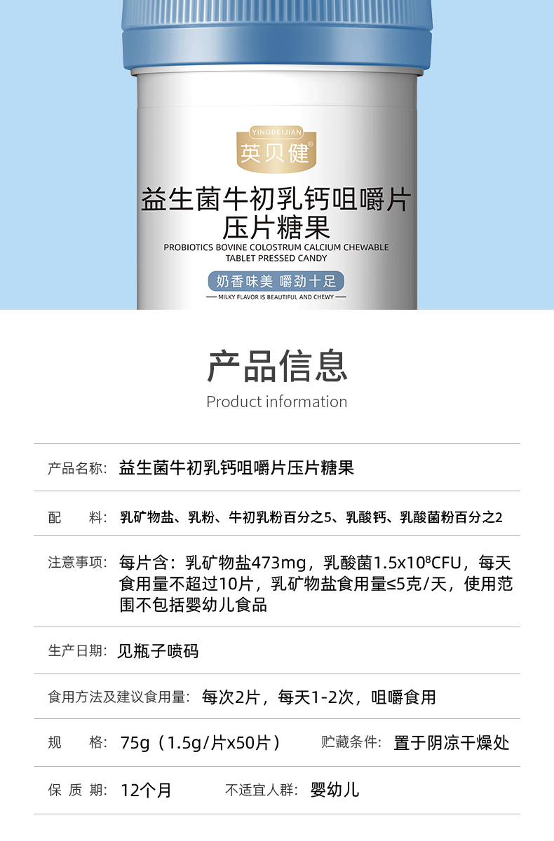 英贝健益生菌牛初乳钙片实发4瓶(1.5g*50片/瓶)