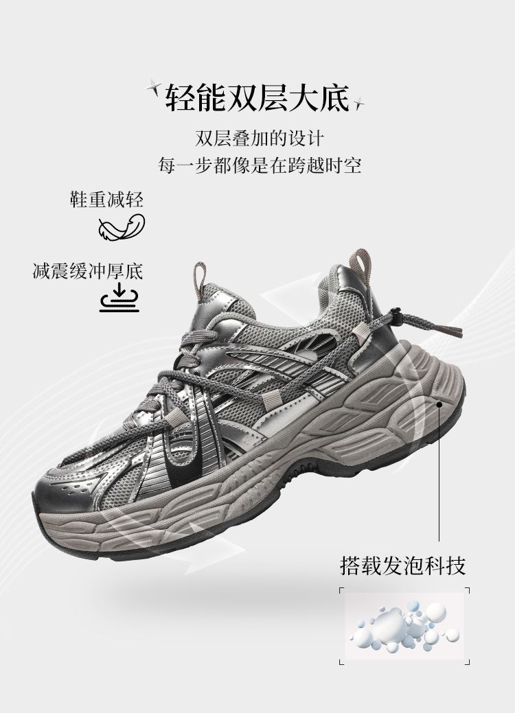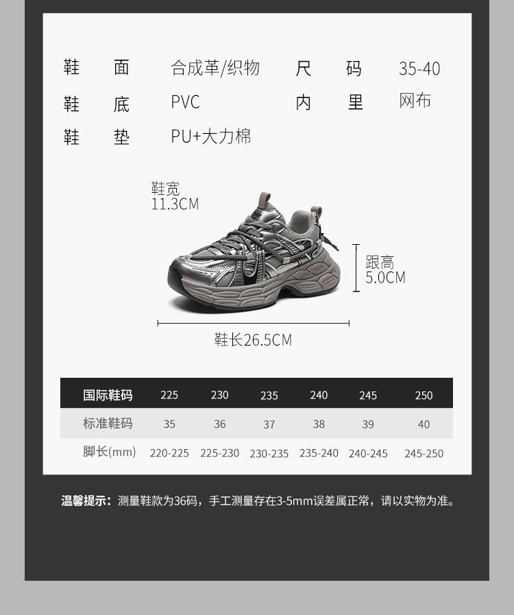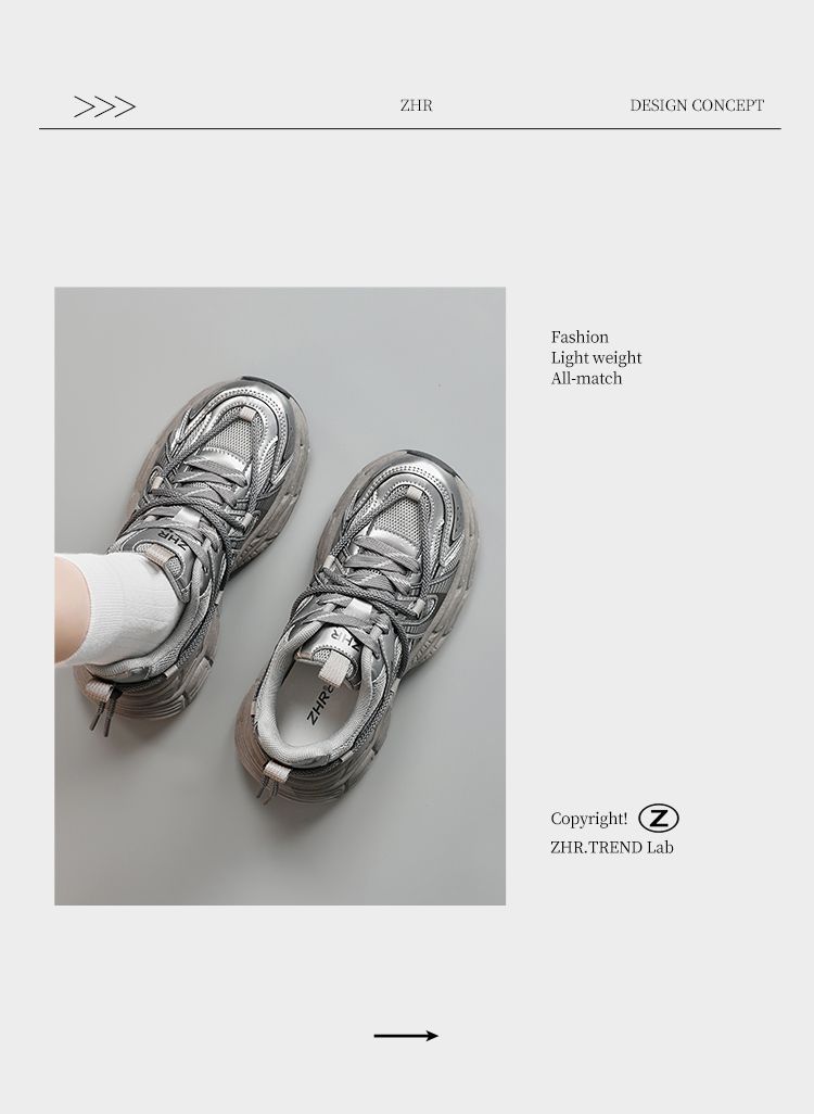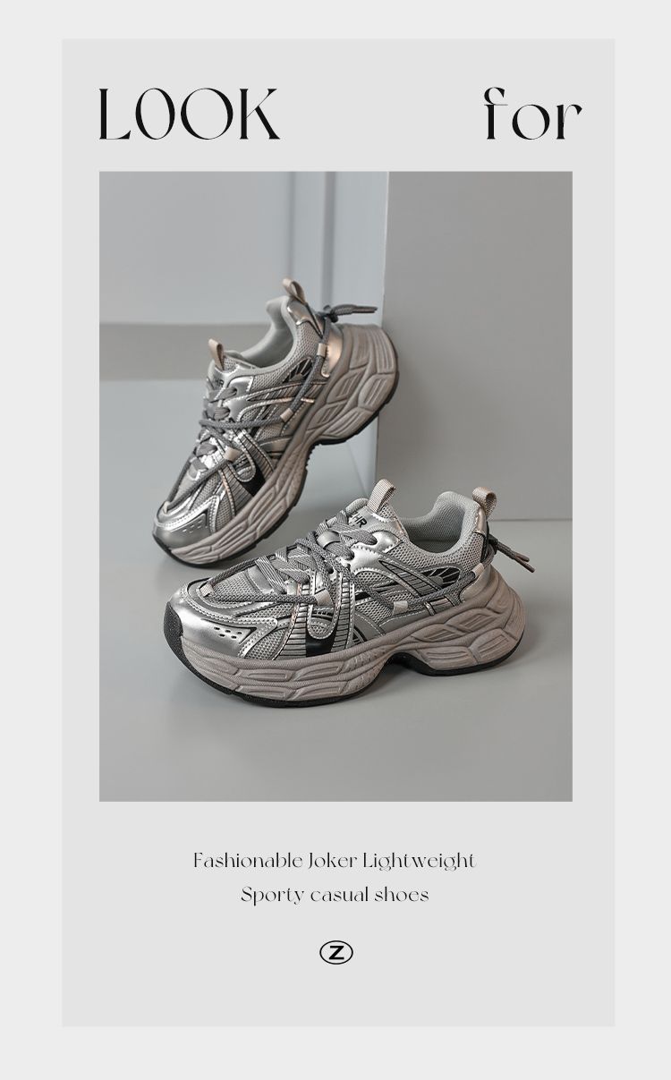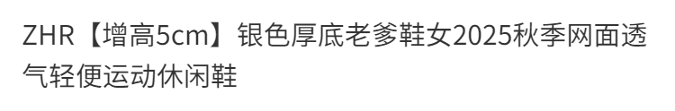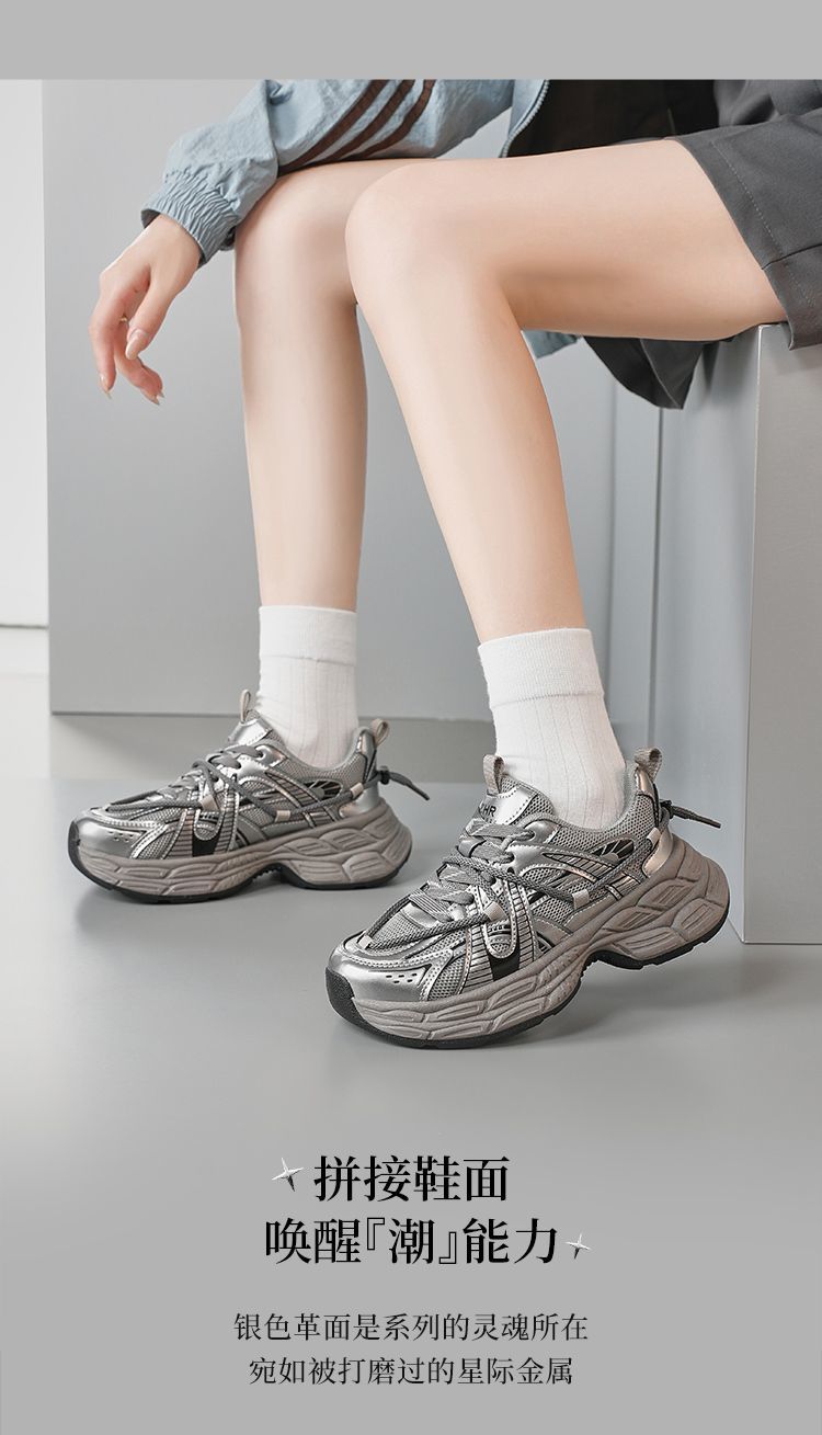 ZHR【增高5cm】银色厚底老爹鞋女2025秋季网面透气轻便运动休闲鞋