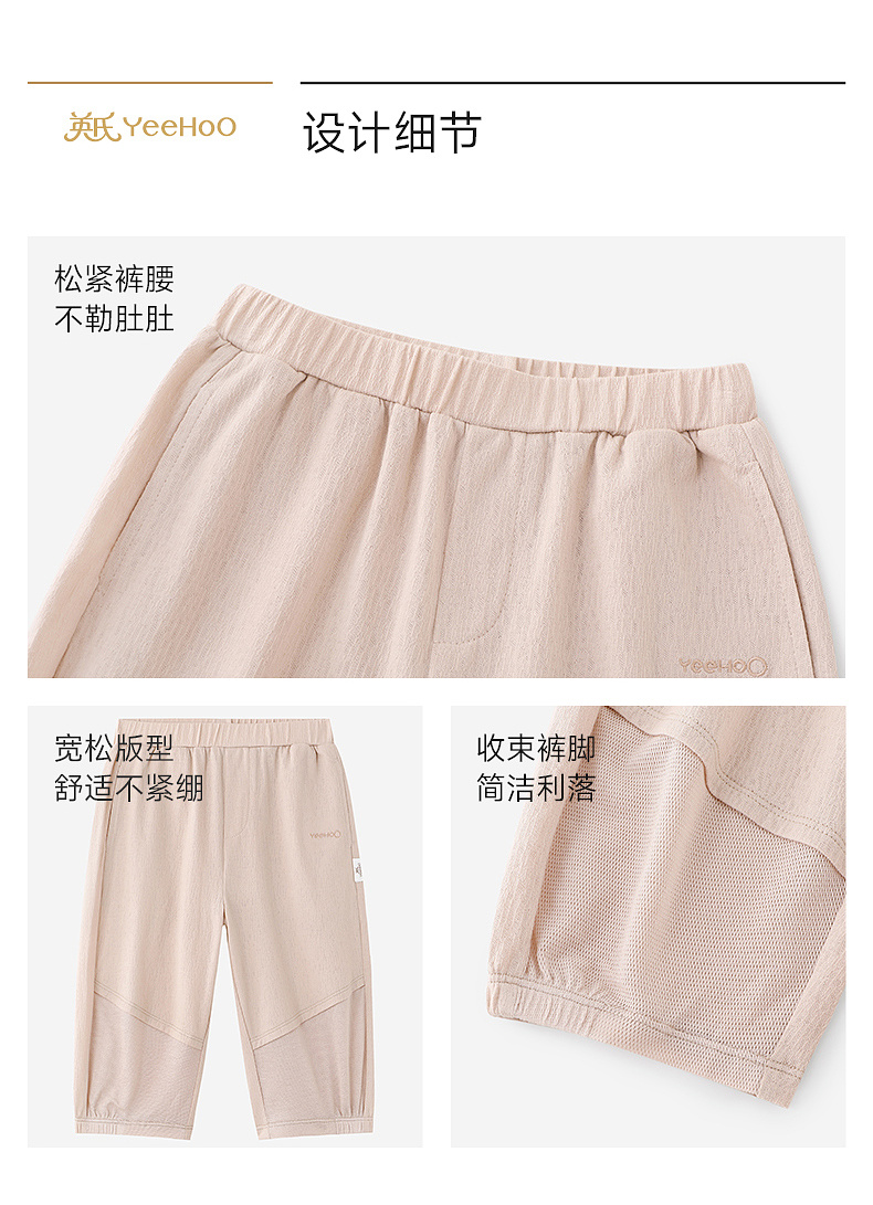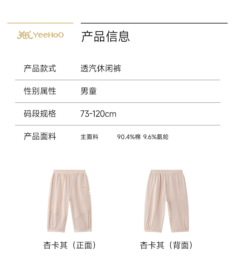 【商场同款】英氏儿童长裤男童夏季杏卡其色裤子百搭运动透气外裤