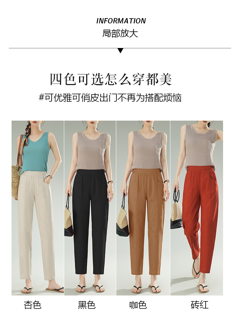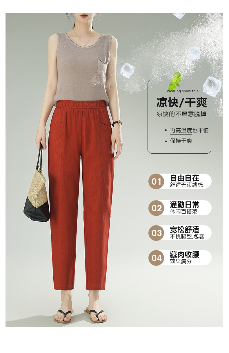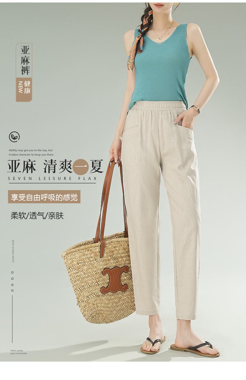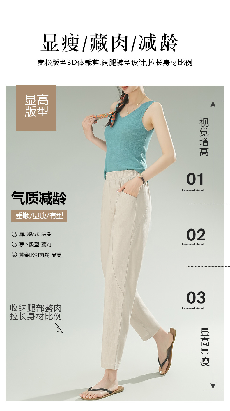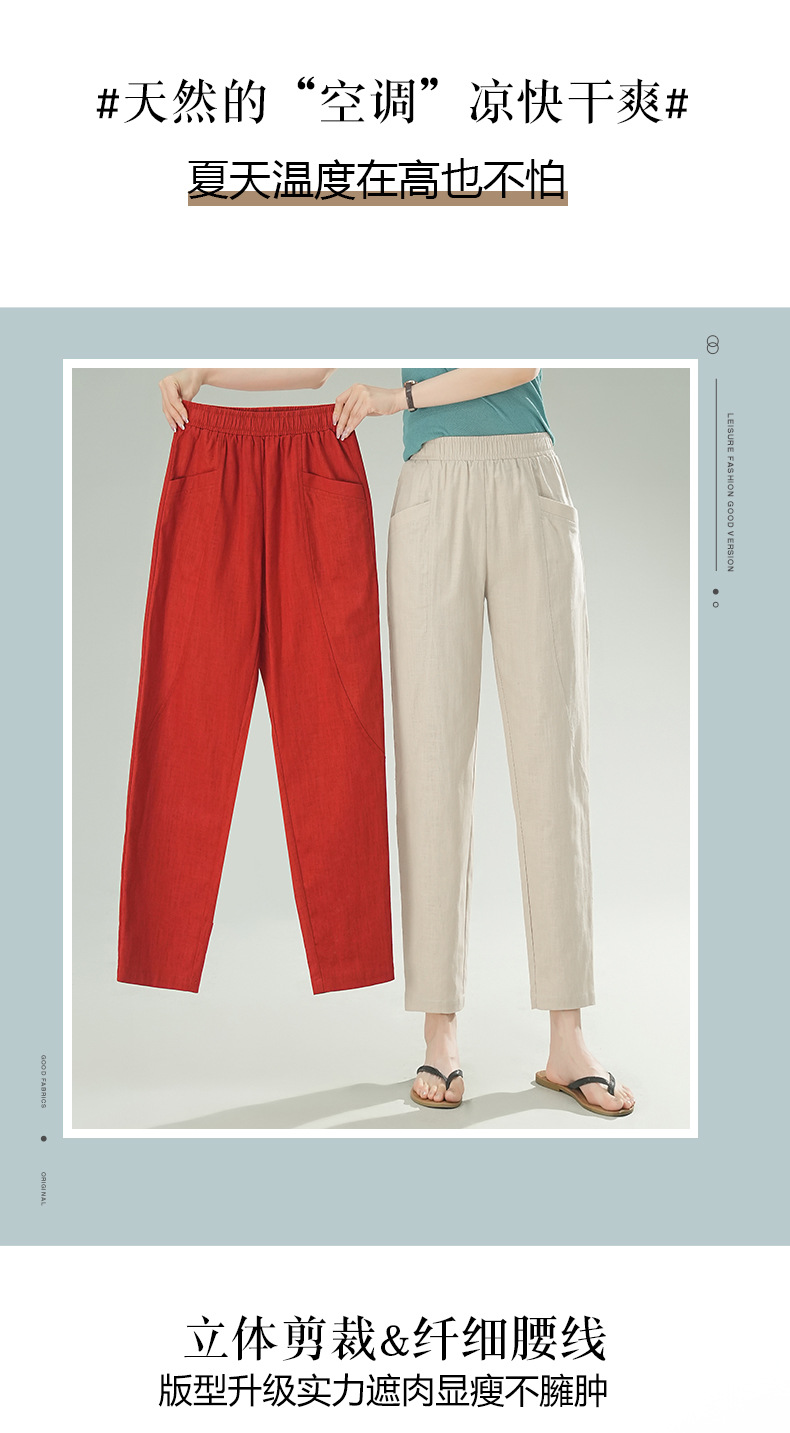 雀说棉麻裤女哈伦萝卜大码宽松高腰九分亚麻薄款直筒休闲裤子AL28589