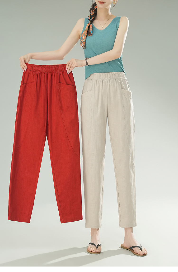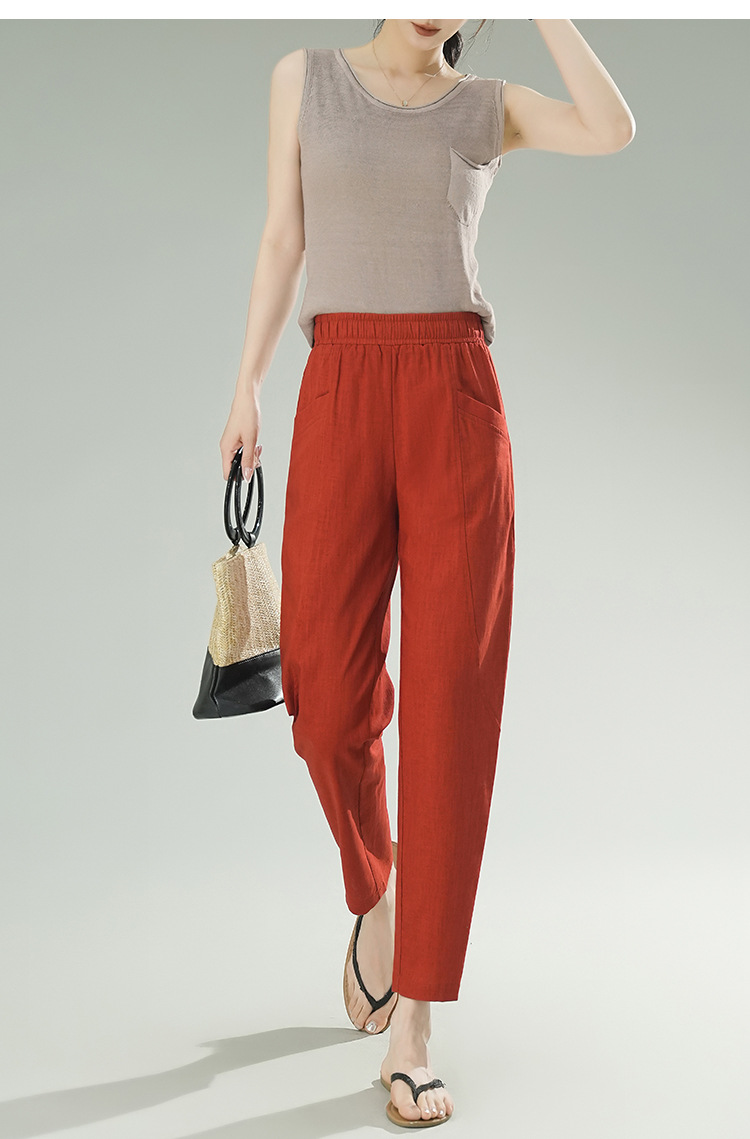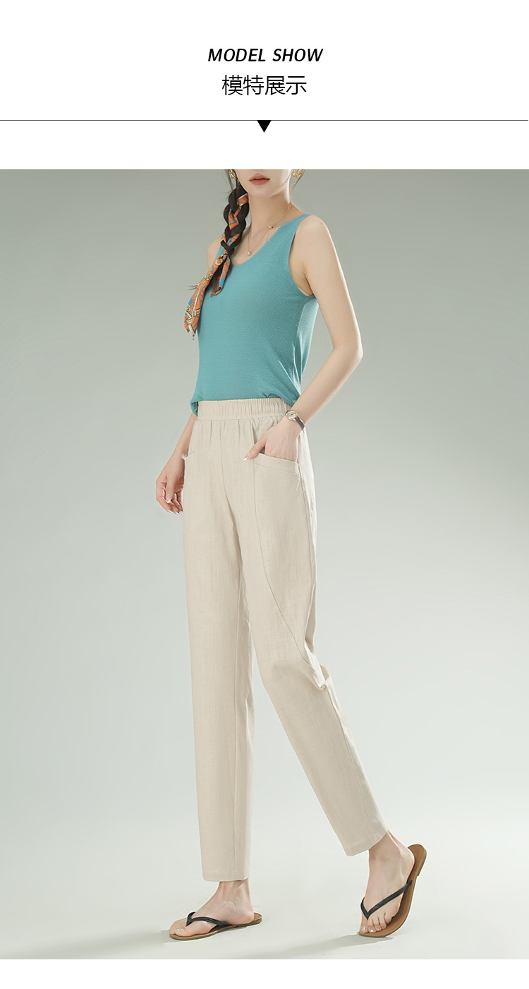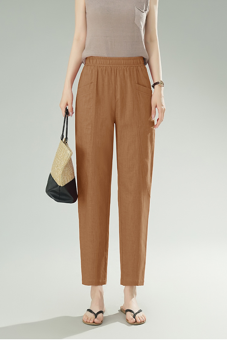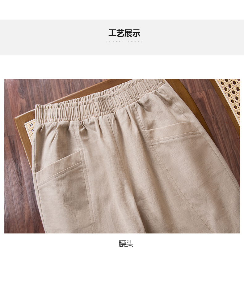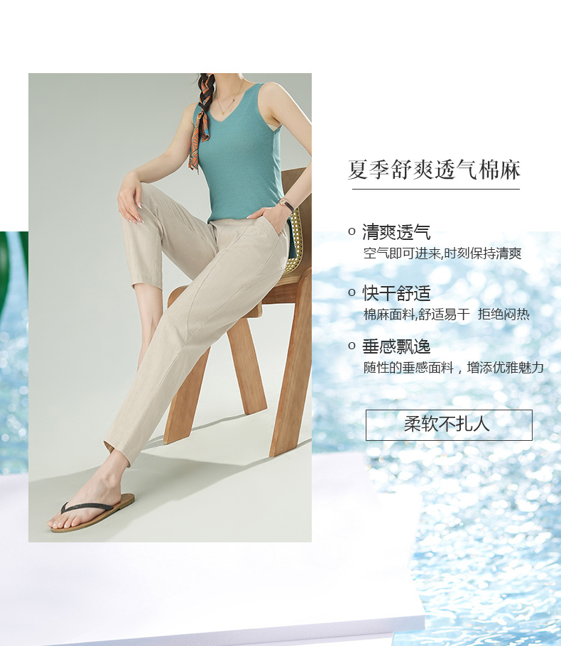 雀说棉麻裤女哈伦萝卜大码宽松高腰九分亚麻薄款直筒休闲裤子AL28589