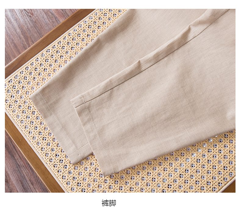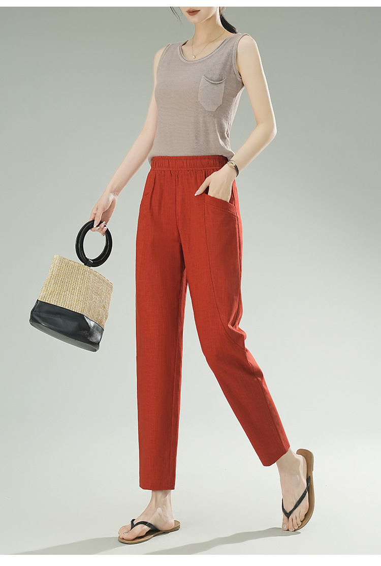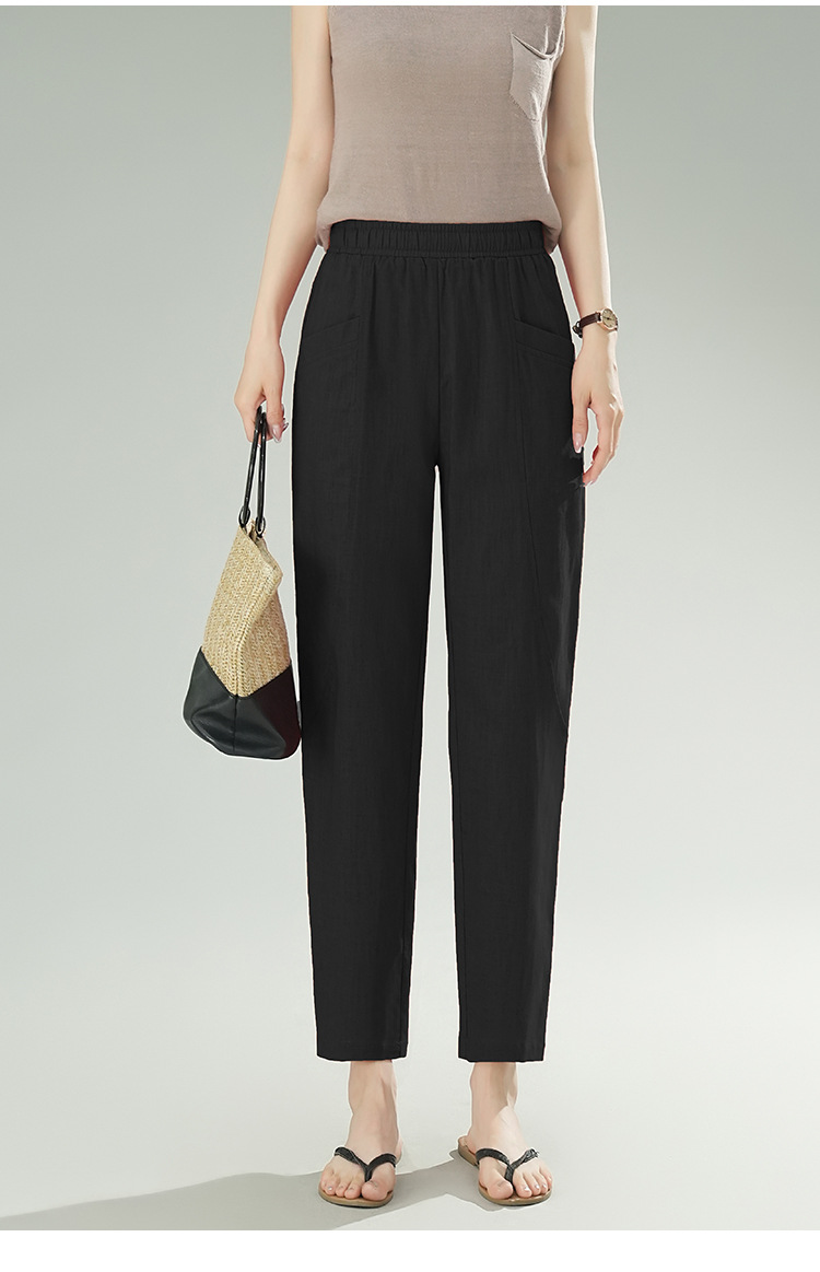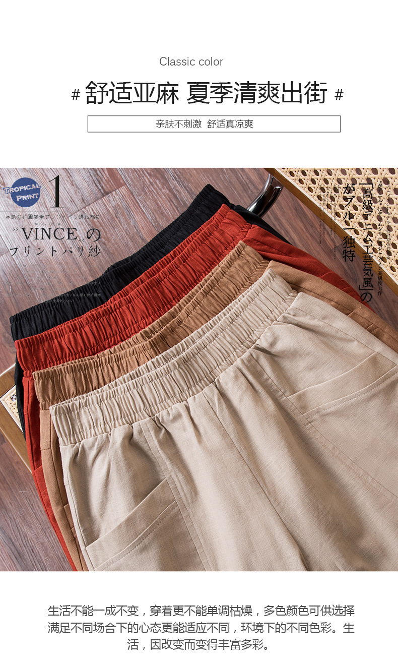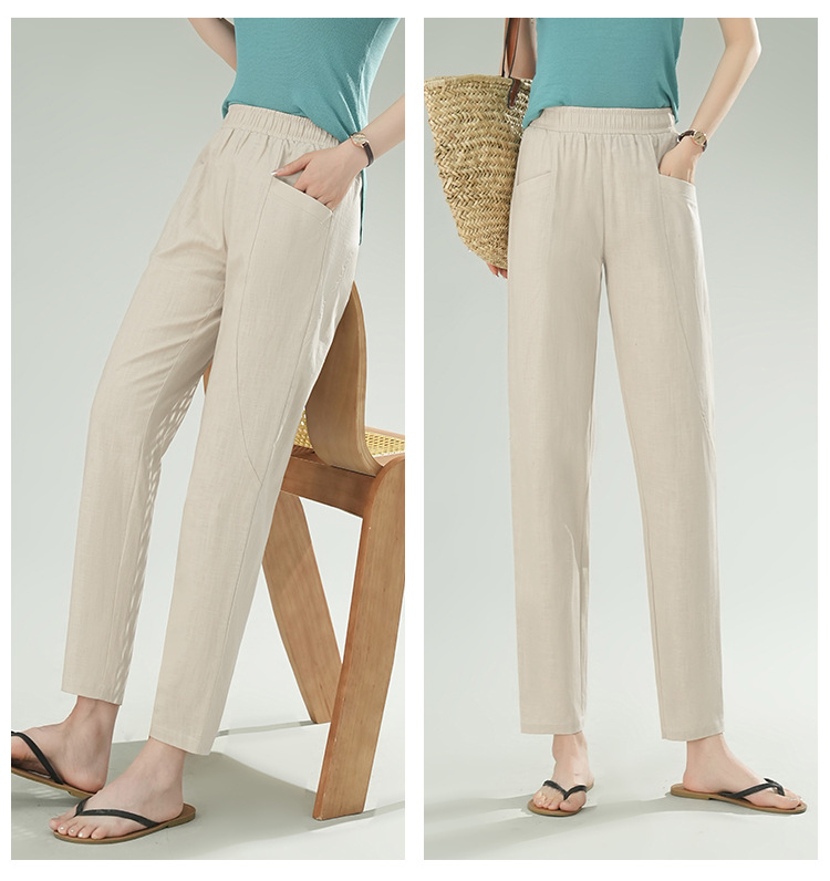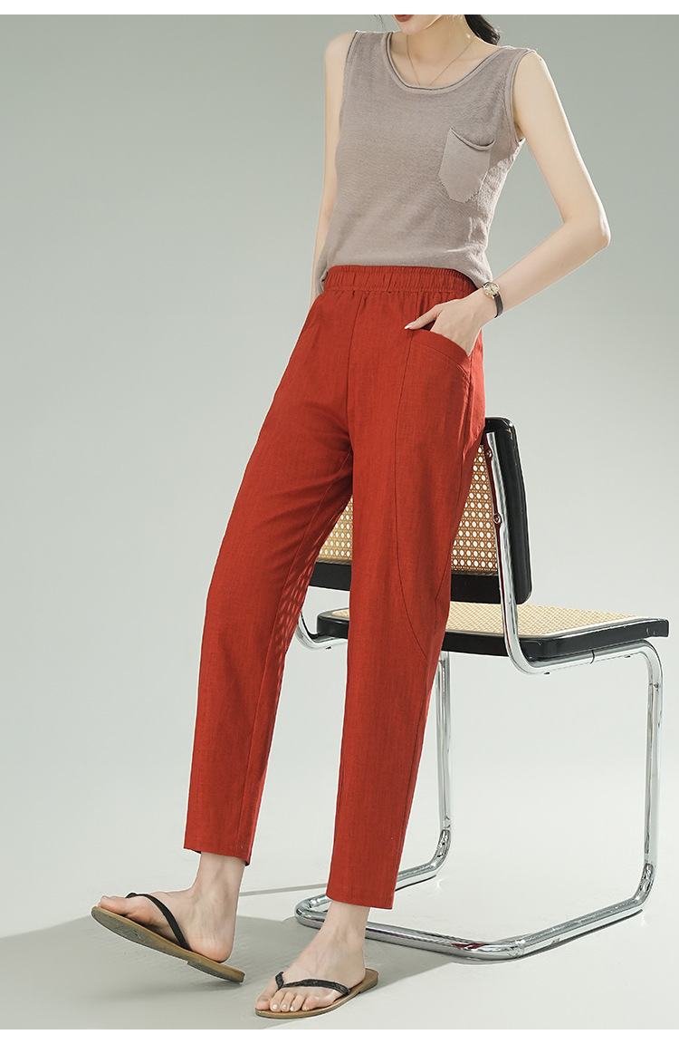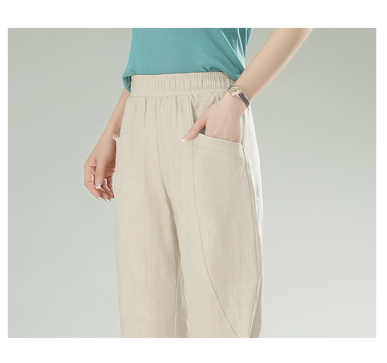 雀说棉麻裤女哈伦萝卜大码宽松高腰九分亚麻薄款直筒休闲裤子AL28589