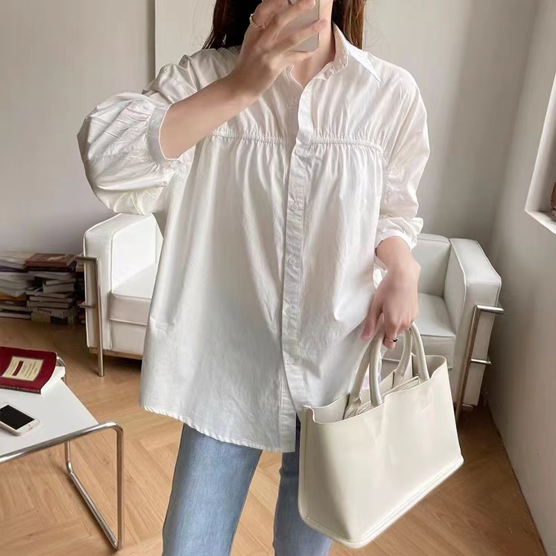 七夕促→ 微脏23303褶皱款中长翻领衬衫防晒外套-喜出