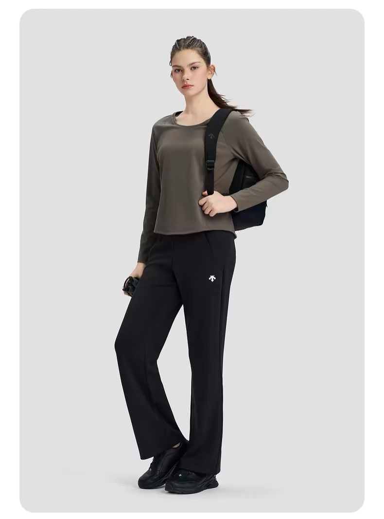 118 货号098632118 37 DESCENTE迪桑特WOMEN’S TRAINING女士直筒裤早春新品,采用质感空气层面料制成的运动长裤,面料触感细腻,柔软亲肤,四面弹结构,内含莫代尔材质,更垂坠顺划,直筒裤型设计,膝盖处微微内收,修饰腿型的同时,更能拉长身材比例,整体简约风格,更舒适白搭。