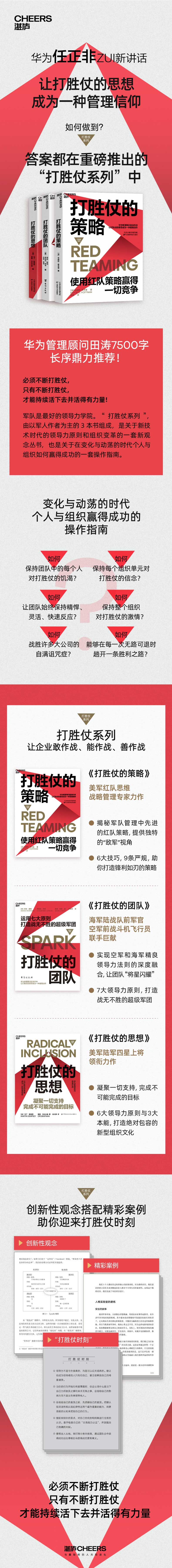 “打胜仗系列”,由以军人作者为主的3本书组成,是关于新技术时代的领导力原则和组织变革的一套新观念丛书,也是关于在变化与动荡的时代个人与组织如何赢得成功的一套操作指南。