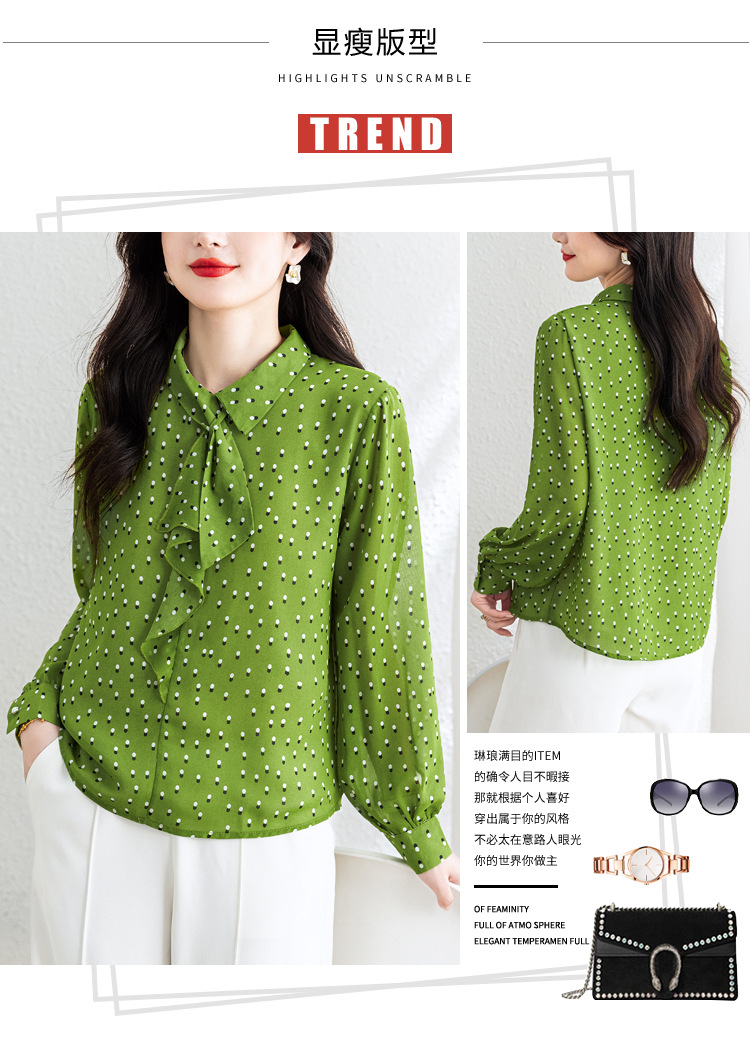 KQL 369H9971法式气质雪纺飘带衬衫时尚洋气减龄上衣