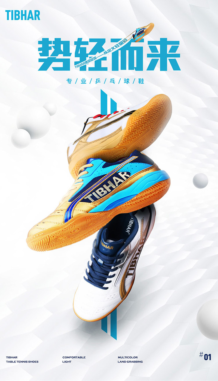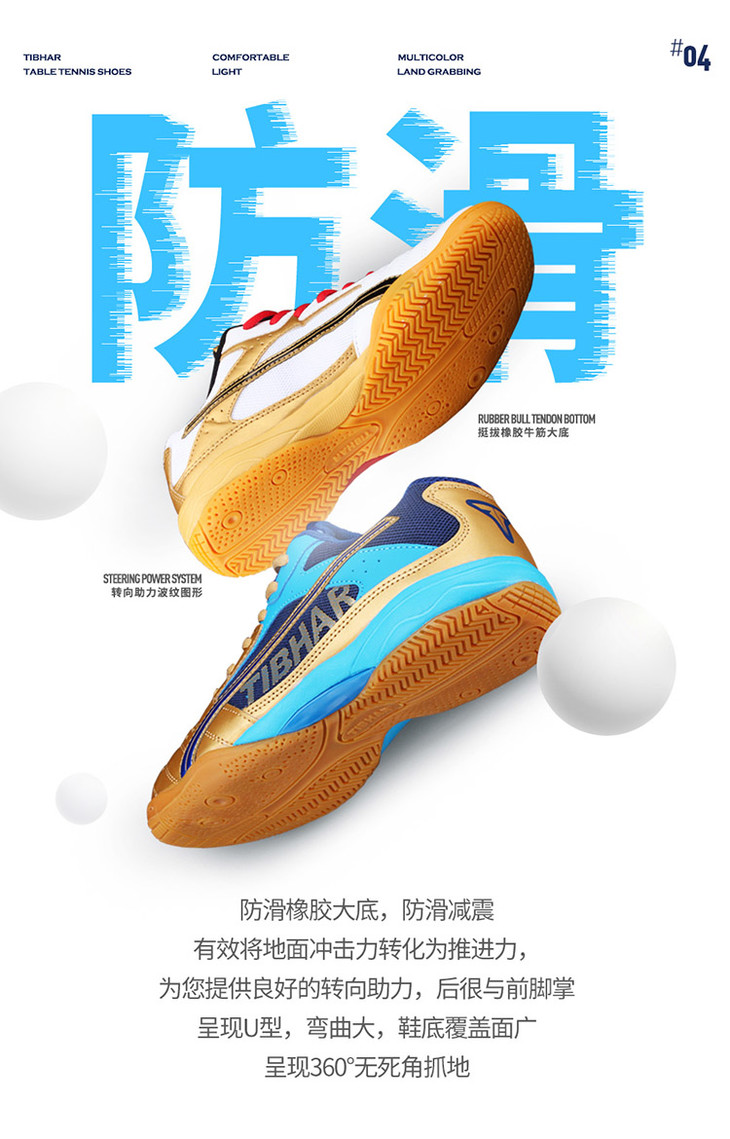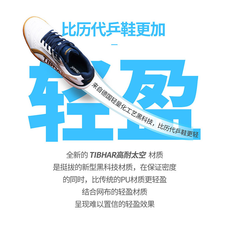 商品名称:挺拔Tibhar 01918 蓝/金 新T飞翔系列运动鞋 减震防滑 耐磨透气