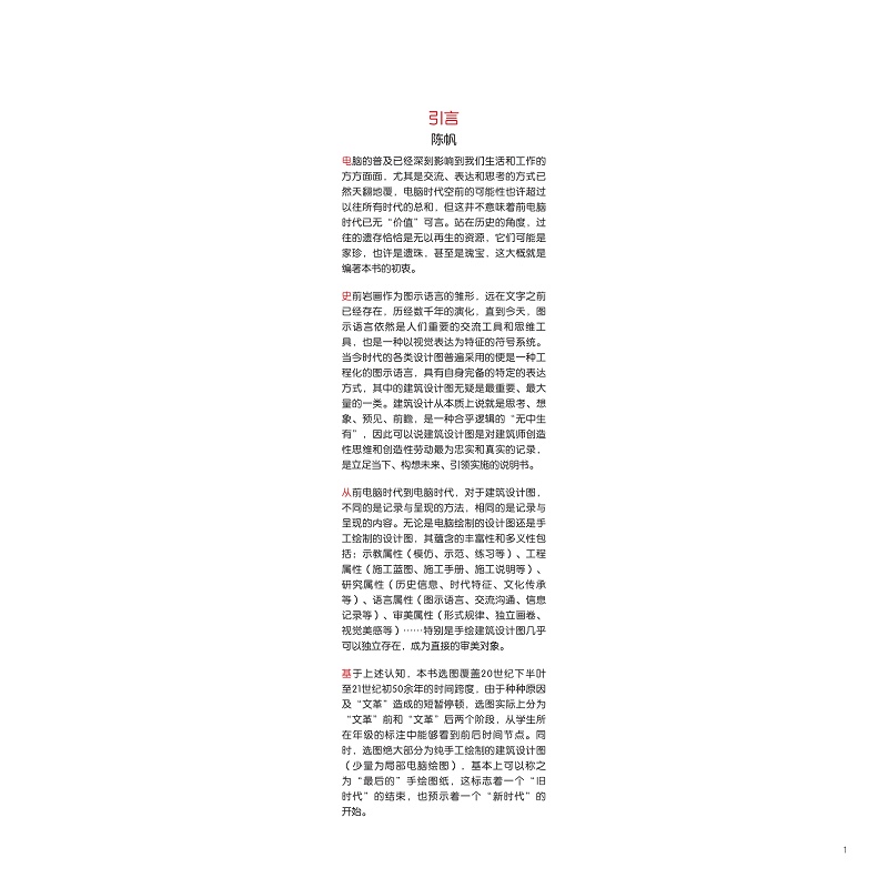 本书为浙江大学建筑专业典藏丛书之一。本书收录了浙江大学建筑学专业自1958级开始到2009级为止手绘图时代(前电脑绘图时代)学生纯手工绘制的建筑设计作业,包括课程设计作业、毕业设计作业和快题设计作业三部分内容。书中所录设计图纸是从尚存的历年留系优秀作业中挑选出来的精品,是手绘图时代建筑学专业教学成果的真实记录,具有鲜明的时代特征。通过书中设计图纸的呈现,清晰展示出不同年代不同阶段建筑学专业教学的体系架构、承继关系、课程设置、训练手段、表达方式等各个方面,其价值不仅仅只限于收藏和承载记忆,更在于这些手绘设计图纸应该并且已经成为不可再生的教学辅助资料、设计参考资料和教学研究史料,同时还具有较高的艺术审美价值。