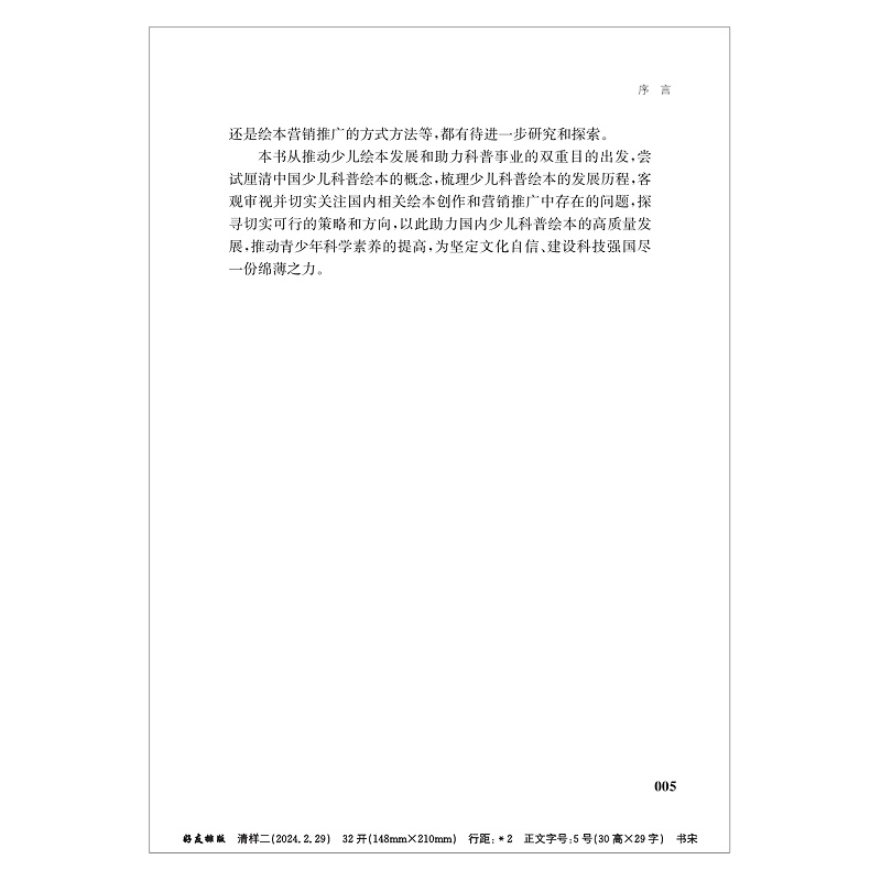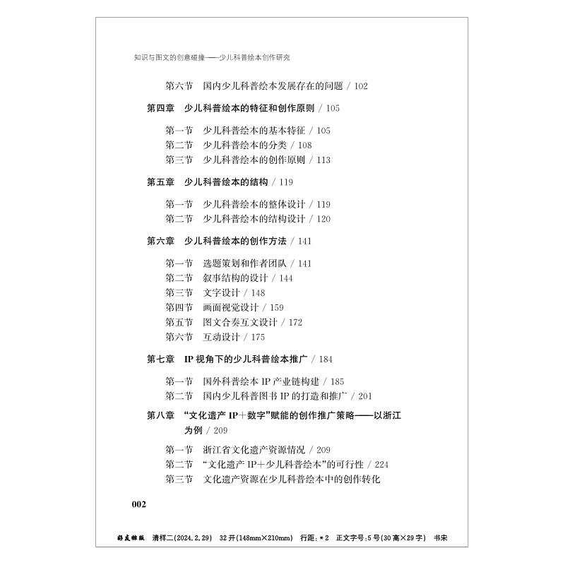 本书针对国内尤其是浙江省原创少儿科普绘本创作和出版现状,并结合国内外科普绘本先进创作理念,从选题设计、价值凝练、文图创作、衍生文创设计等方面,提出了能推动原创力提高、打造科普绘本精品、促进中国文化遗产传承的科普绘本创作路径。本书的出版对少儿科普绘本的创作推广、中国本土文化资源的保护和发展有实际价值,对建构融入新兴技术的中国传统文化理论,普及中国本土科技和人文知识,增强人们对祖国的文化自信和认同,促进浙江乃至全国的科普绘本出版业和数字经济的发展,也同样具有理论价值和实际价值。