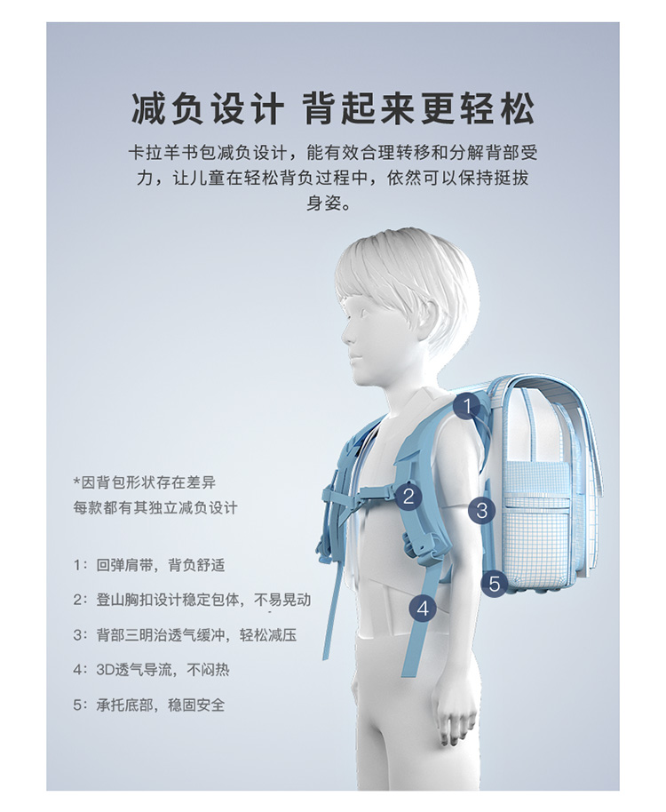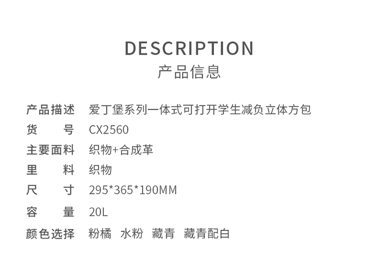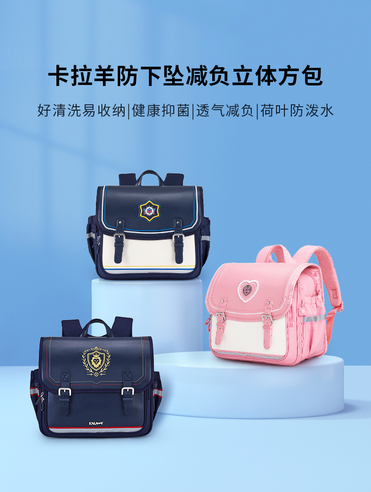 卡拉羊1-3-6年级18/20L减负防下坠爱丁堡系列立体方包 CX2114-1+CX2560-1