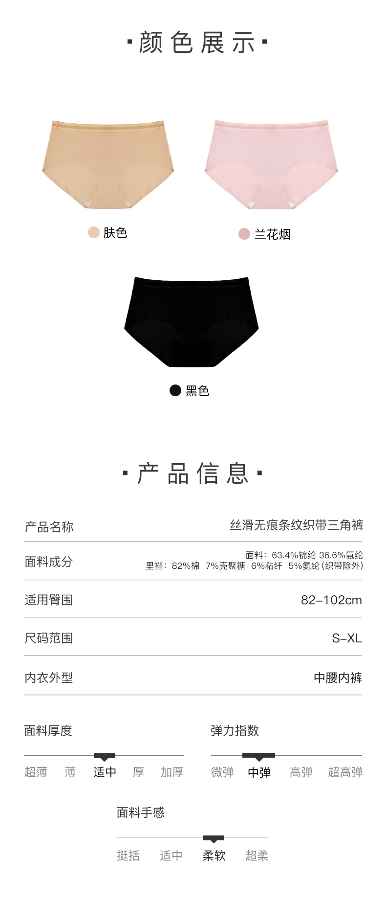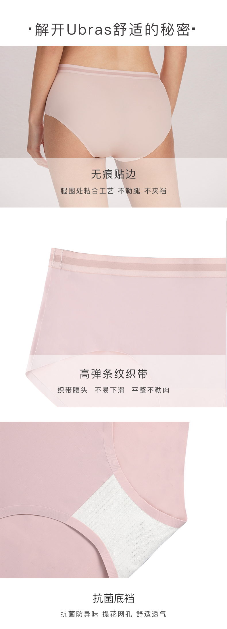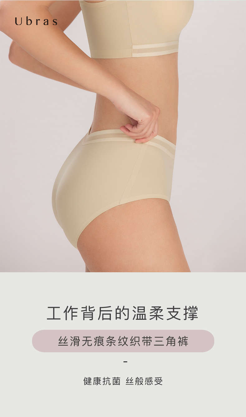 Ubras丝滑无痕条纹织带三角裤舒适透气抗菌透气内裤女