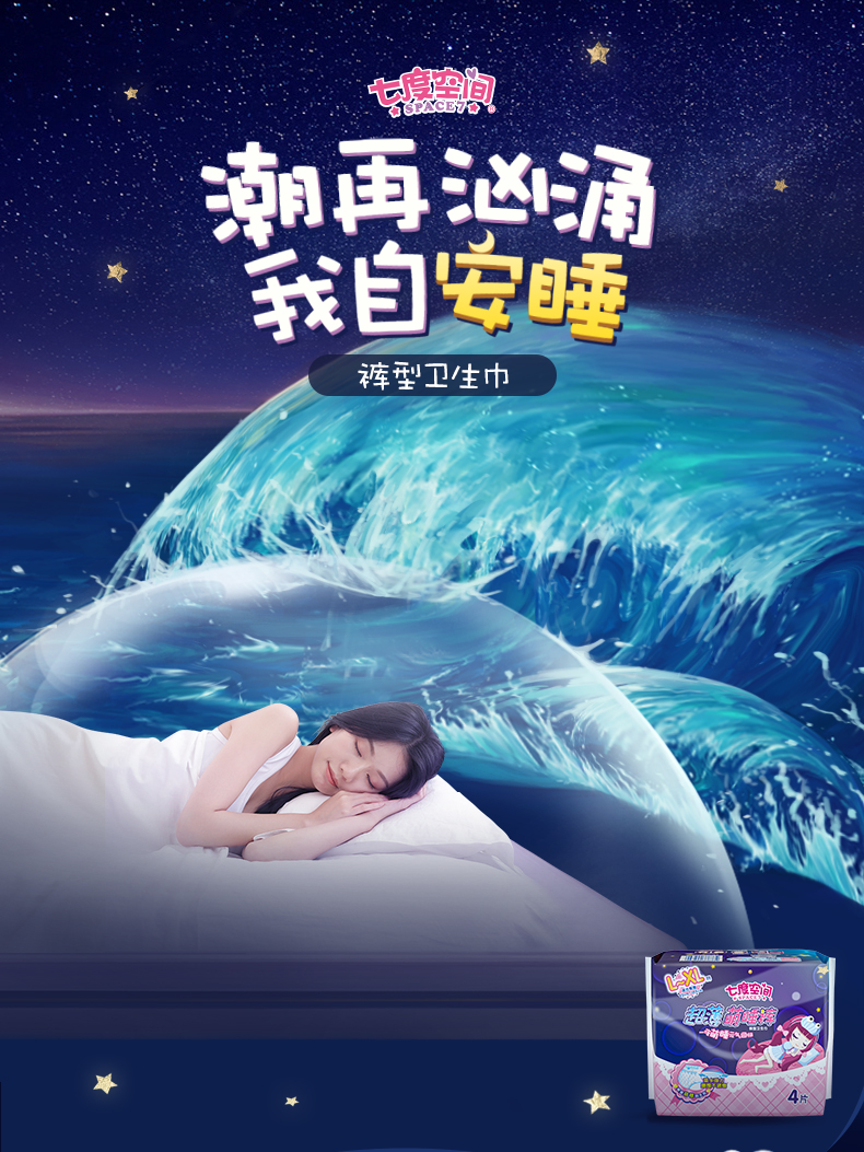 七度空间 (SPACE7)少女萌睡裤系列 萌睡安心裤 超薄超长夜用裤型卫生巾(L-XL码*4片)