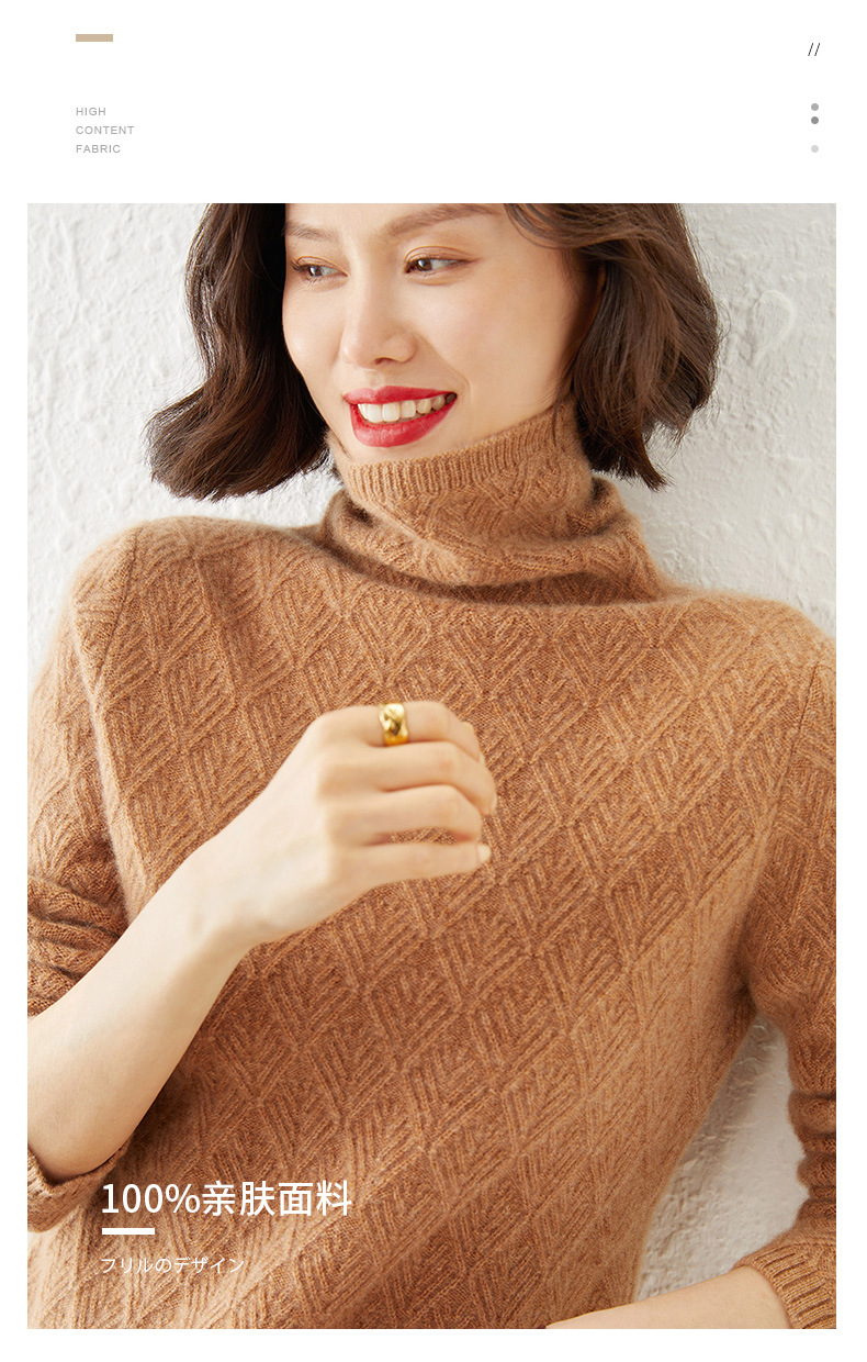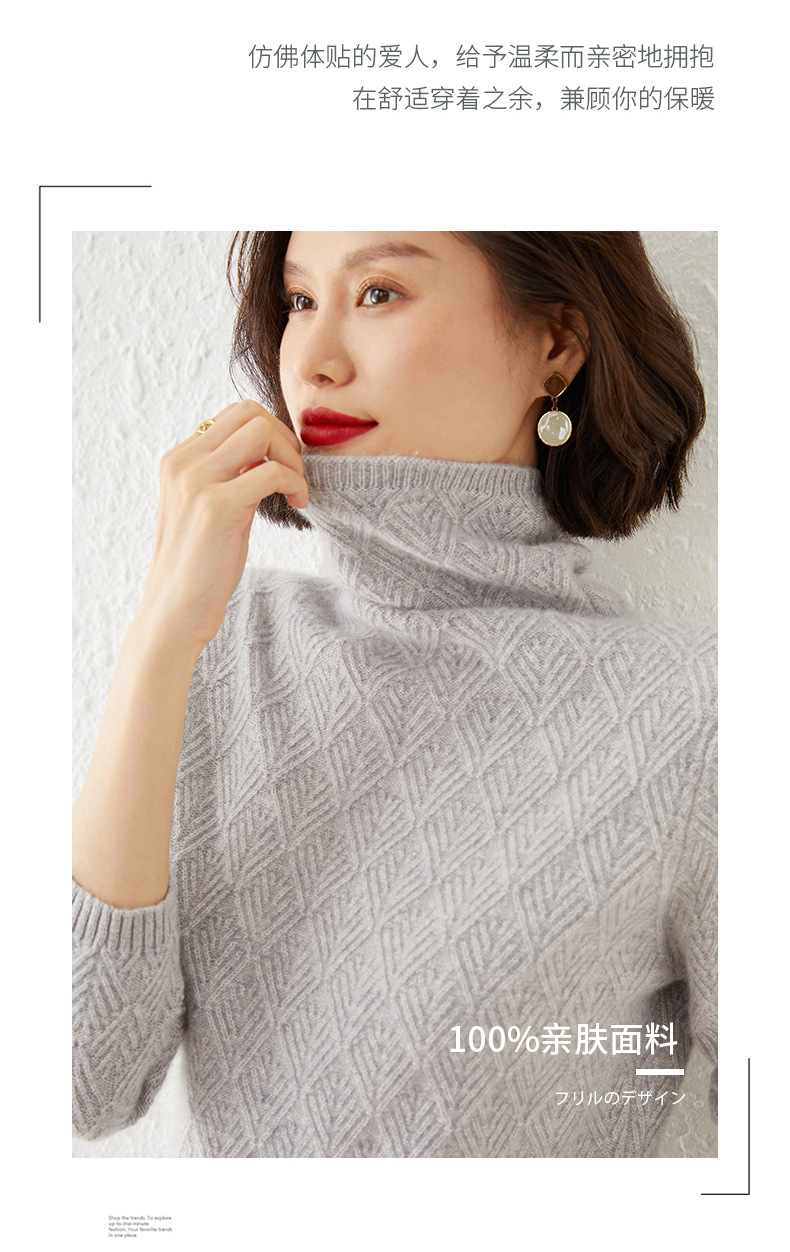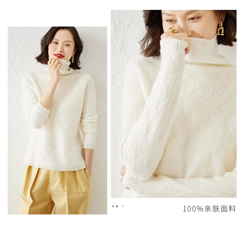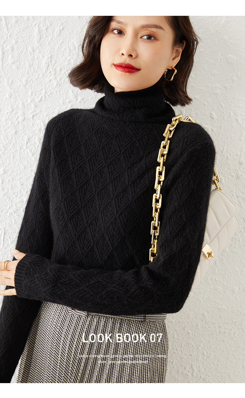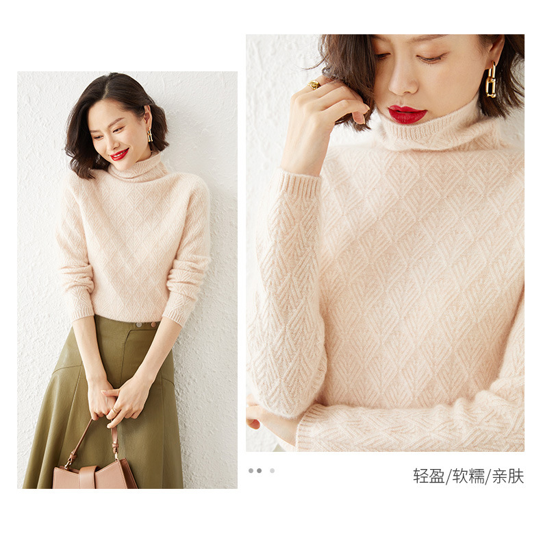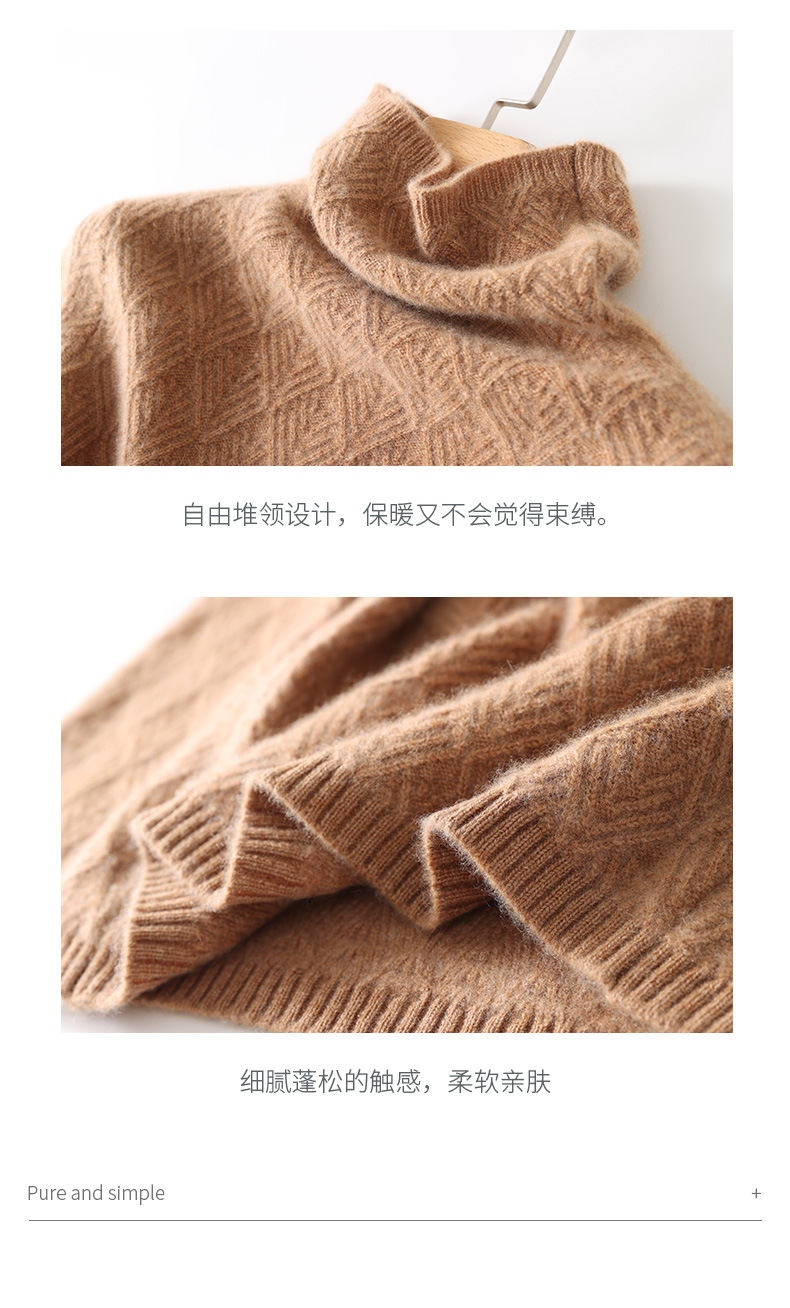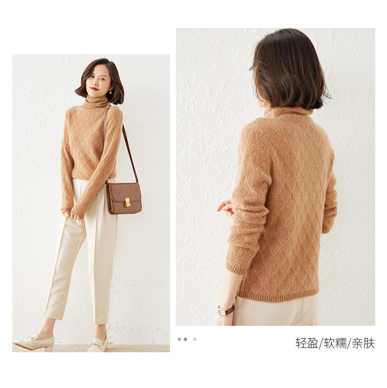 QHJY-JYDL2219秋冬新款欧美内搭修身羊毛针织衫女式阿兰花堆堆领打底衫毛衣