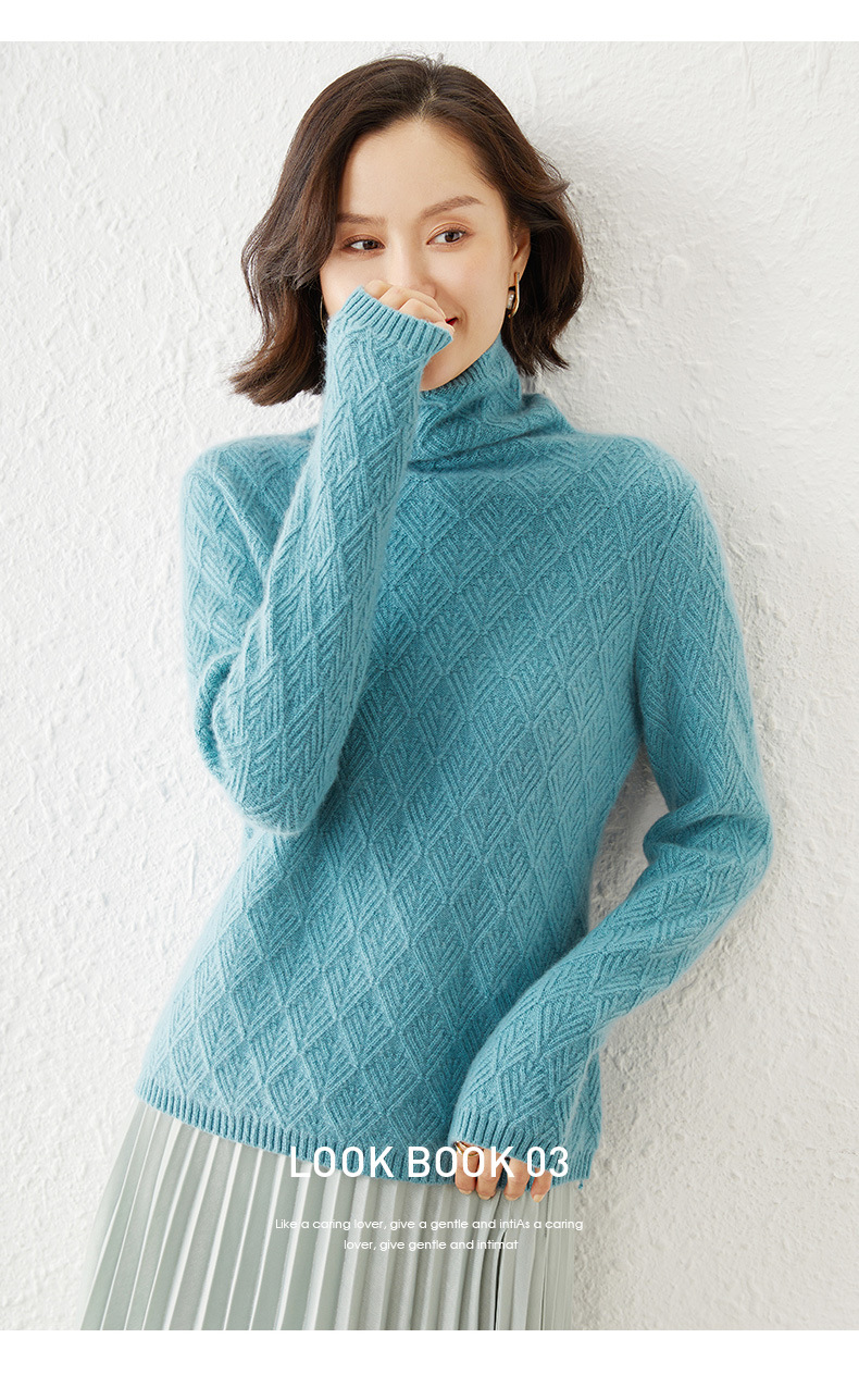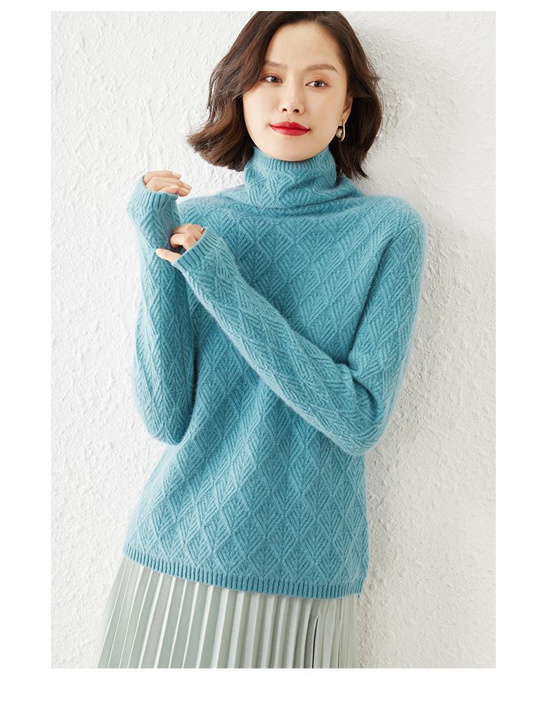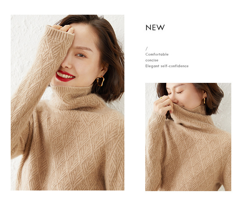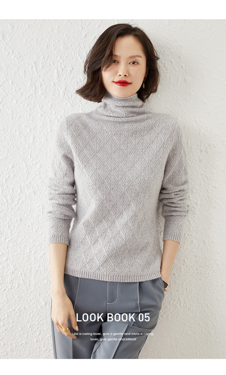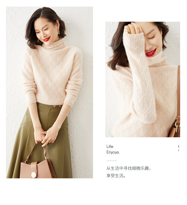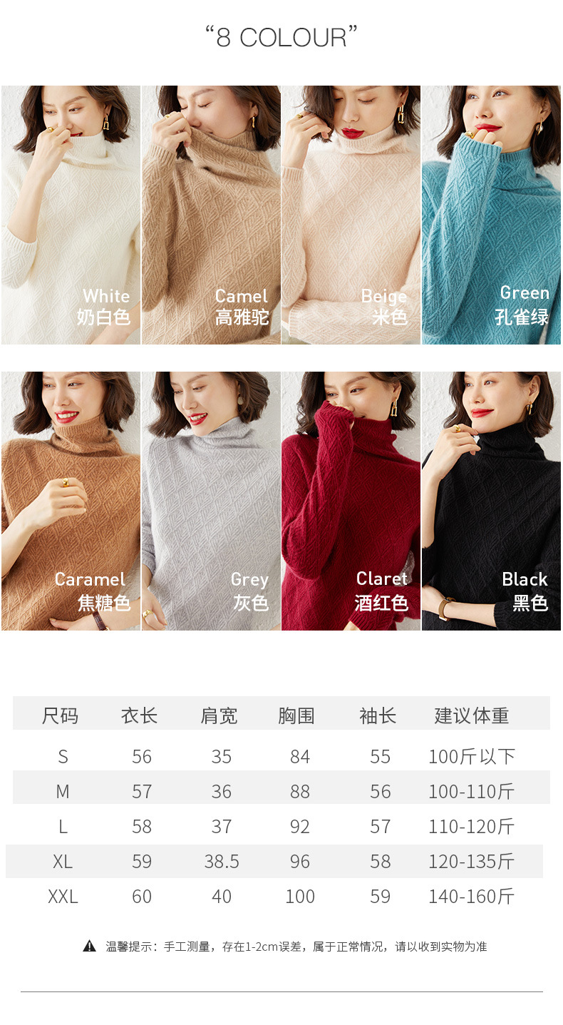 QHJY-JYDL2219秋冬新款欧美内搭修身羊毛针织衫女式阿兰花堆堆领打底衫毛衣