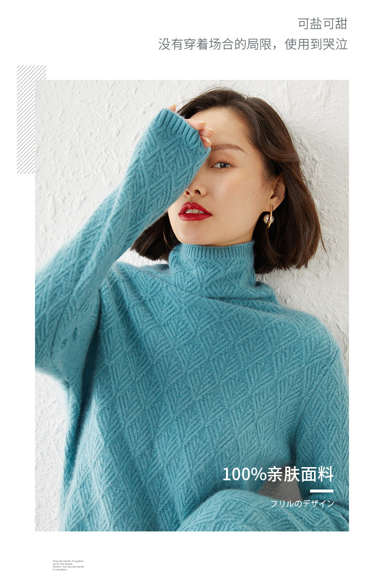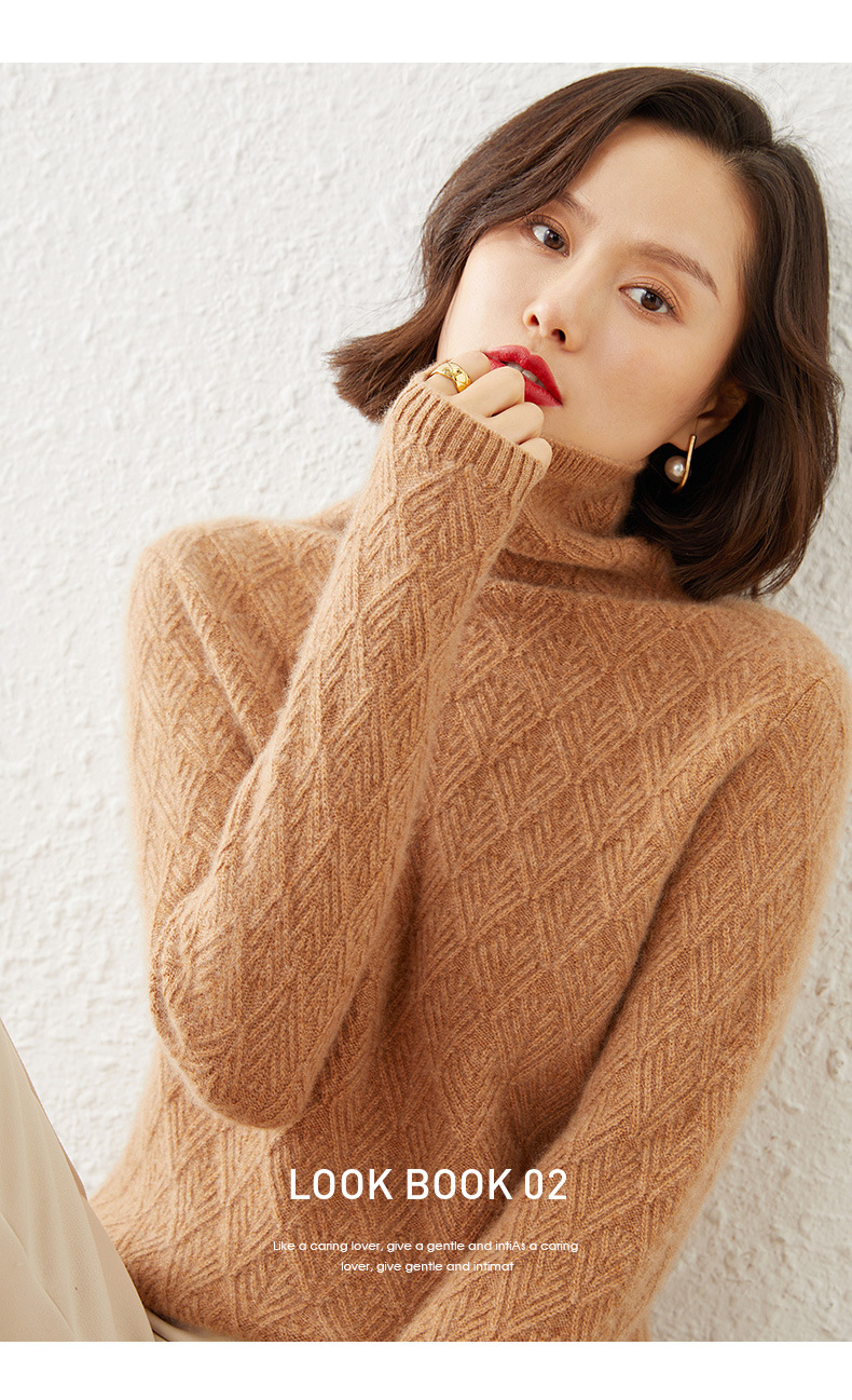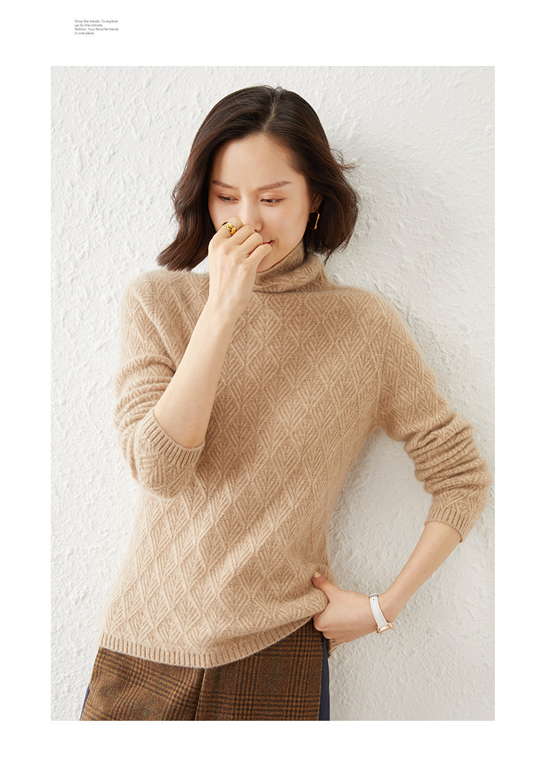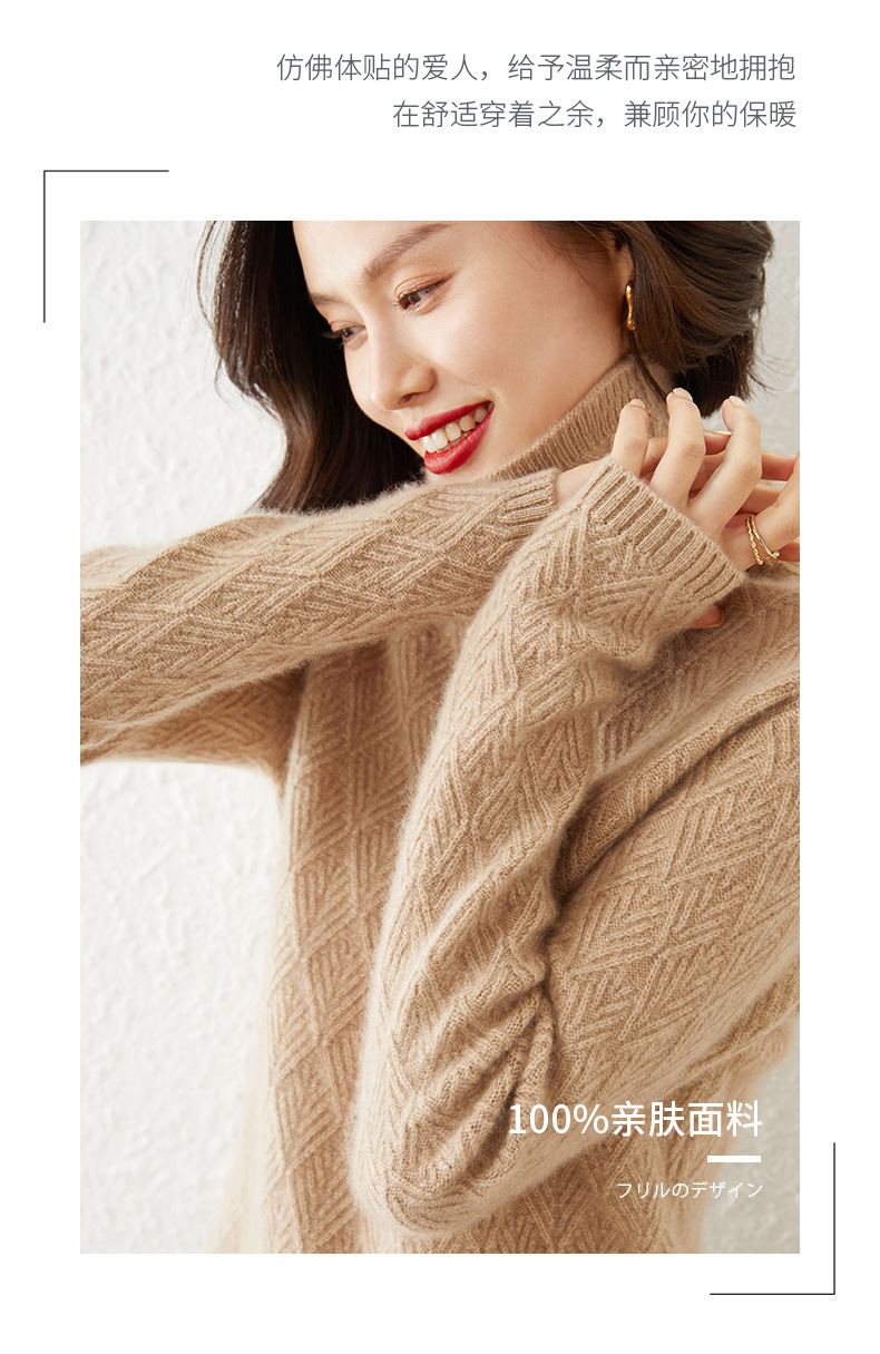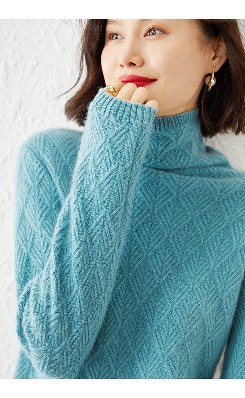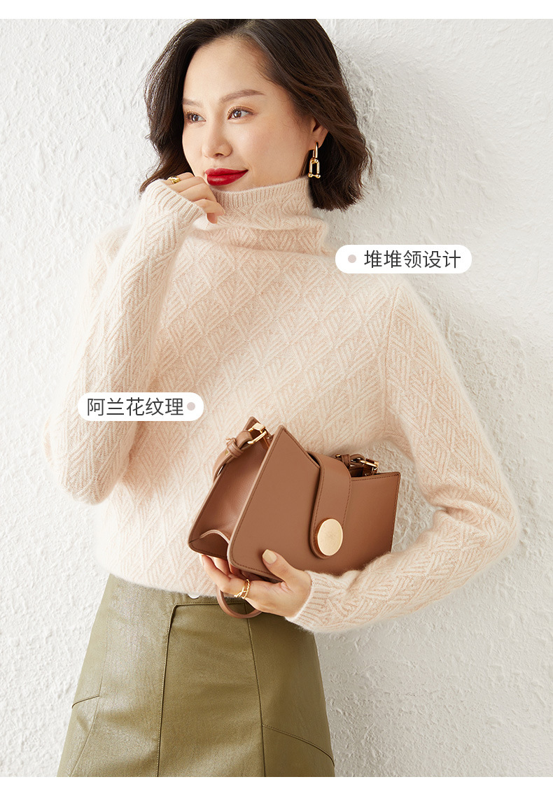 QHJY-JYDL2219秋冬新款欧美内搭修身羊毛针织衫女式阿兰花堆堆领打底衫毛衣