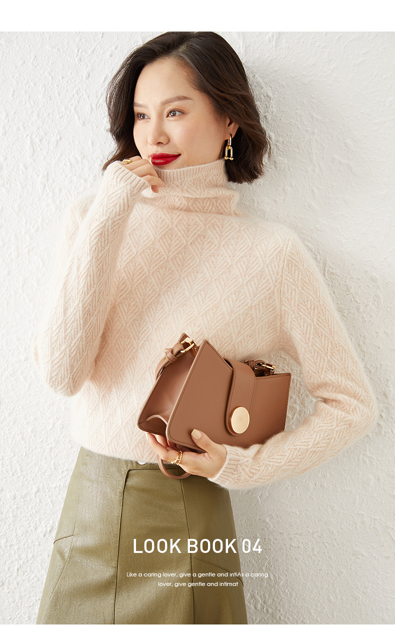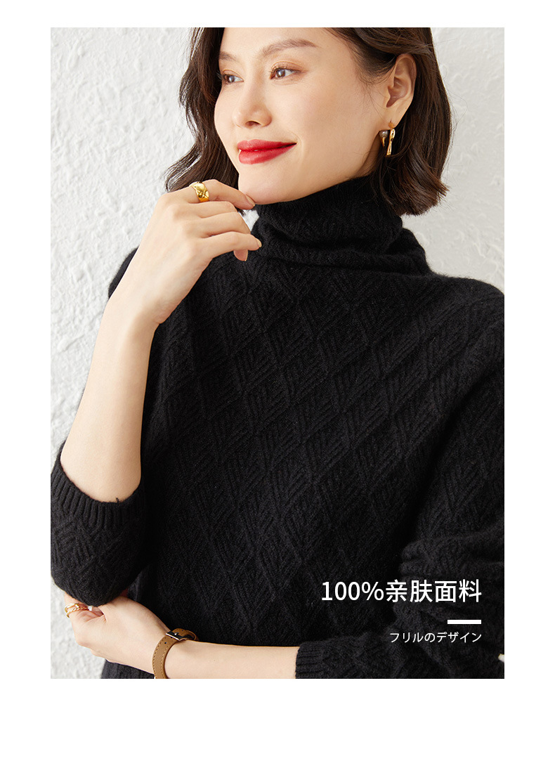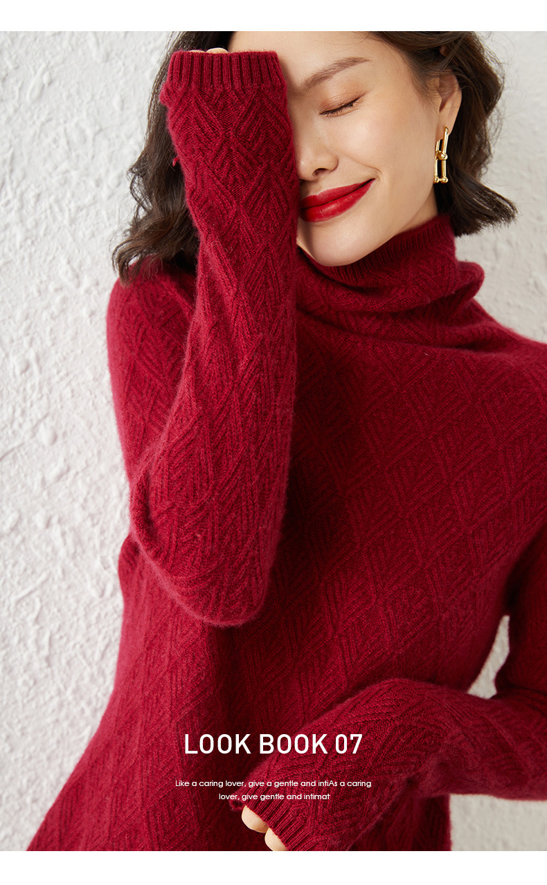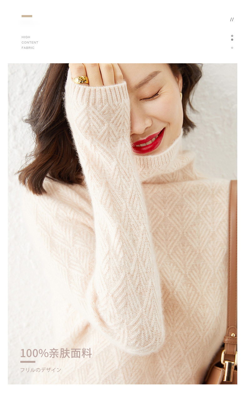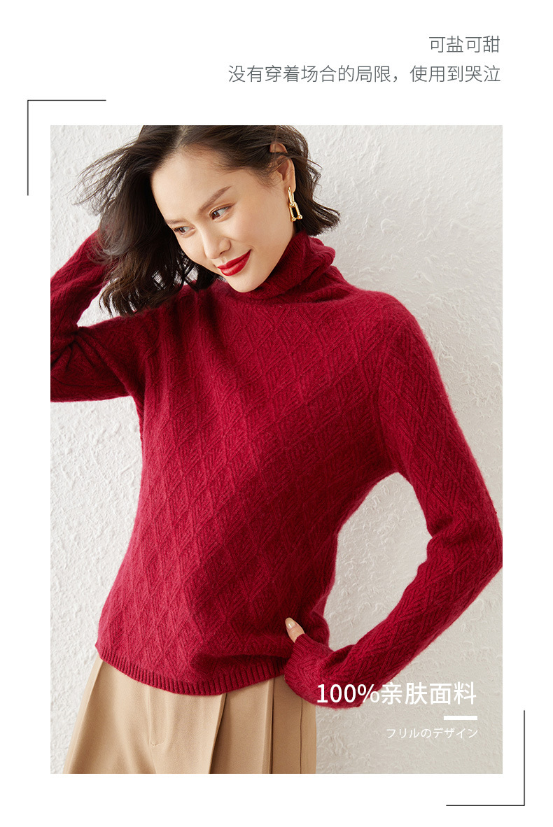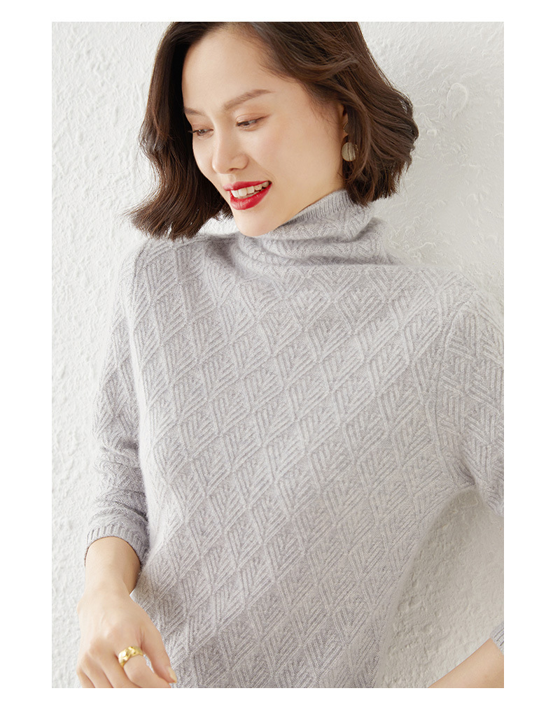QHJY-JYDL2219秋冬新款欧美内搭修身羊毛针织衫女式阿兰花堆堆领打底衫毛衣