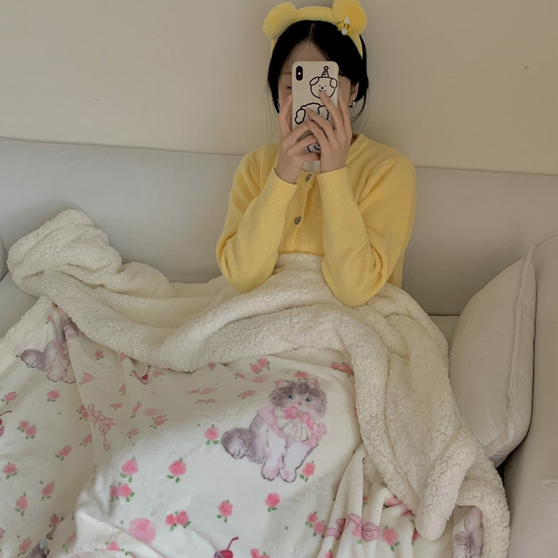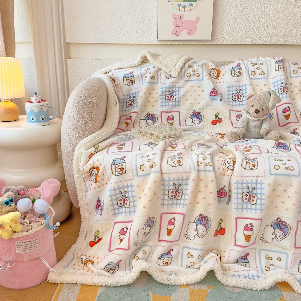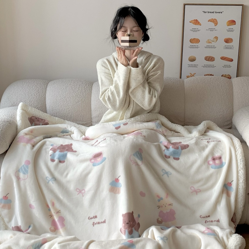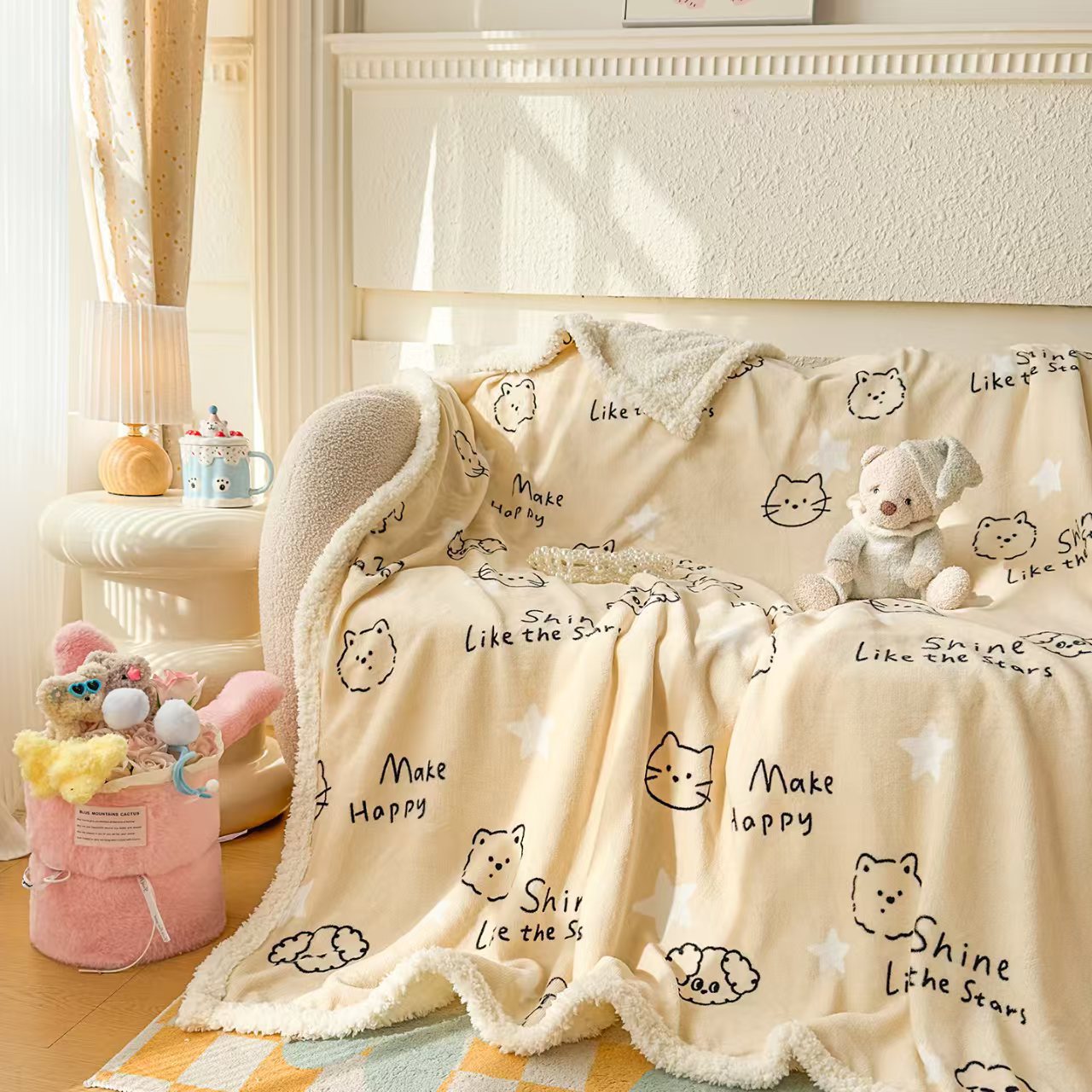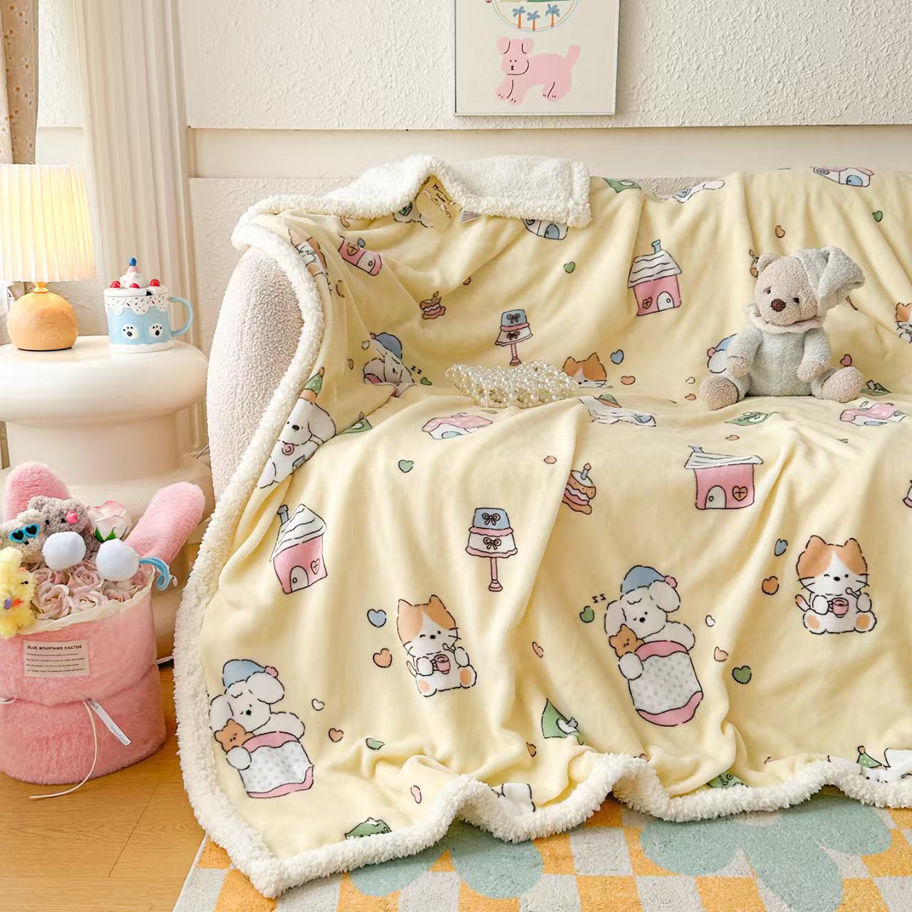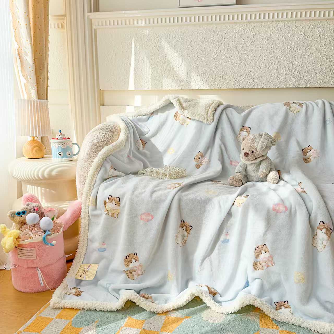 【毛茸茸立体质感❗️可爱萌趣造型】加厚羊羔绒毛毯办公室午睡冬季披肩毯子珊瑚绒空调沙发盖毯幼儿园。jb