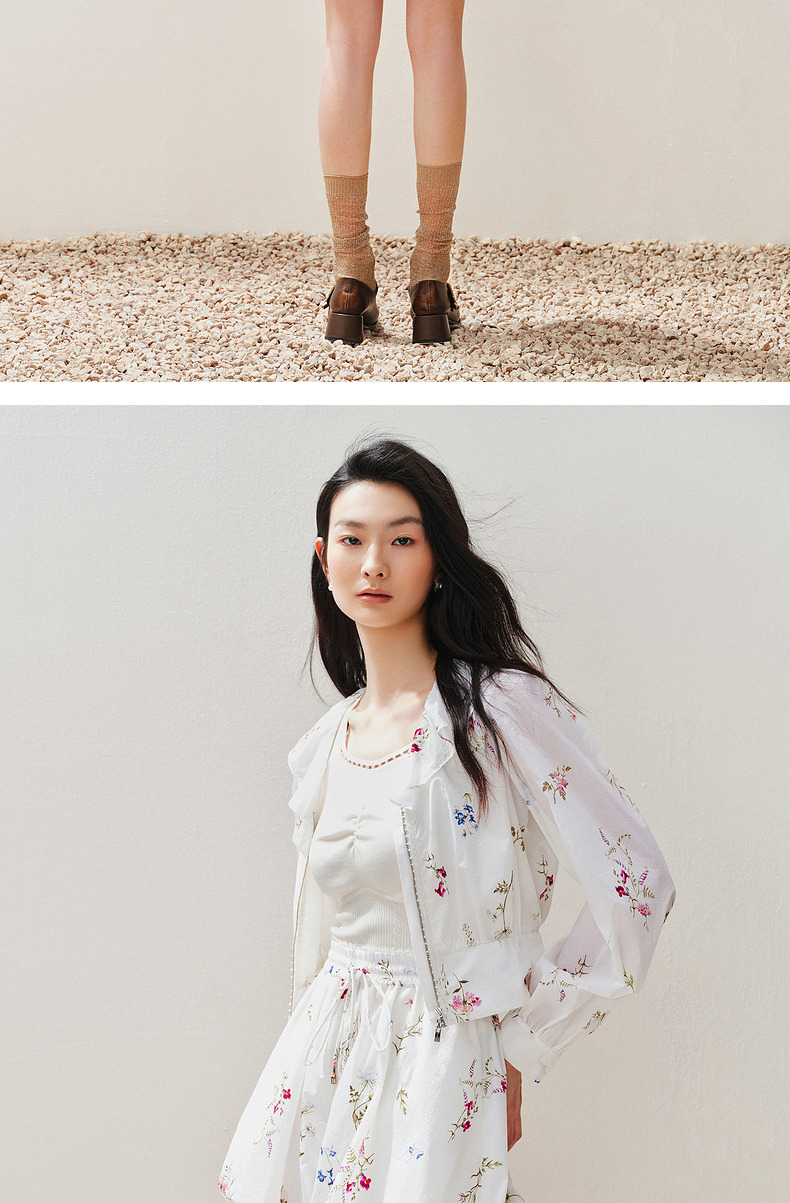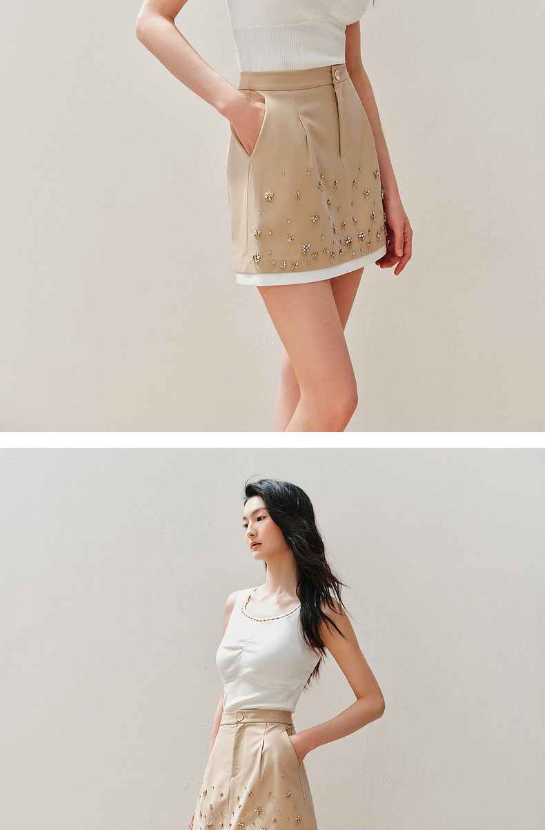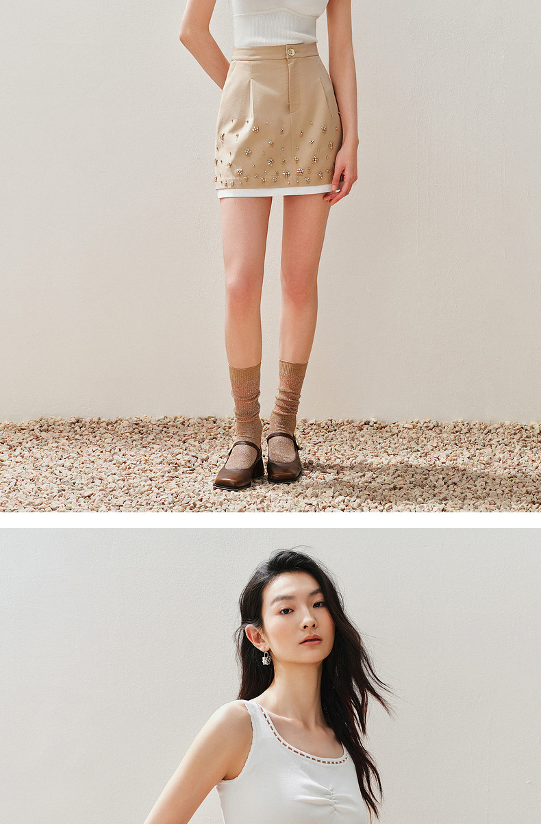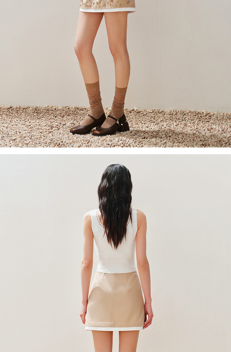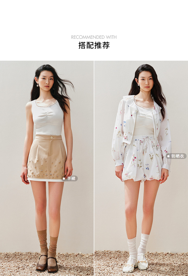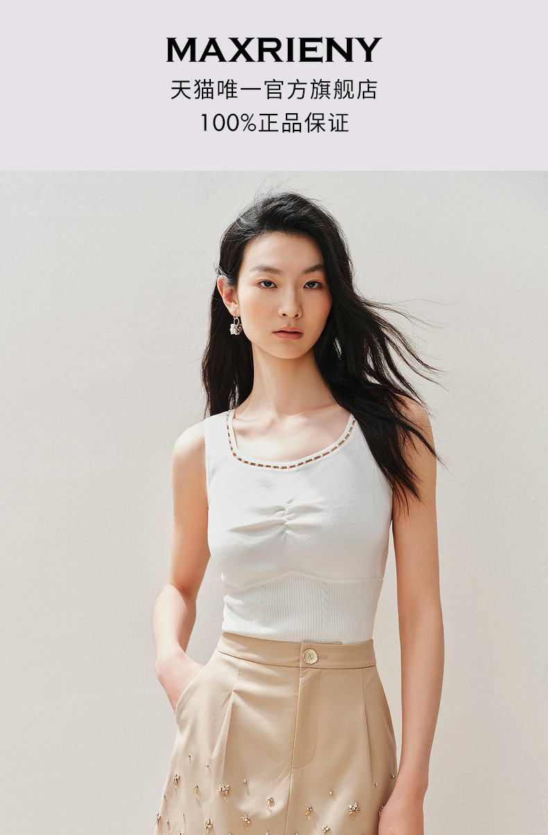 【浪漫花园-商场同款】MAXRIENY针织抽褶珍珠边复古毛衫背心上衣(货号:MC85SW300)