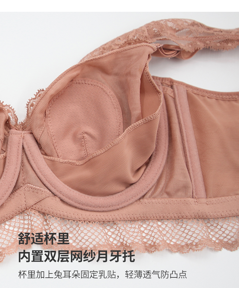 贝佳人新软钢圈上托聚拢内衣小胸显大侧收副乳文胸蕾丝半包内衣BW91811