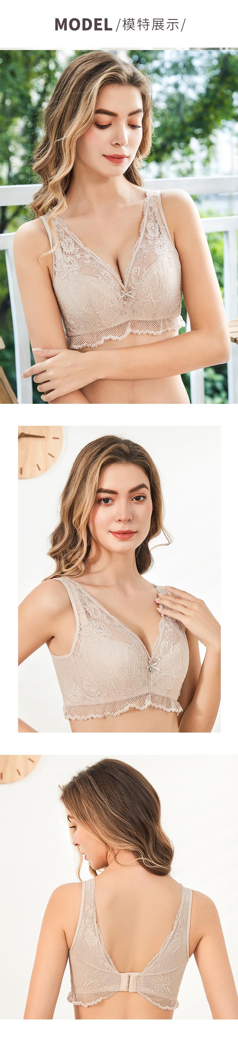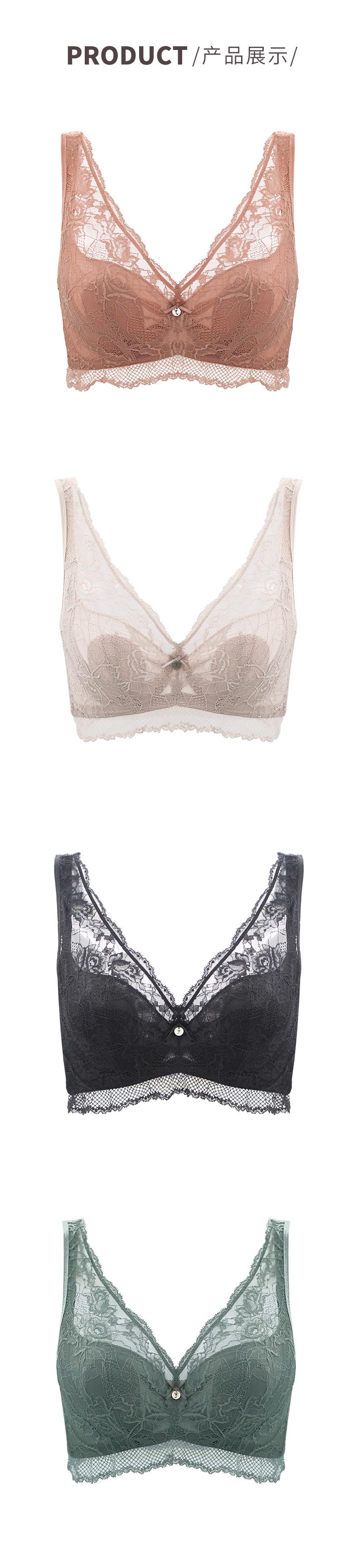 贝佳人新品花纹蕾丝调整型文胸无钢圈零束缚美背内衣透气聚拢BW952022