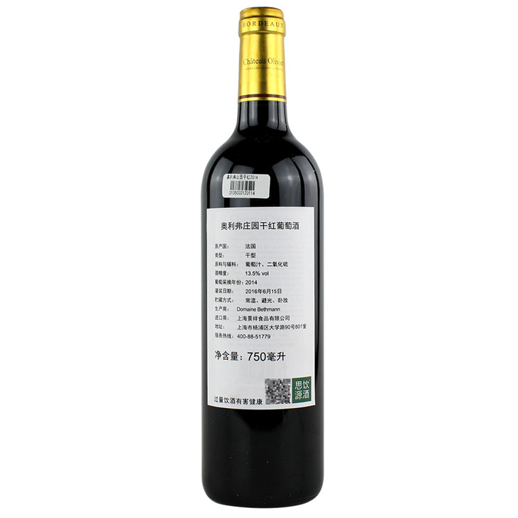 奥利弗庄园干红葡萄酒 2014 Chateau Olivier, Pessac-Leognan, France