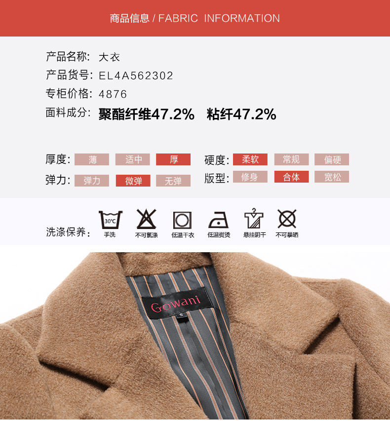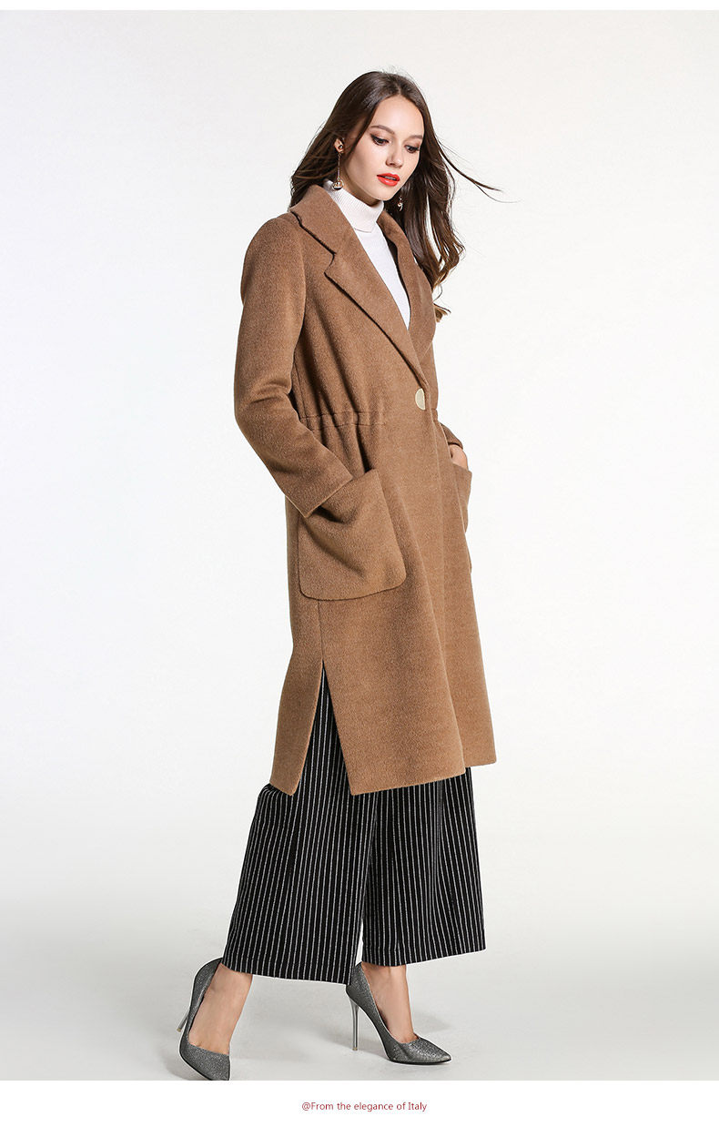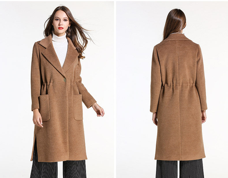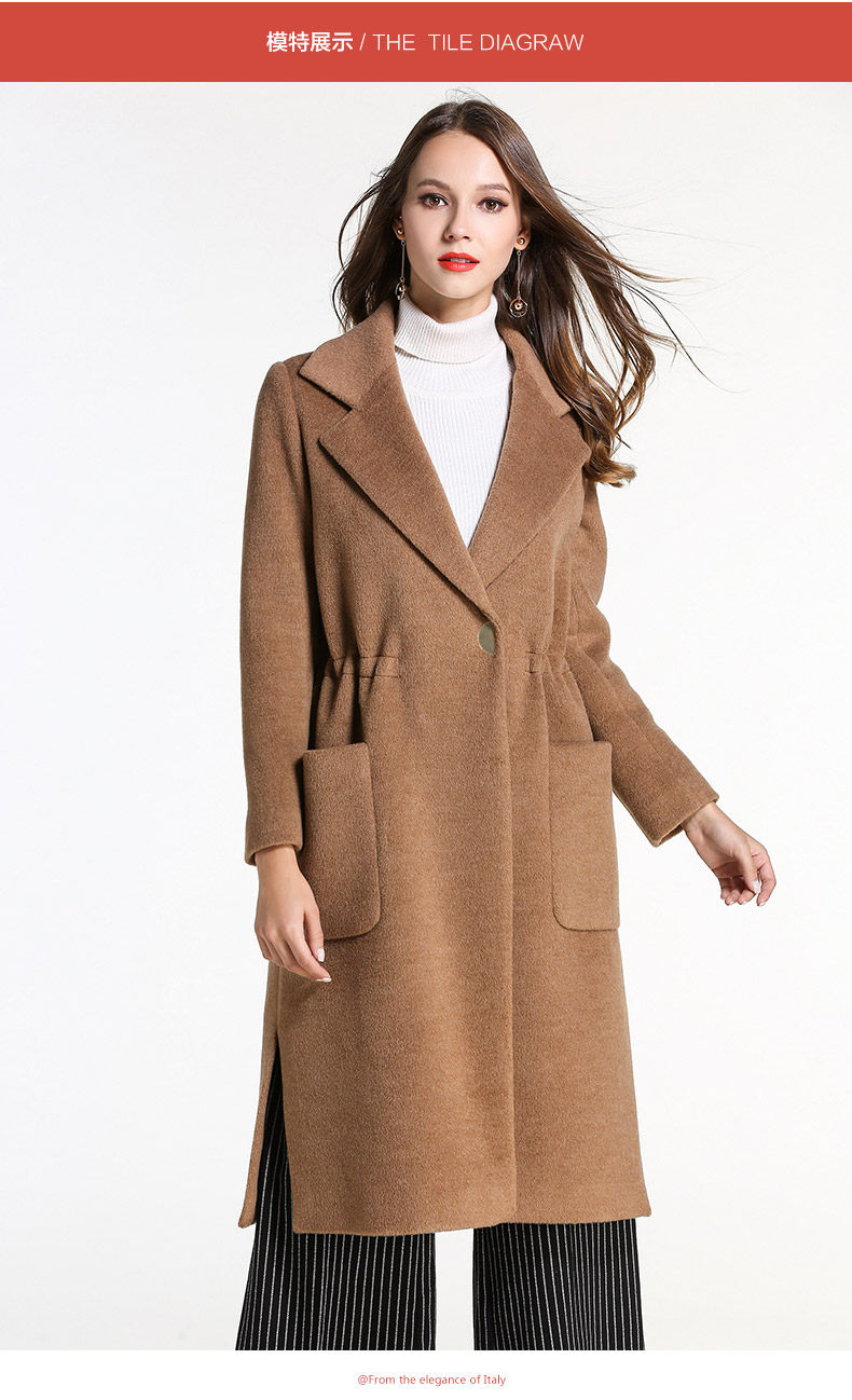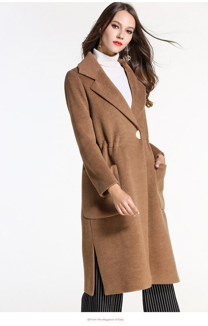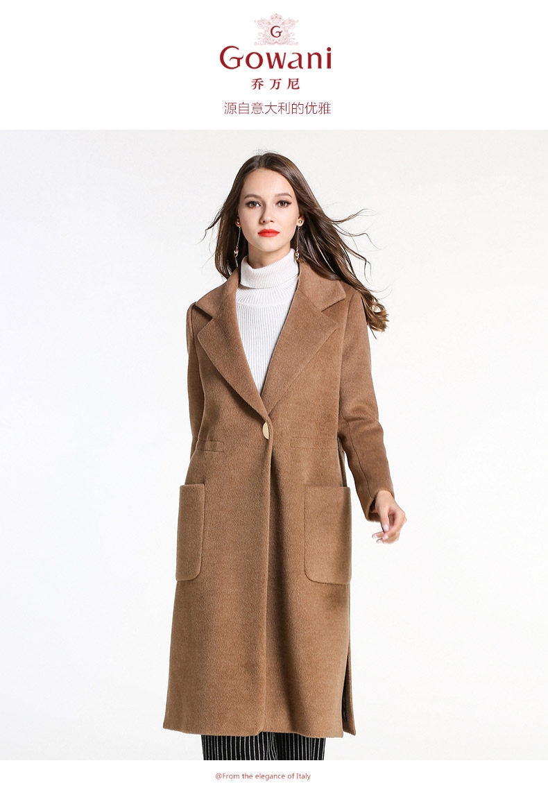乔万尼商场冬季新款呢子大衣翻领宽松大码羊毛呢外套女长款过膝厚EB4A125