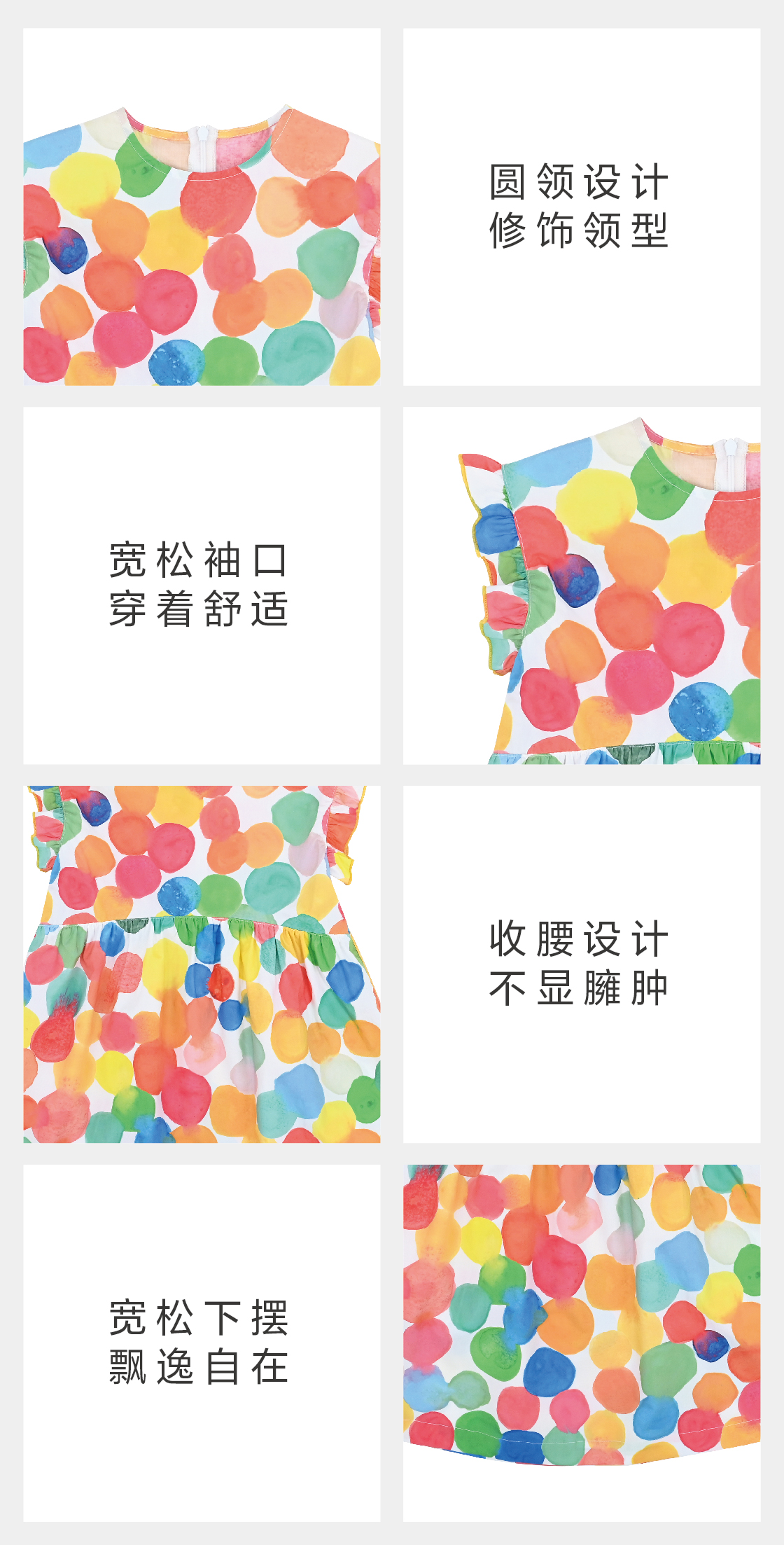 rainbowxoxo 彩色波波印花A字型连衣裙【该商品不支持用券】