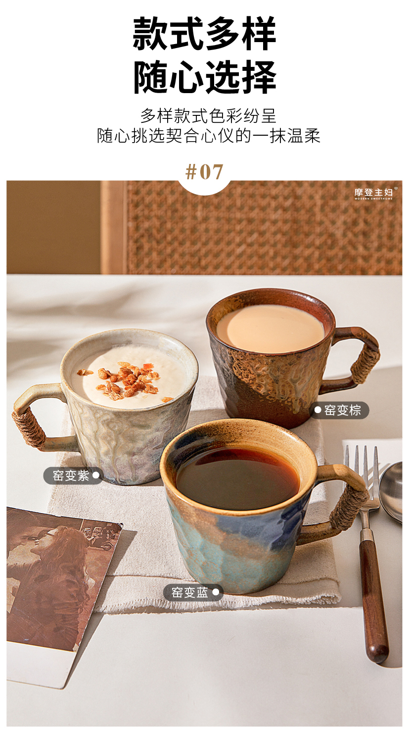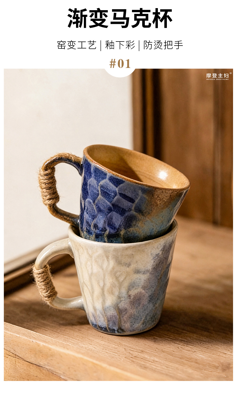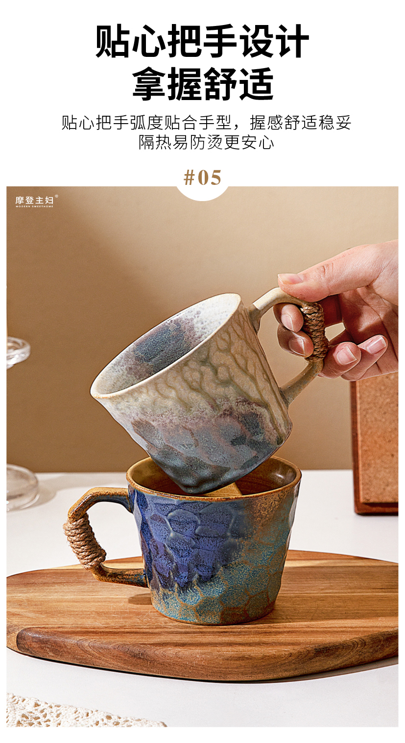 摩登主妇中古窑变马克杯陶瓷杯办公室家用喝水杯轻奢高级咖啡杯子