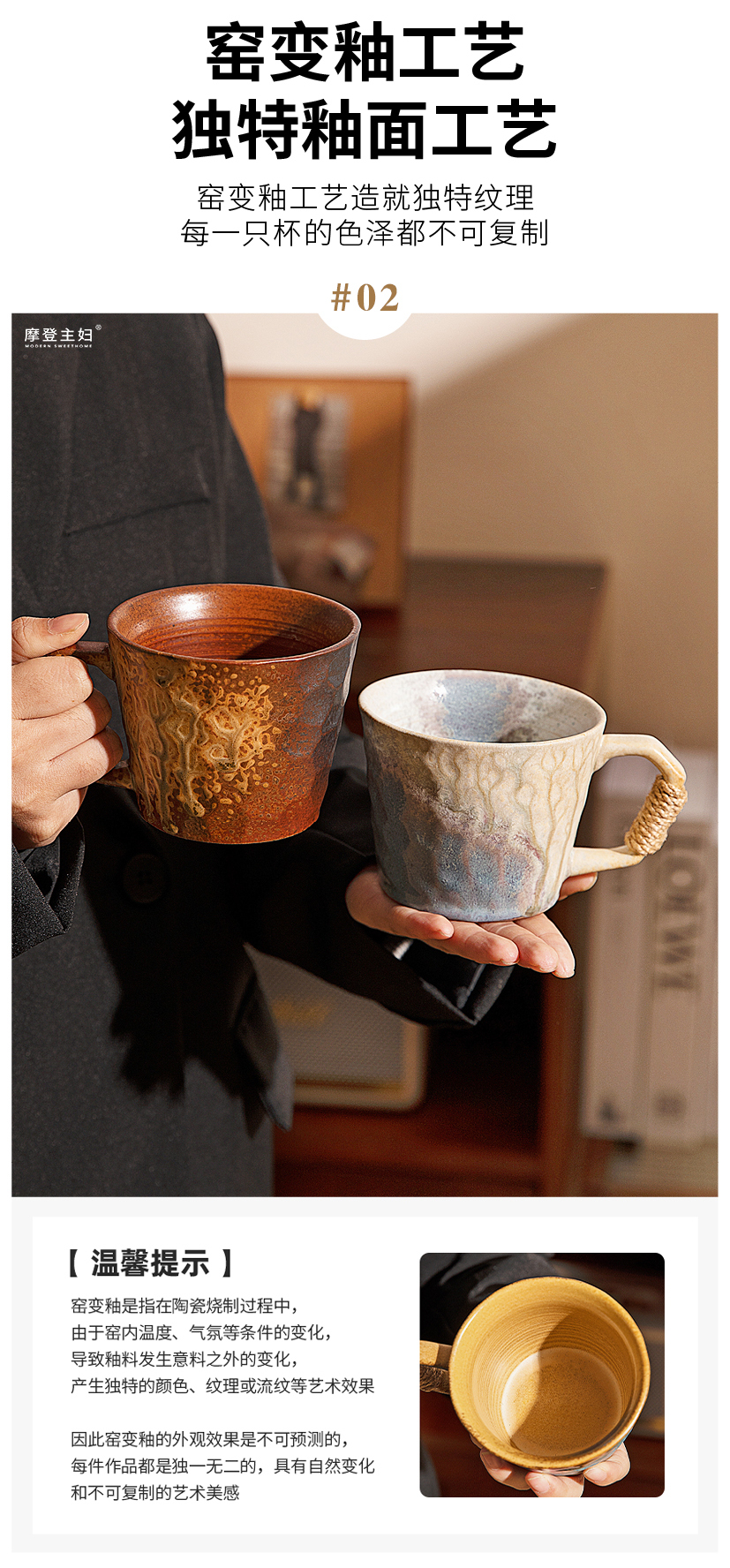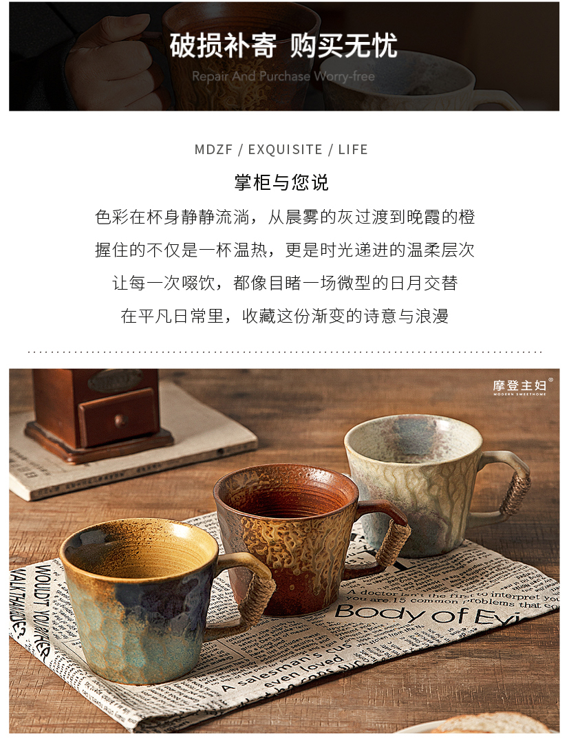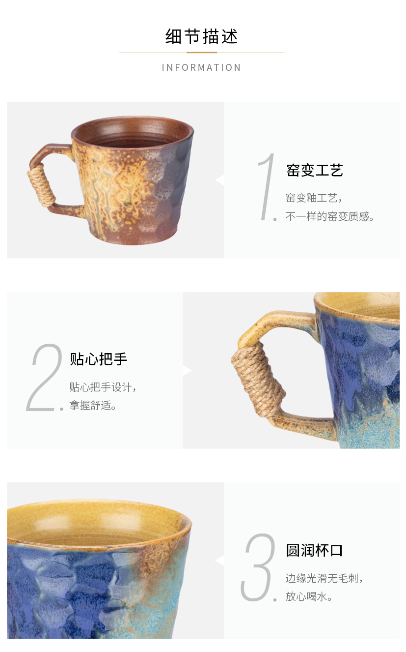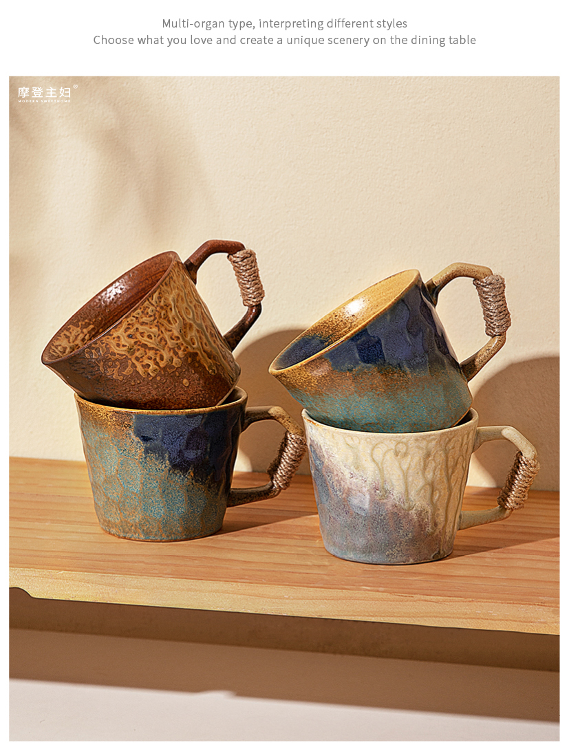 摩登主妇中古窑变马克杯陶瓷杯办公室家用喝水杯轻奢高级咖啡杯子