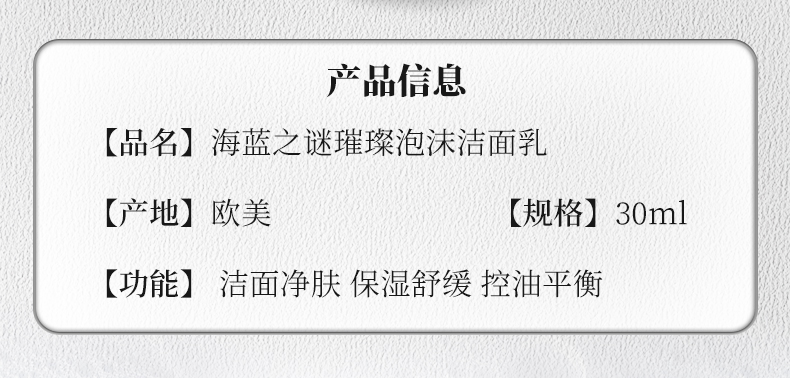 La Mer海蓝之谜璀璨净澈泡沫洁面乳 中样30ml/支