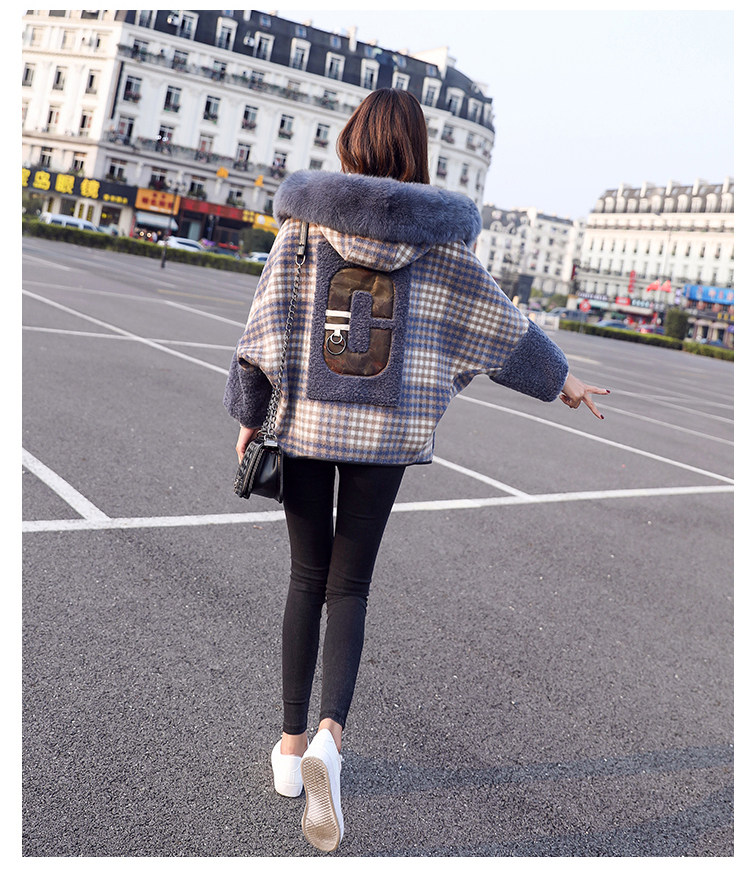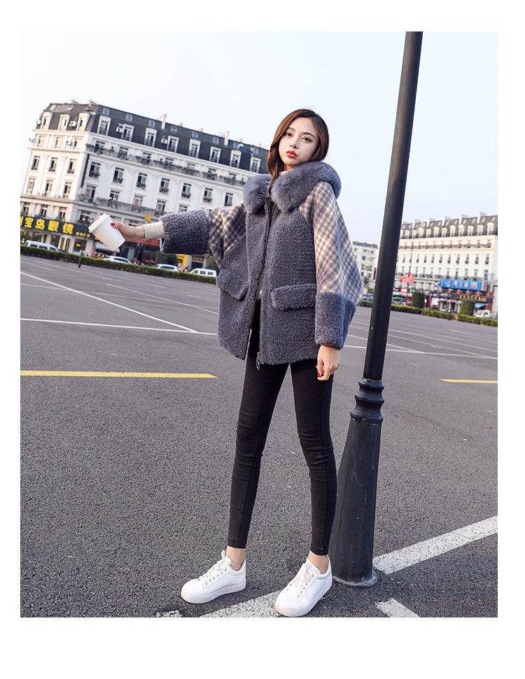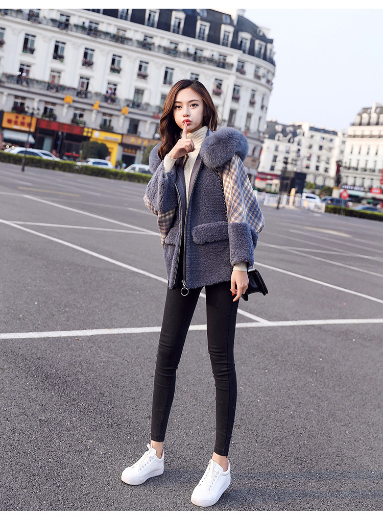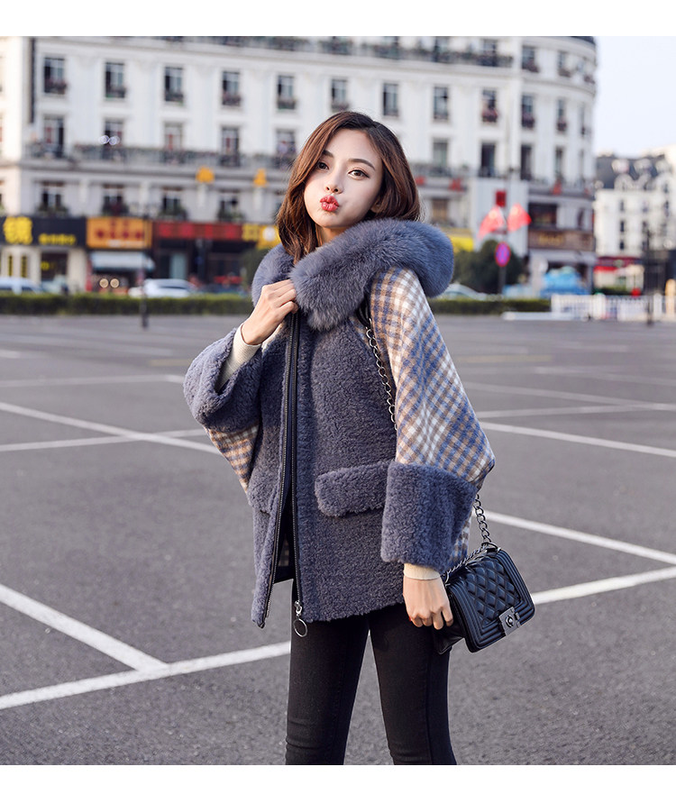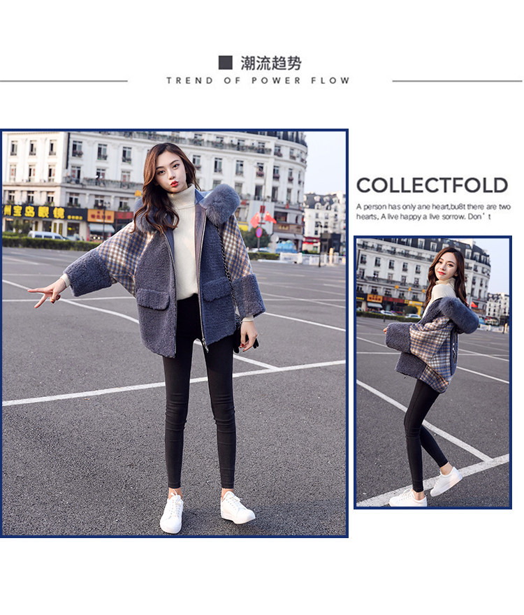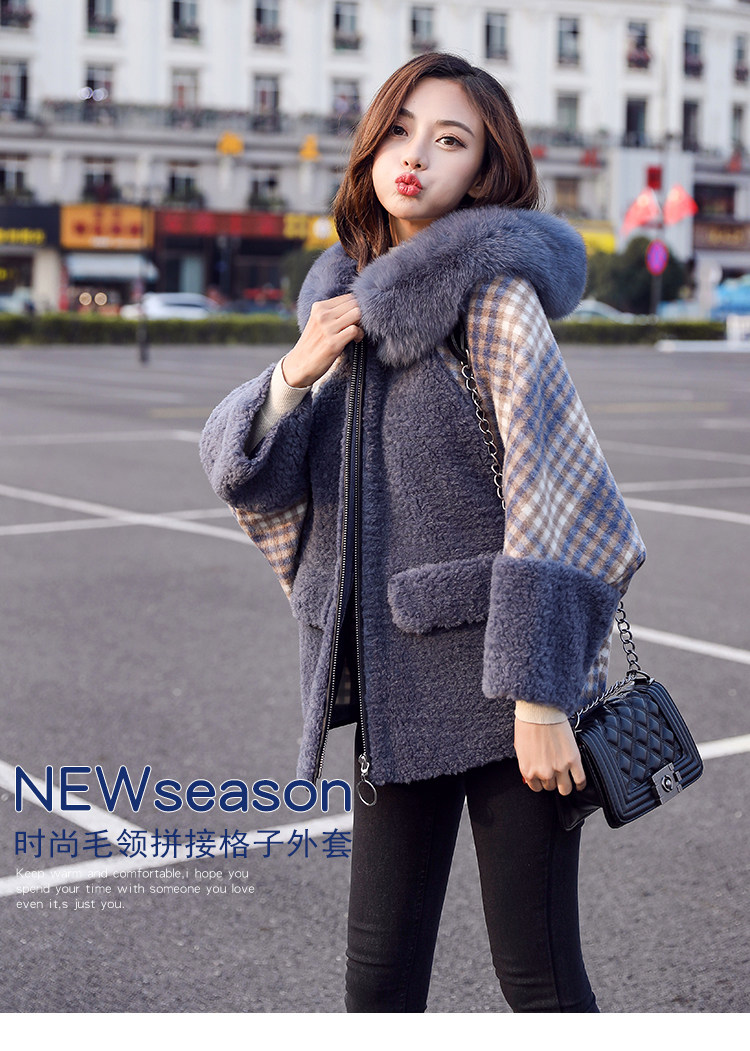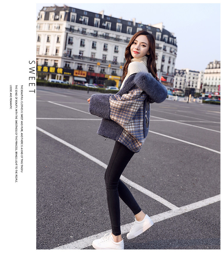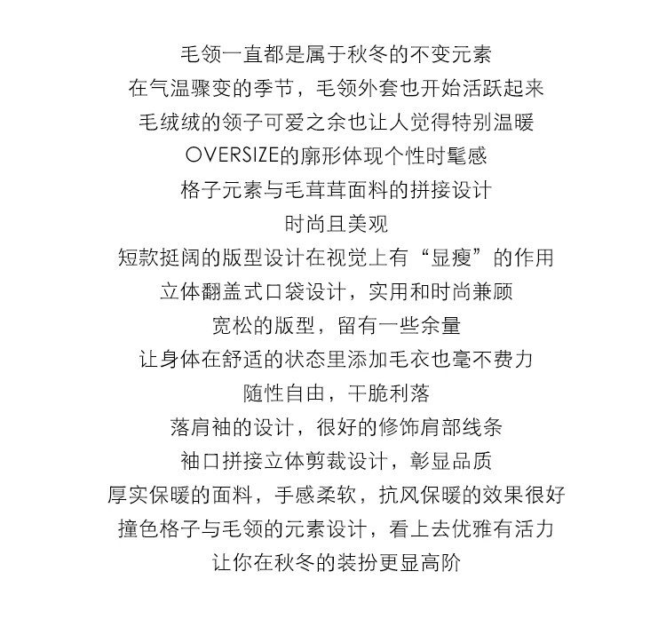 SS-7895秋冬新款时尚加厚毛领小个子宽松格子短外套