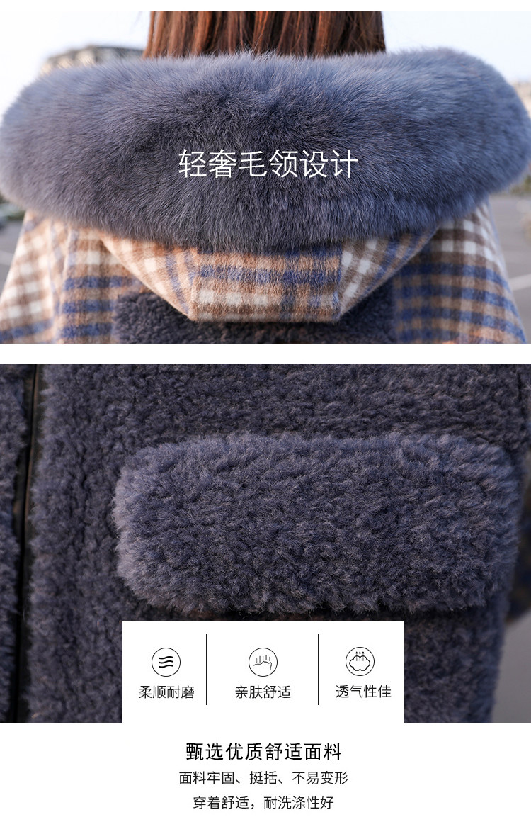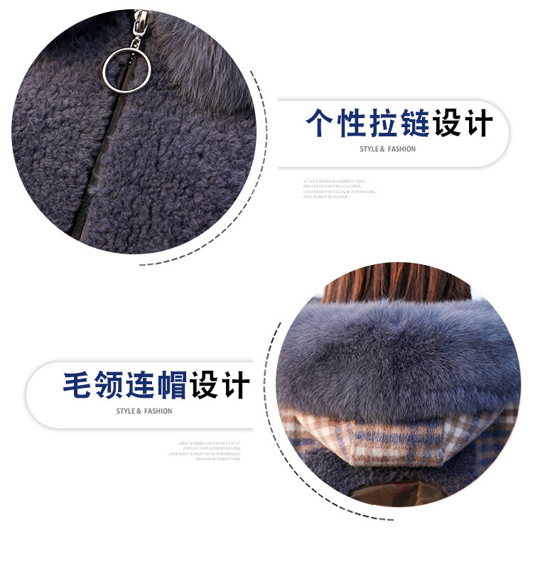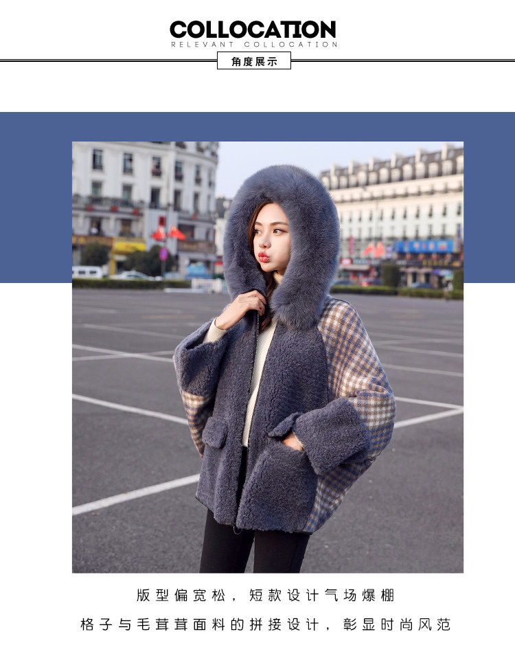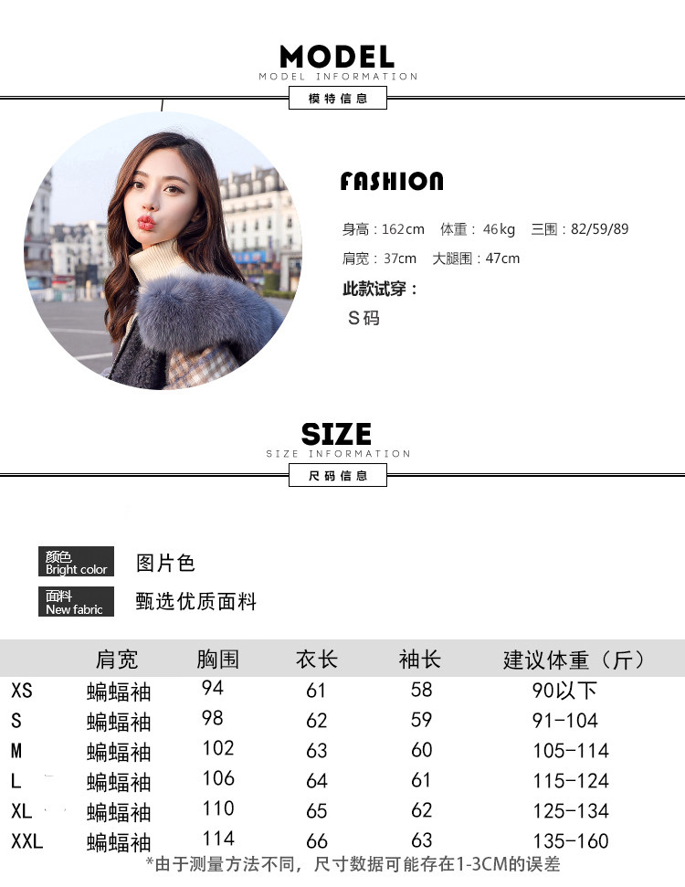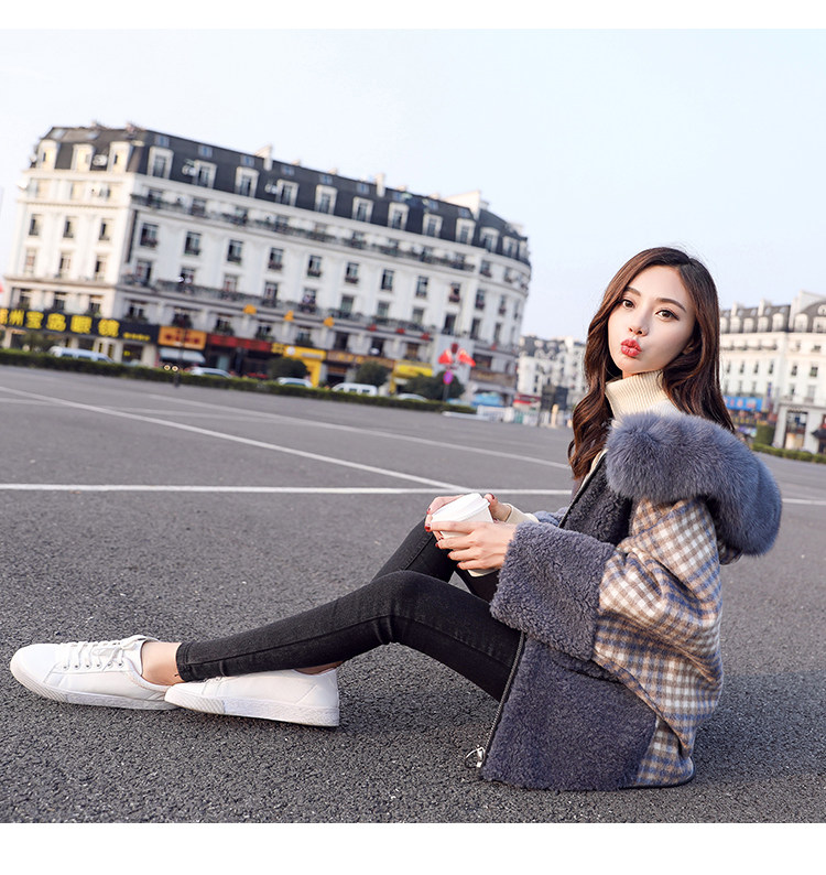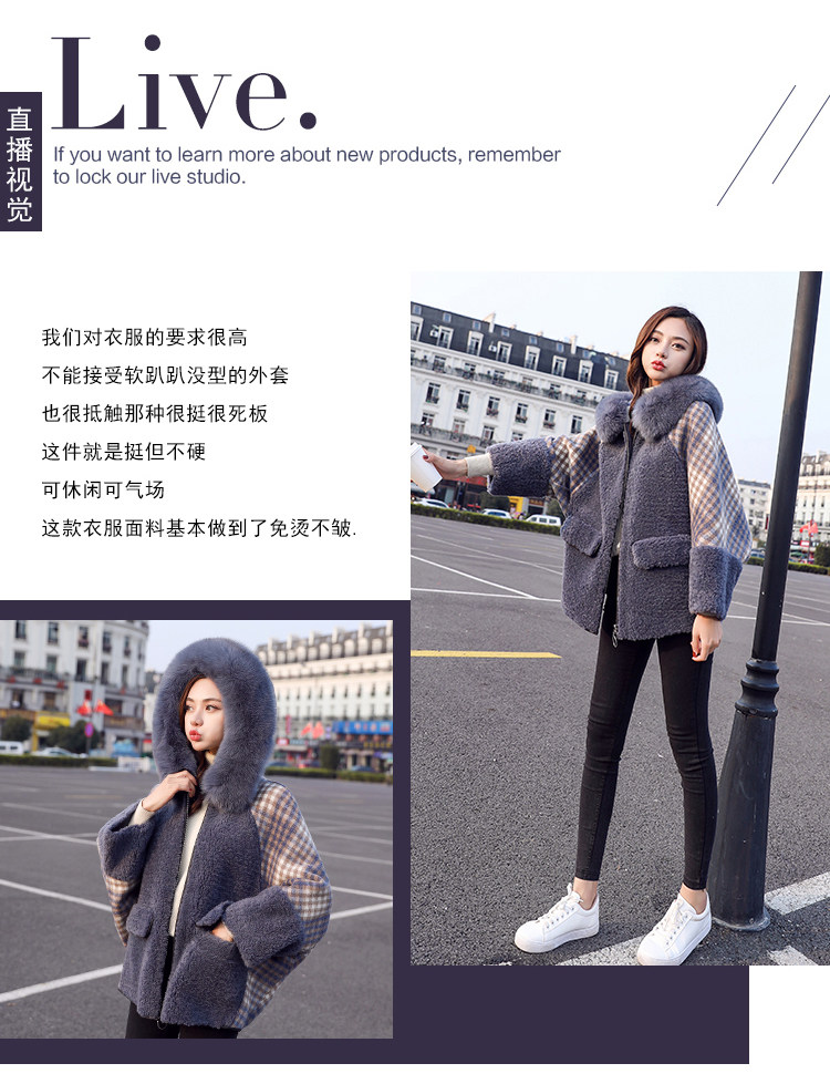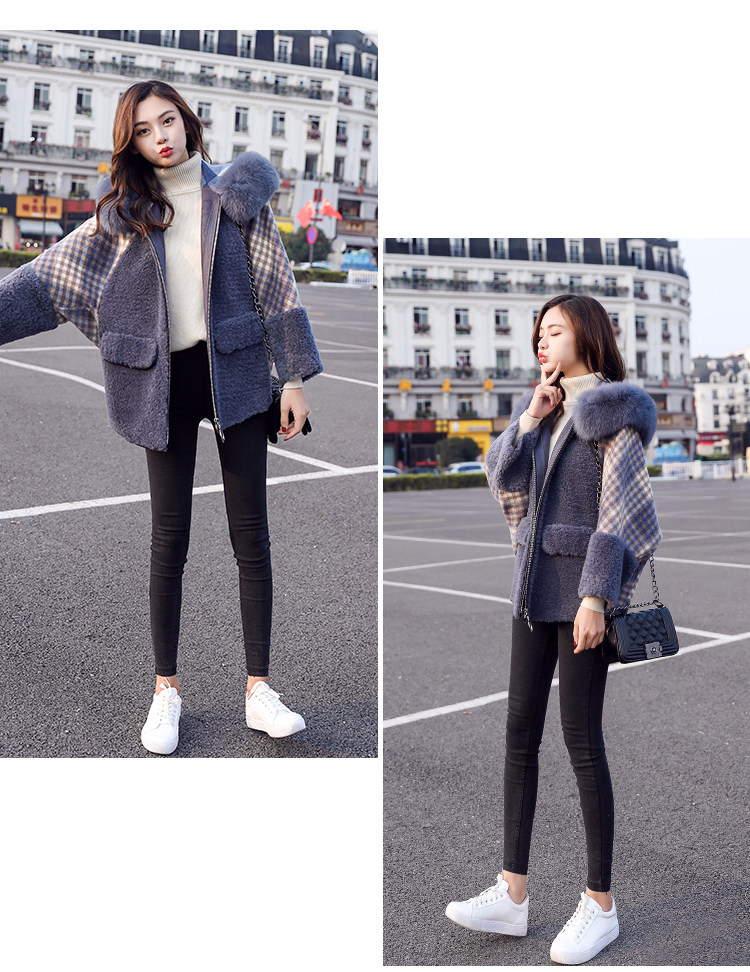 SS-7895秋冬新款时尚加厚毛领小个子宽松格子短外套