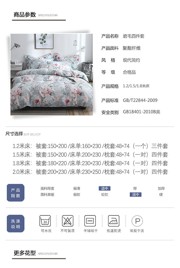 LH-新款全棉磨毛斜纹简约系田园小碎花系列四件套TZW