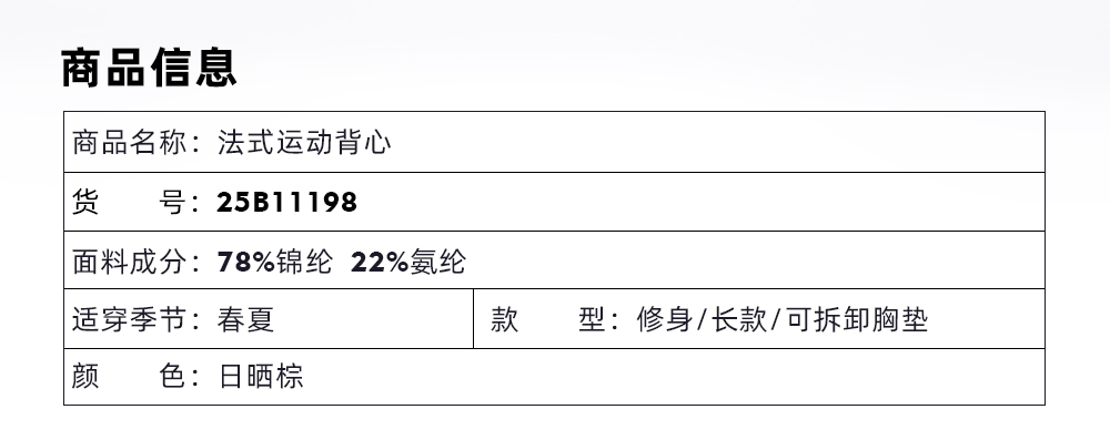 TITIKA ACTIVE法式运动背心罗纹吊带瑜伽背心健身衣(带胸垫)可外穿 25B11198