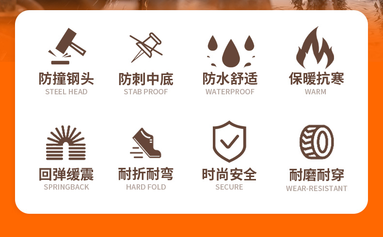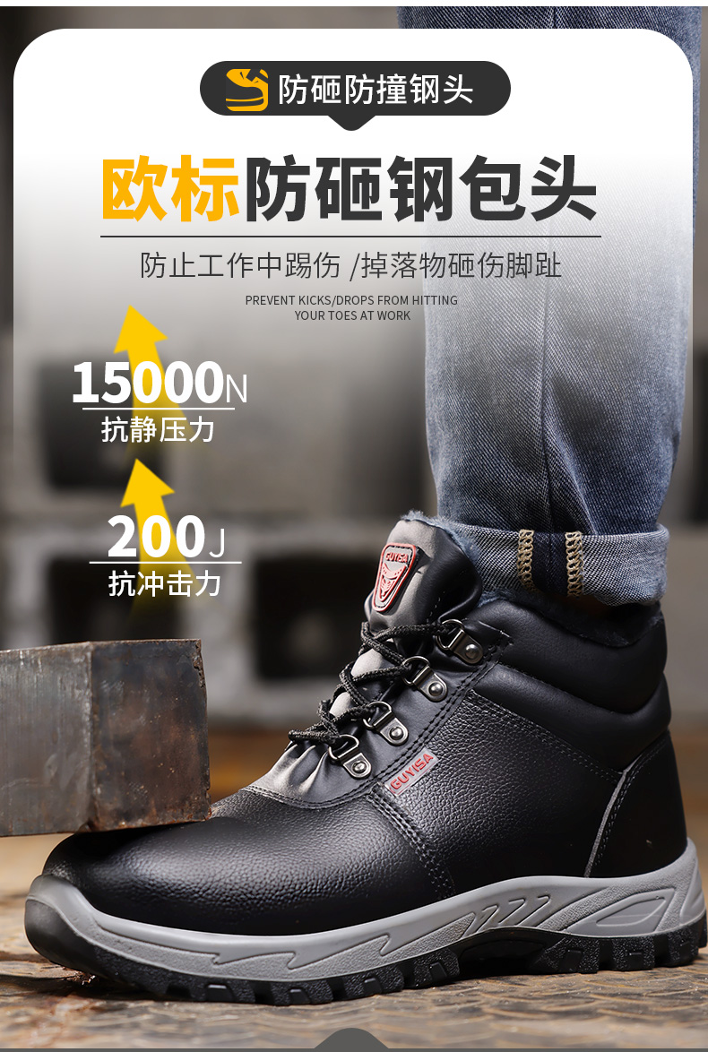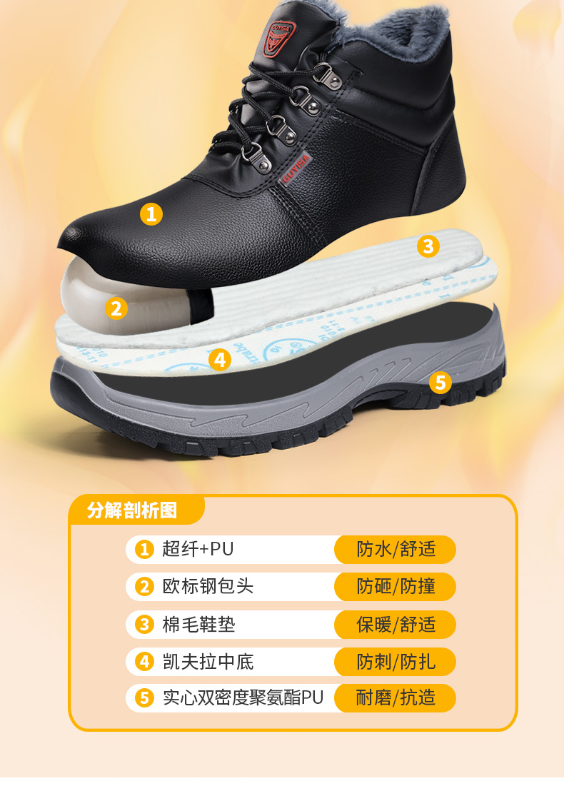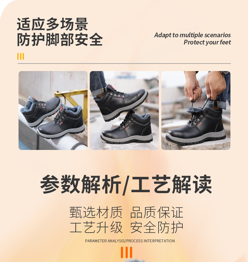 冬季加绒新品防水劳保鞋男安全工作鞋防砸钢包头防刺穿耐磨防护功能鞋