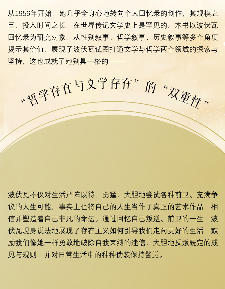 本书从文学与美学的双重视角入手,展现了波伏瓦试图打通文学与哲学两个领域的探索与坚持,这也成就了她别具一格的“哲学存在与文学存在”的“双重性”。