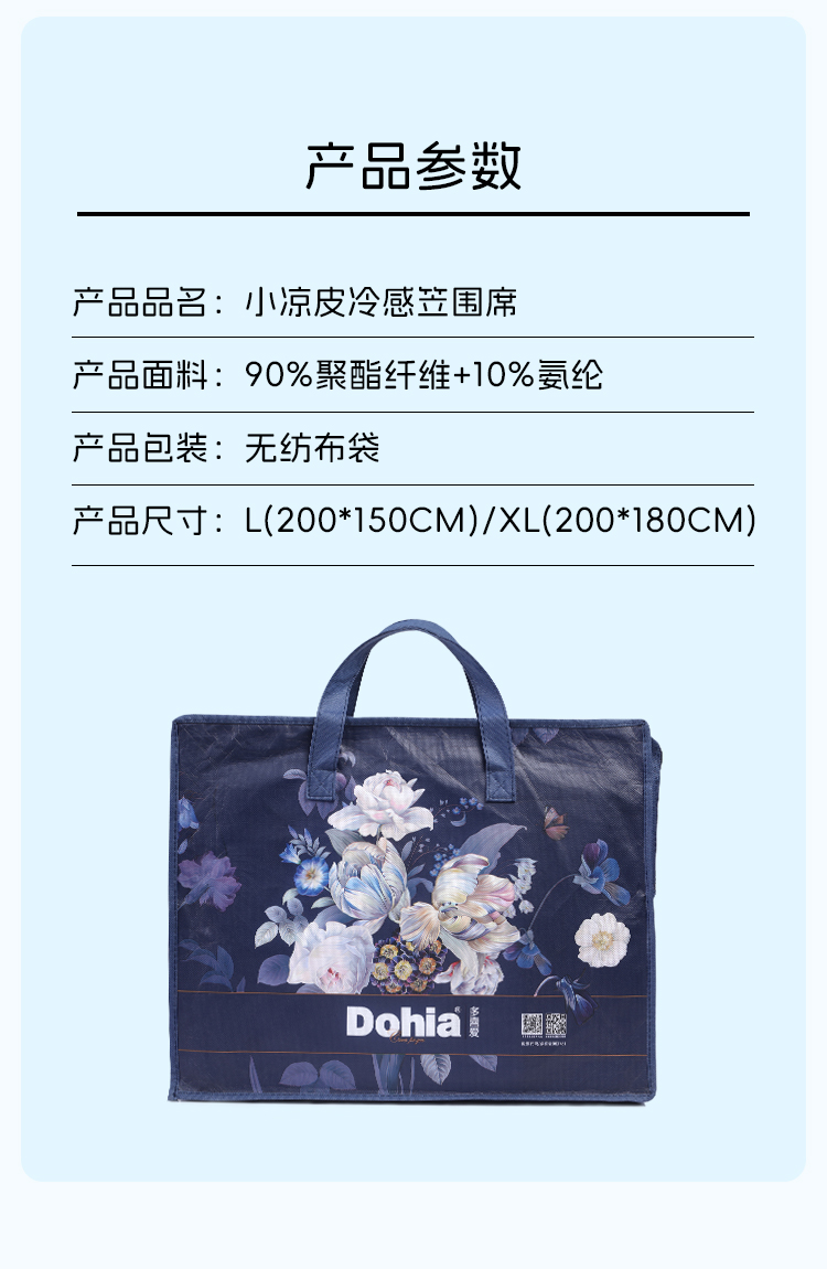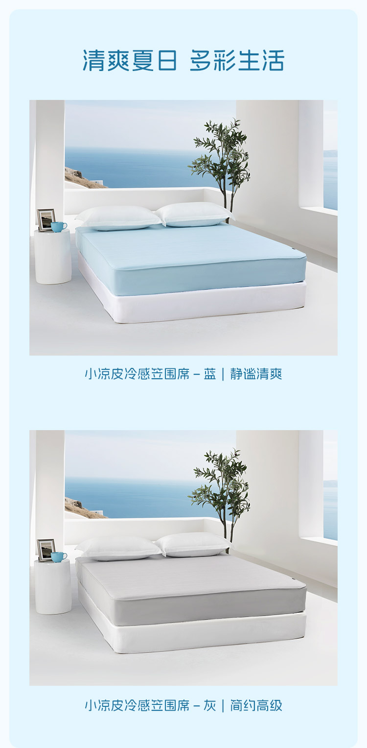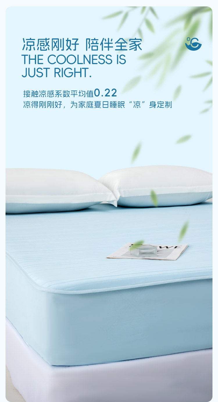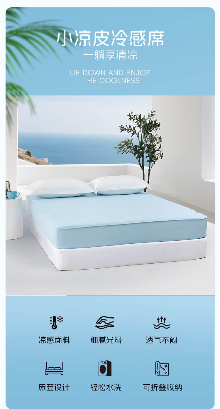 多喜爱 小凉皮冷感笠围席【单件】-灰/蓝【凉感面料】【床笠设计】【可折叠收纳】【可水洗】三明治结构细腻光滑 透气不闷 席子/凉席