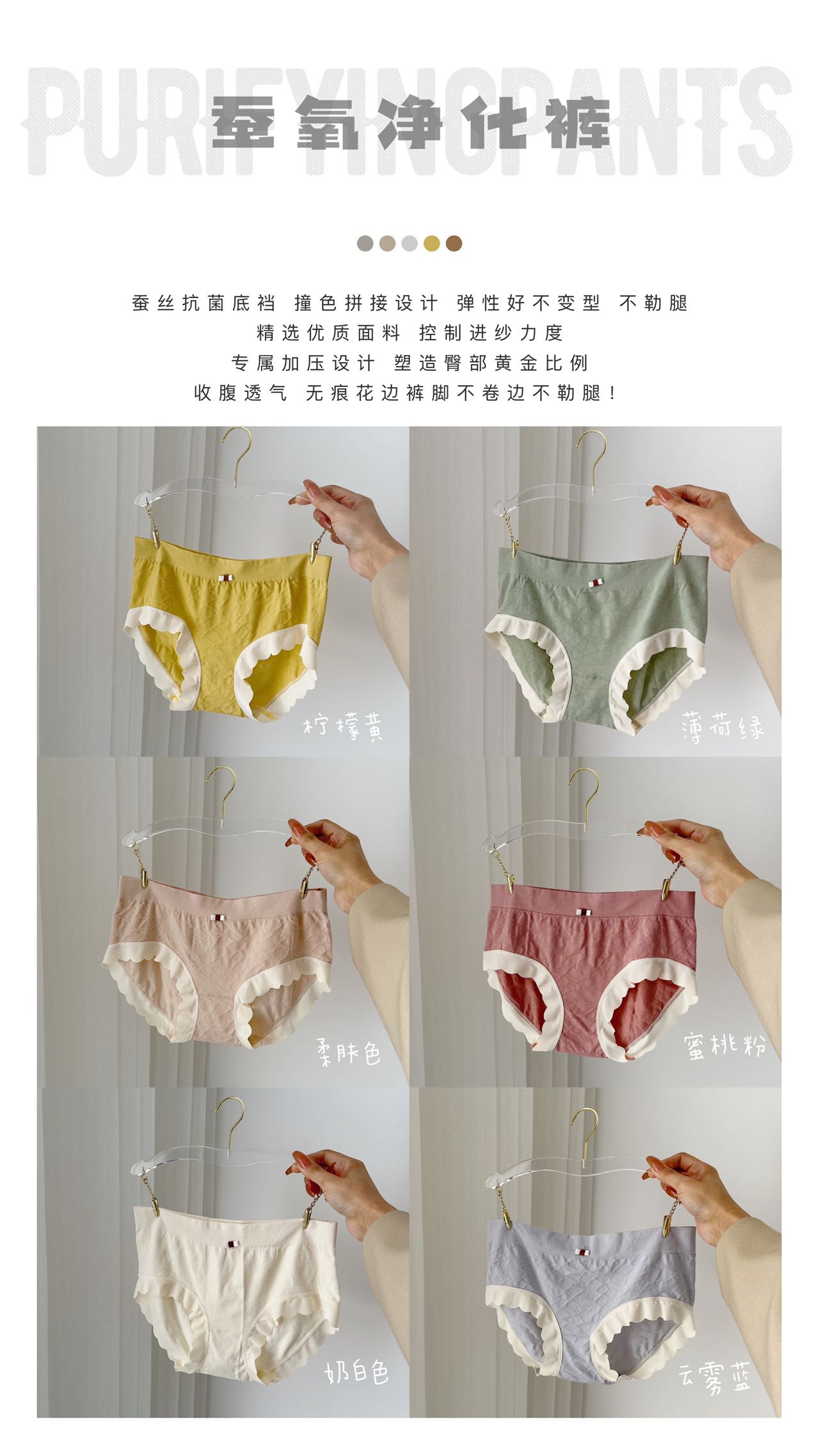 【为女性而生的蚕氧净化裤】!!,满足你对完美内裤的所有想象,软绵的高弹力,无勒感,云朵一样的柔软!!六色可选24h零感体验自由不束缚胖MM也能轻松驾驭