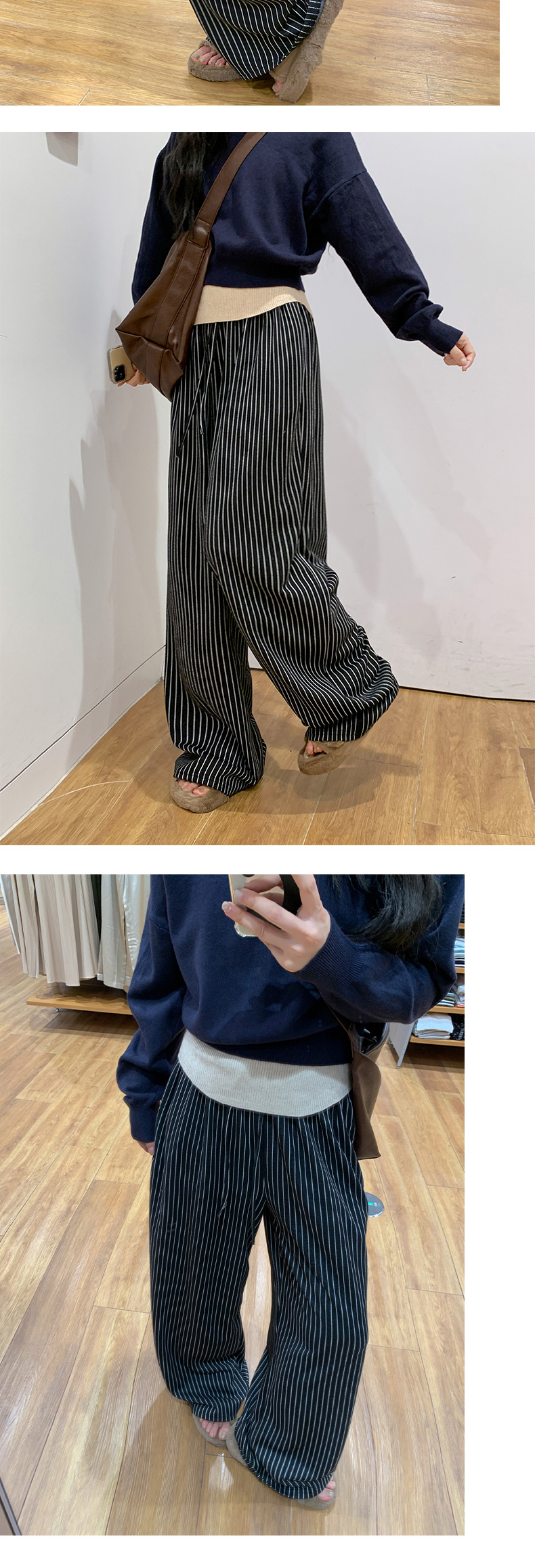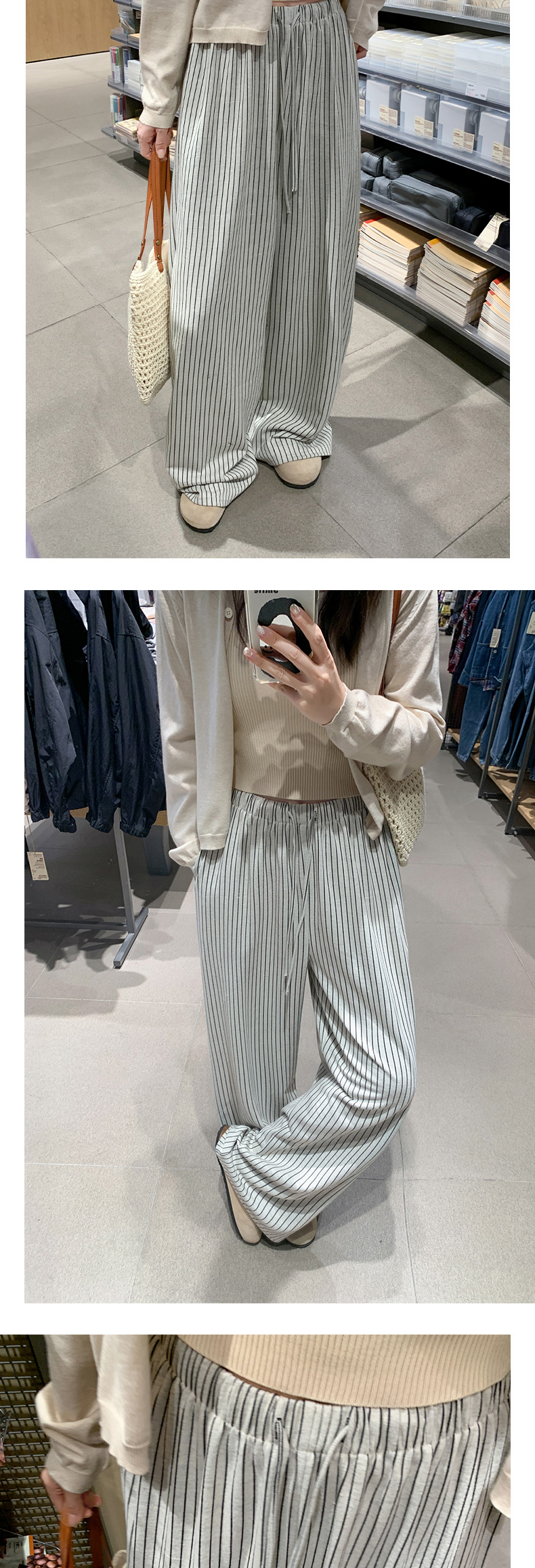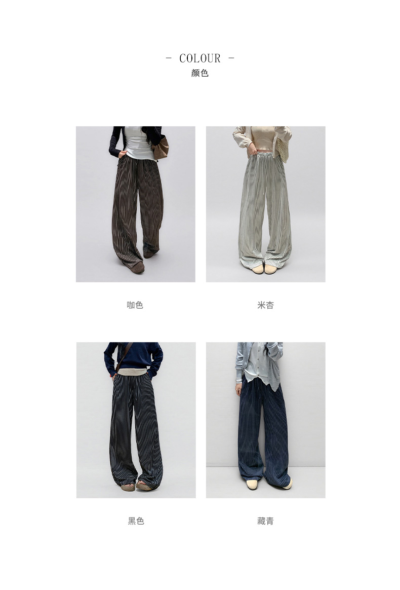 【3-5天发】慵懒垂感条纹高腰抽绳阔腿裤