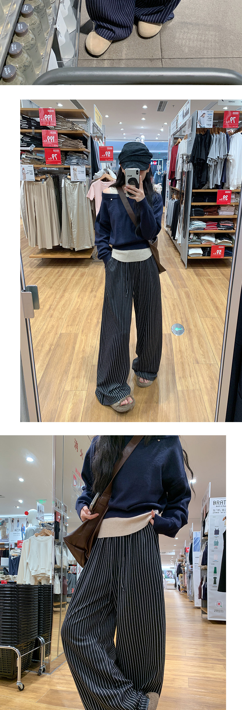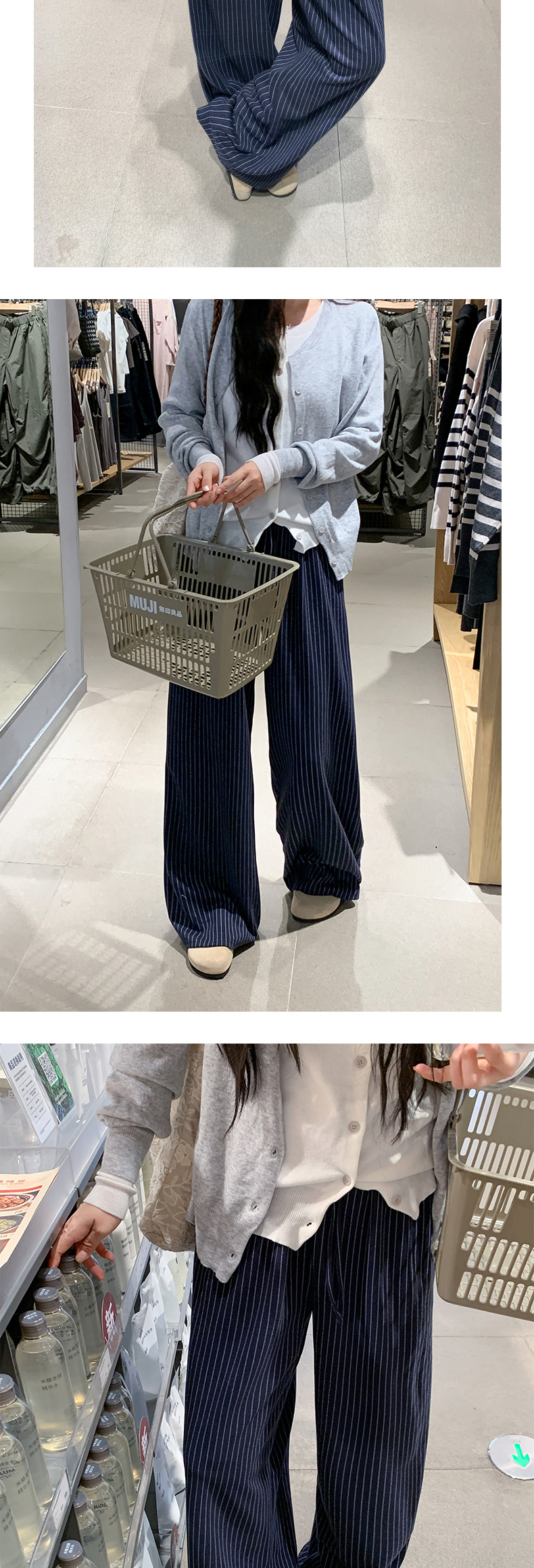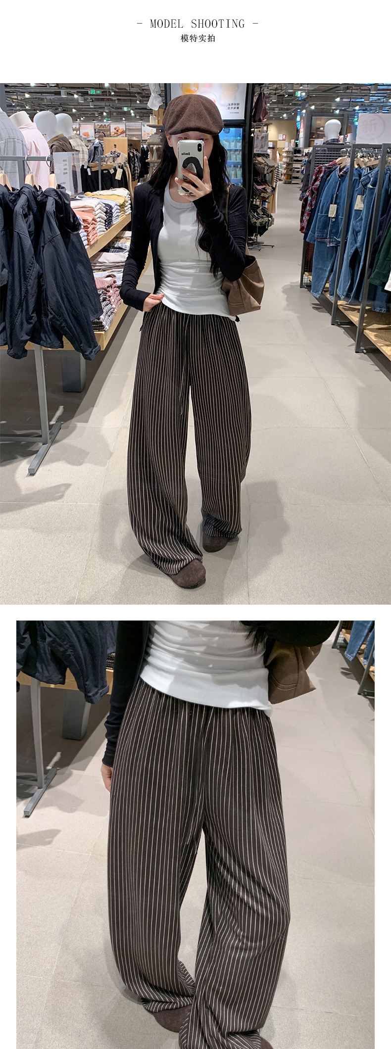 【3-5天发】慵懒垂感条纹高腰抽绳阔腿裤