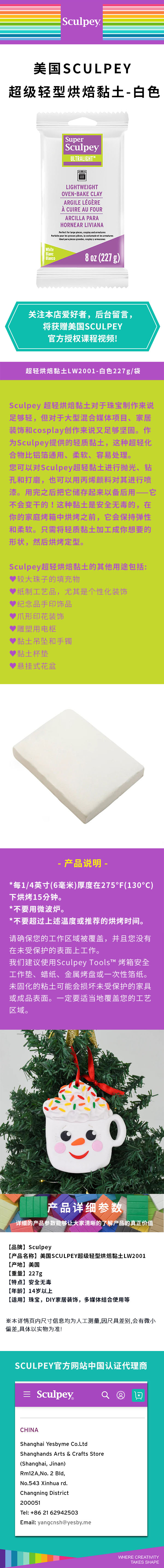美国SCULPEY超轻烘焙黏土白色LW2001