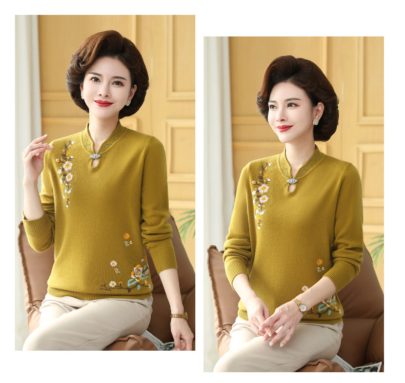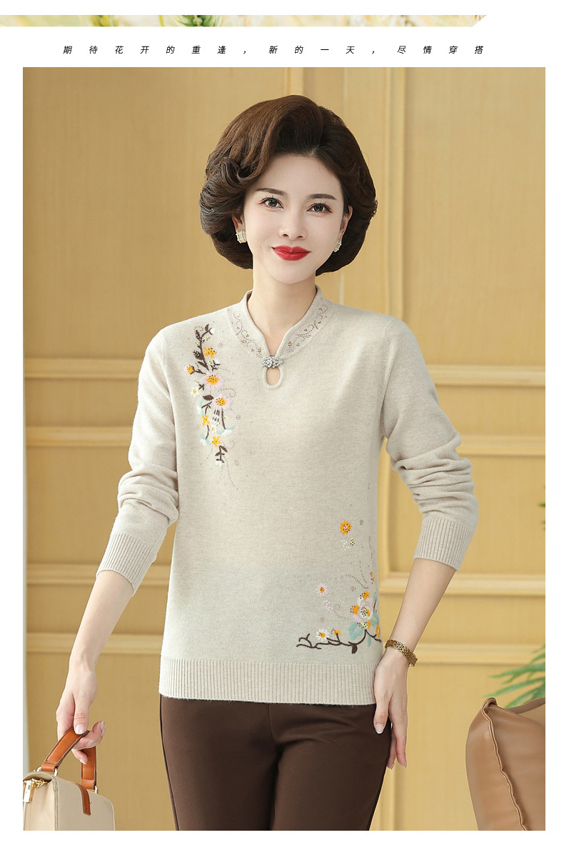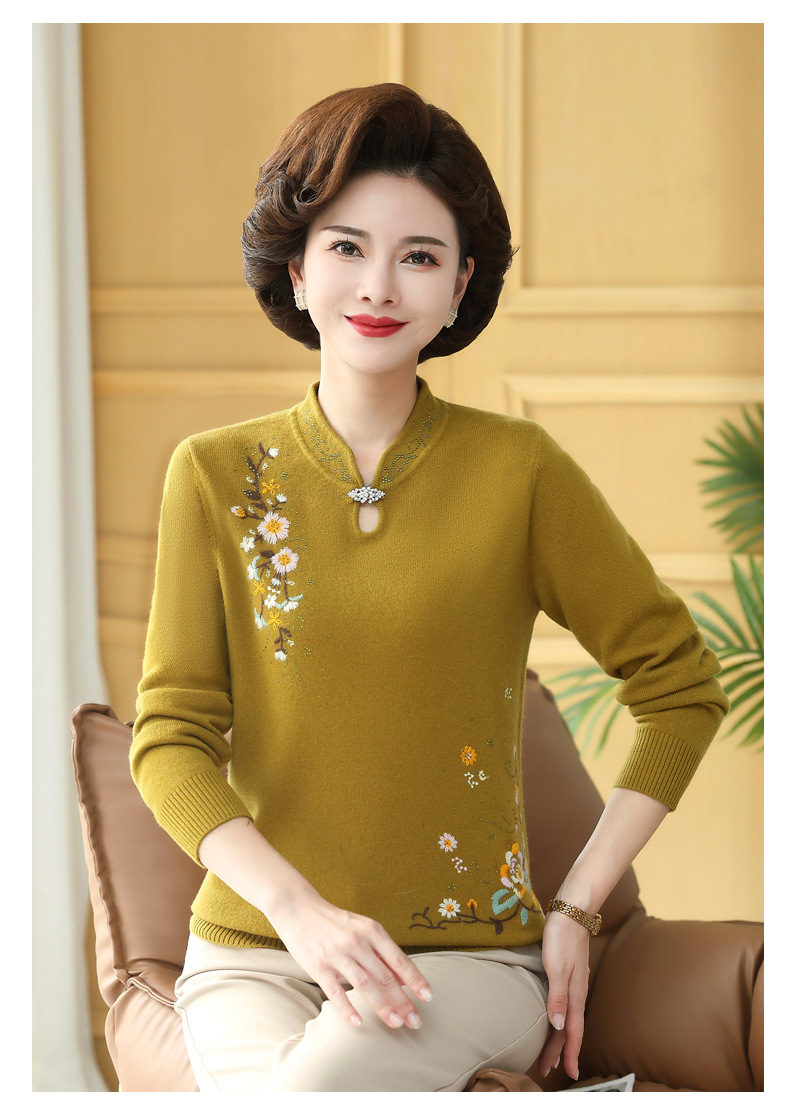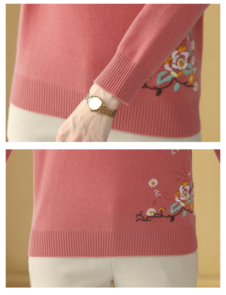 QYR203羊毛衫女100纯羊毛打底衫绣花结婚宴礼服中老年妈妈装秋冬毛衣 商品图3