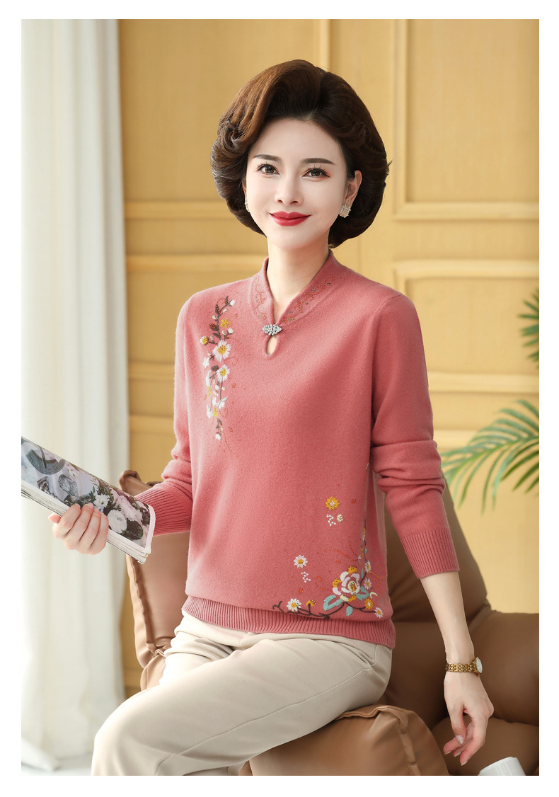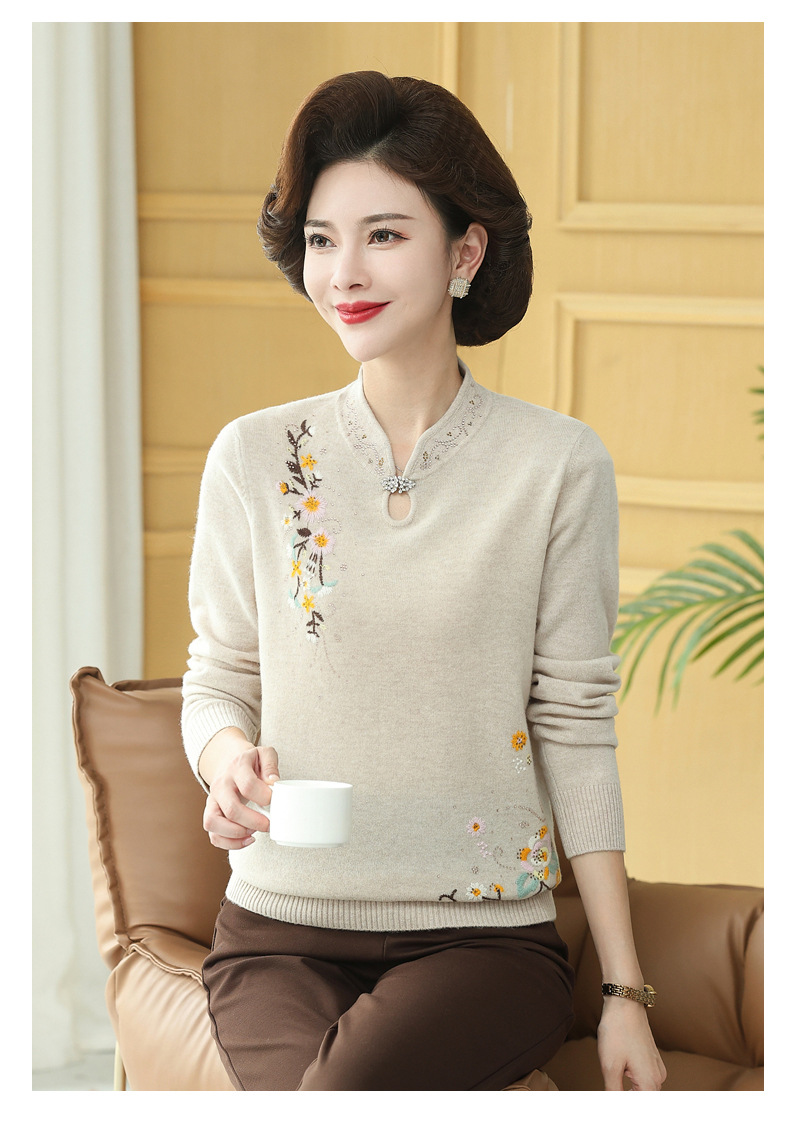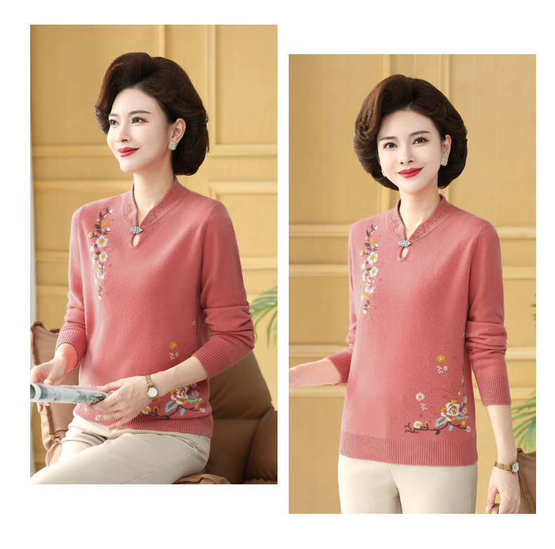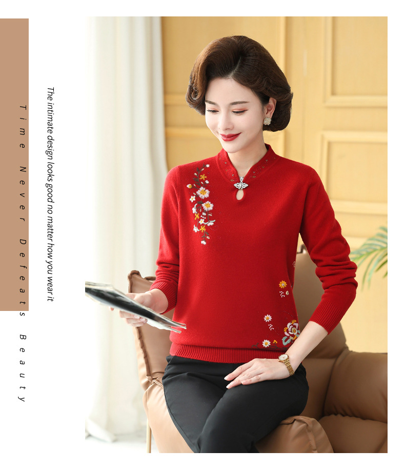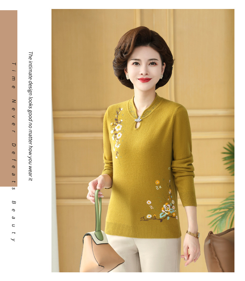 QYR203羊毛衫女100纯羊毛打底衫绣花结婚宴礼服中老年妈妈装秋冬毛衣 商品图3