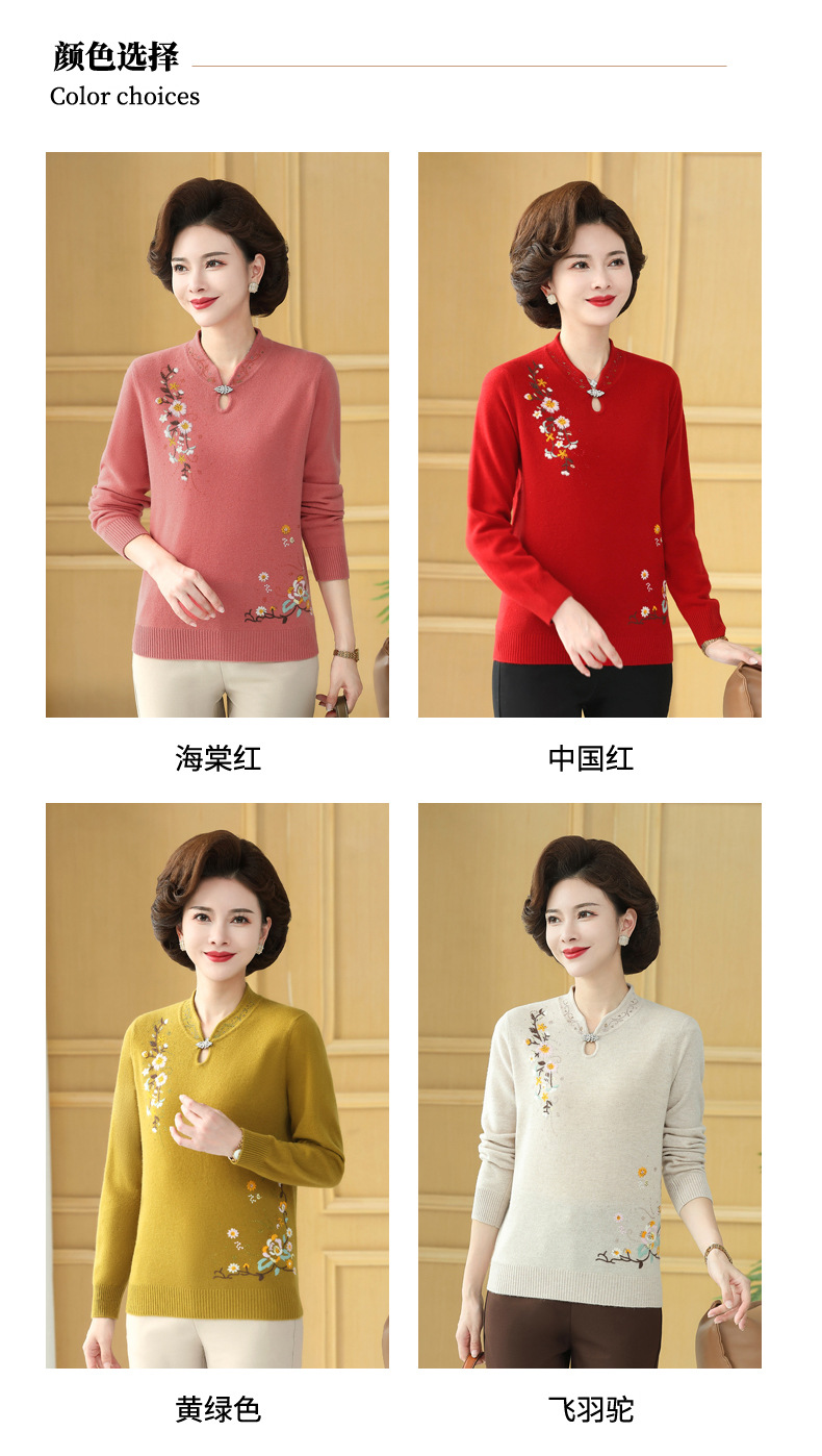 QYR203羊毛衫女100纯羊毛打底衫绣花结婚宴礼服中老年妈妈装秋冬毛衣 商品图4
