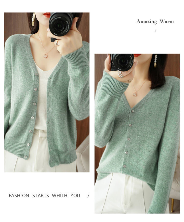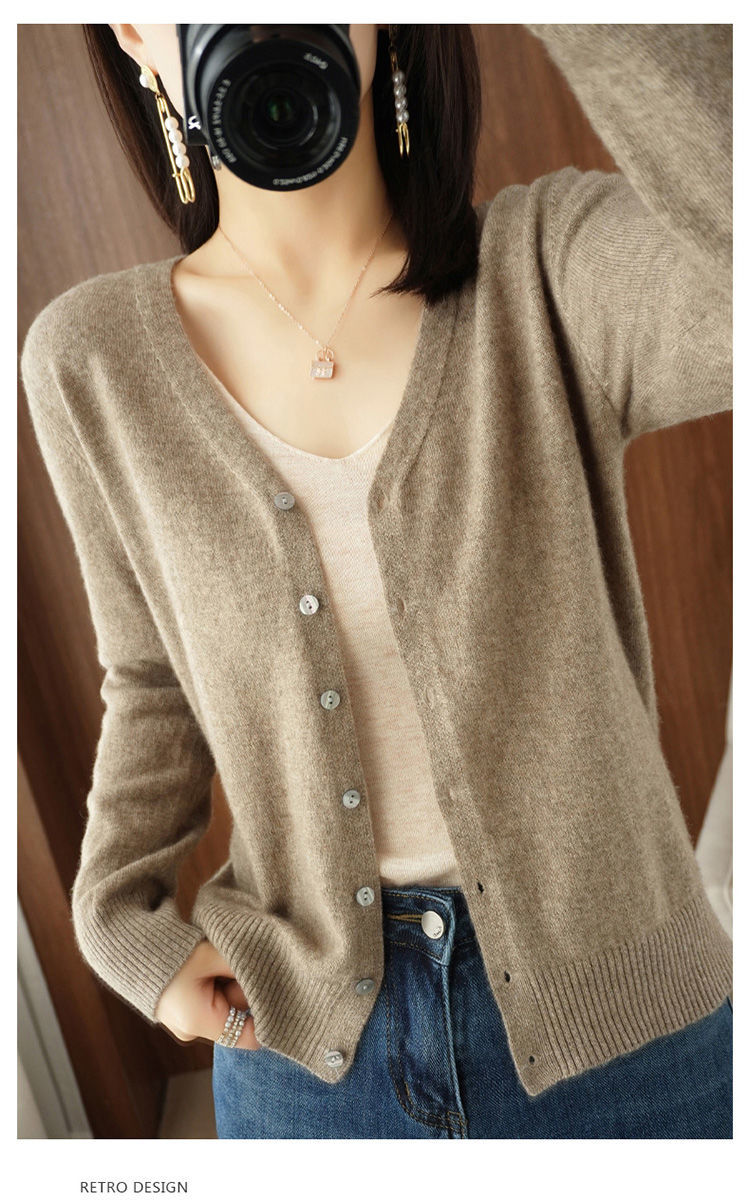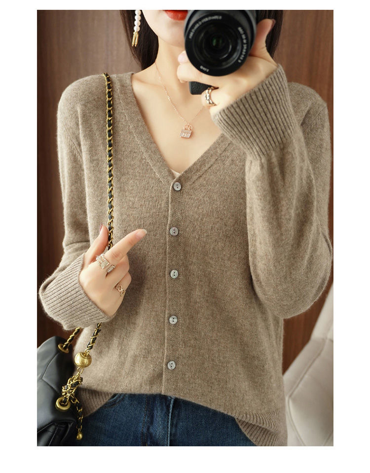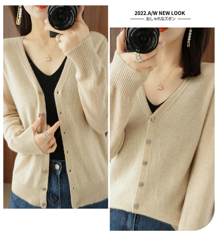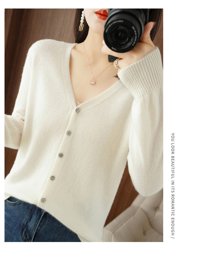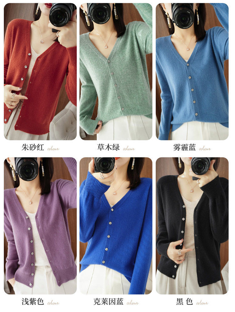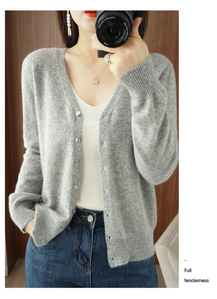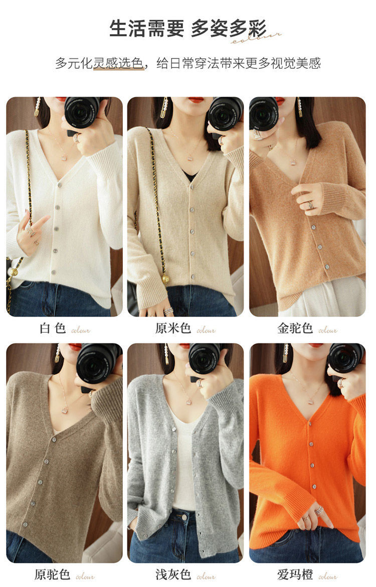 TZW-专柜品质针织V领开衫女宽松大码针织衫百搭毛衣外套