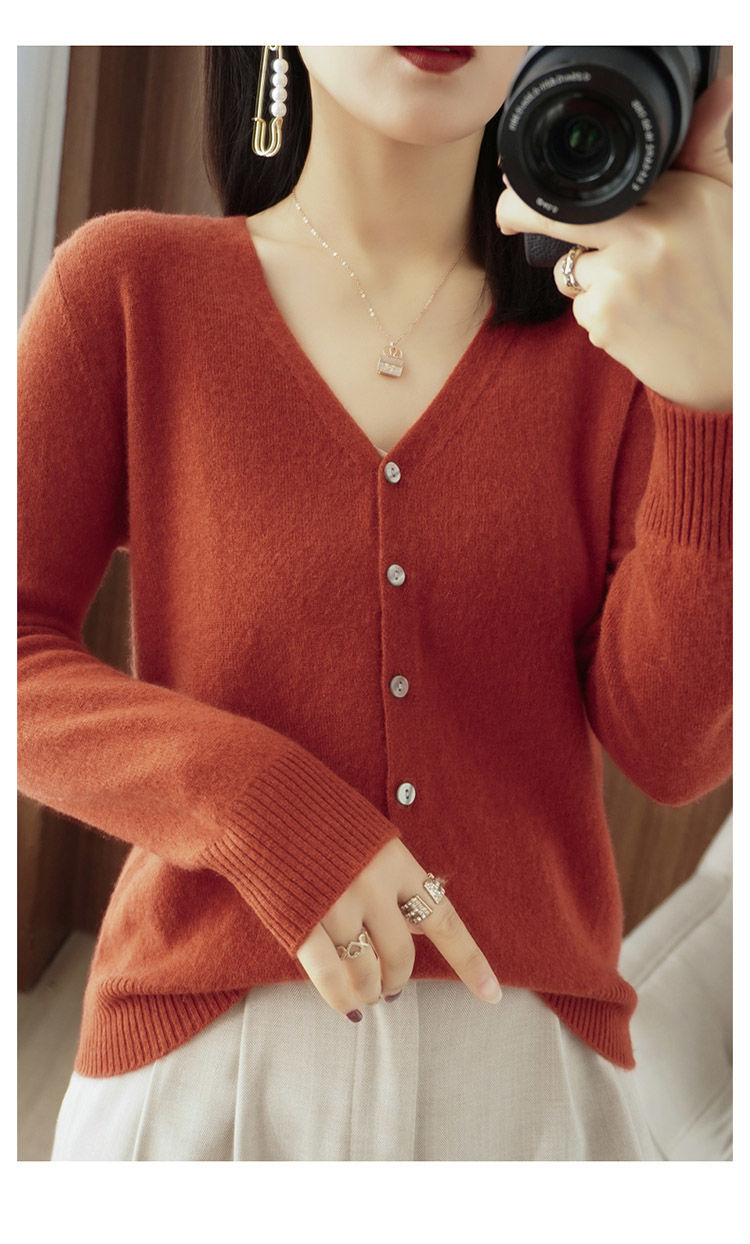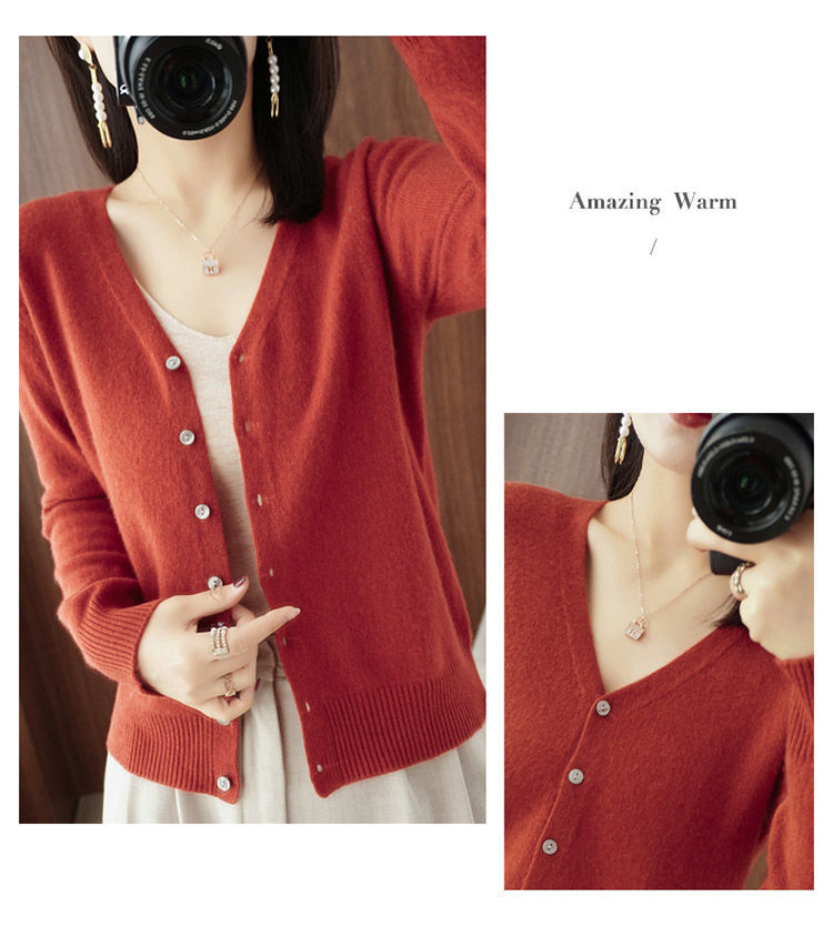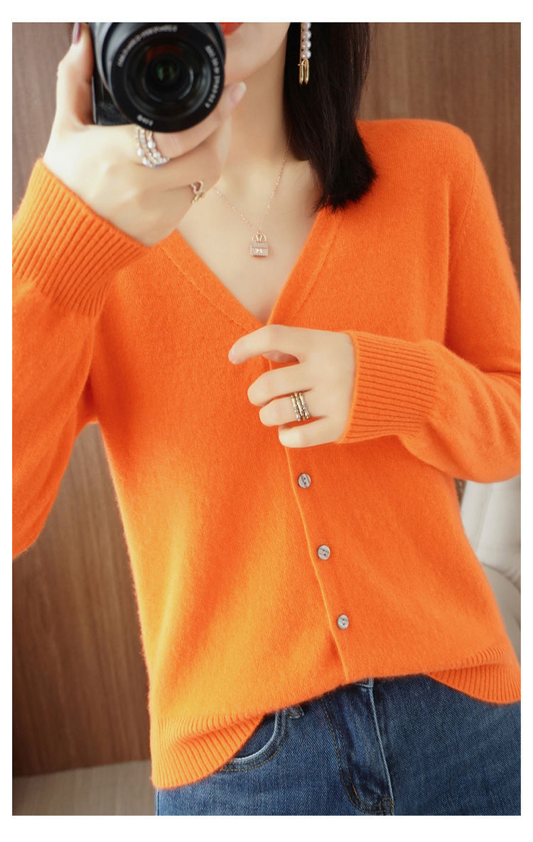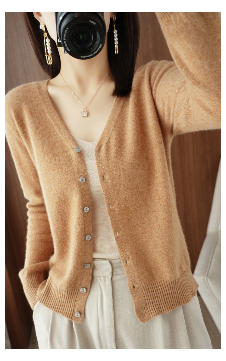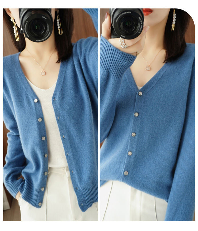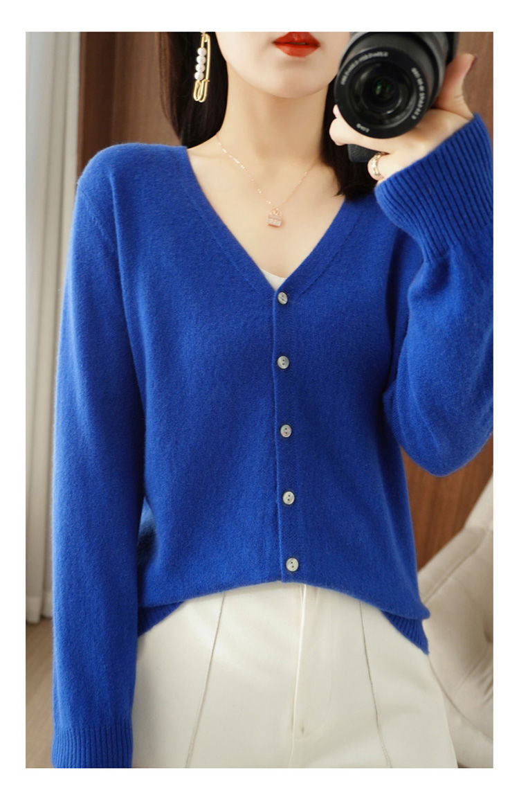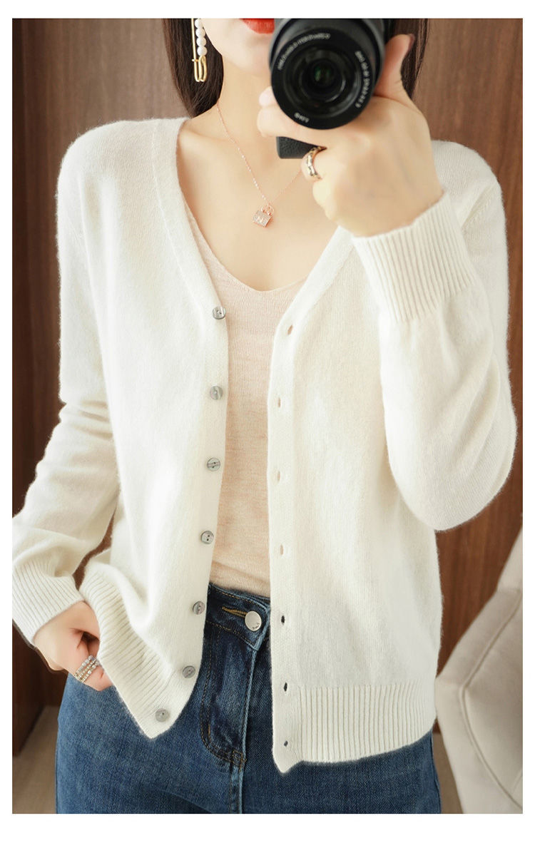 TZW-专柜品质针织V领开衫女宽松大码针织衫百搭毛衣外套