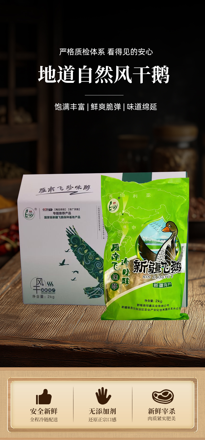 额雁·新疆塔城风干飞鹅2000g/只 肉质细腻嫩香 久煮不易柴