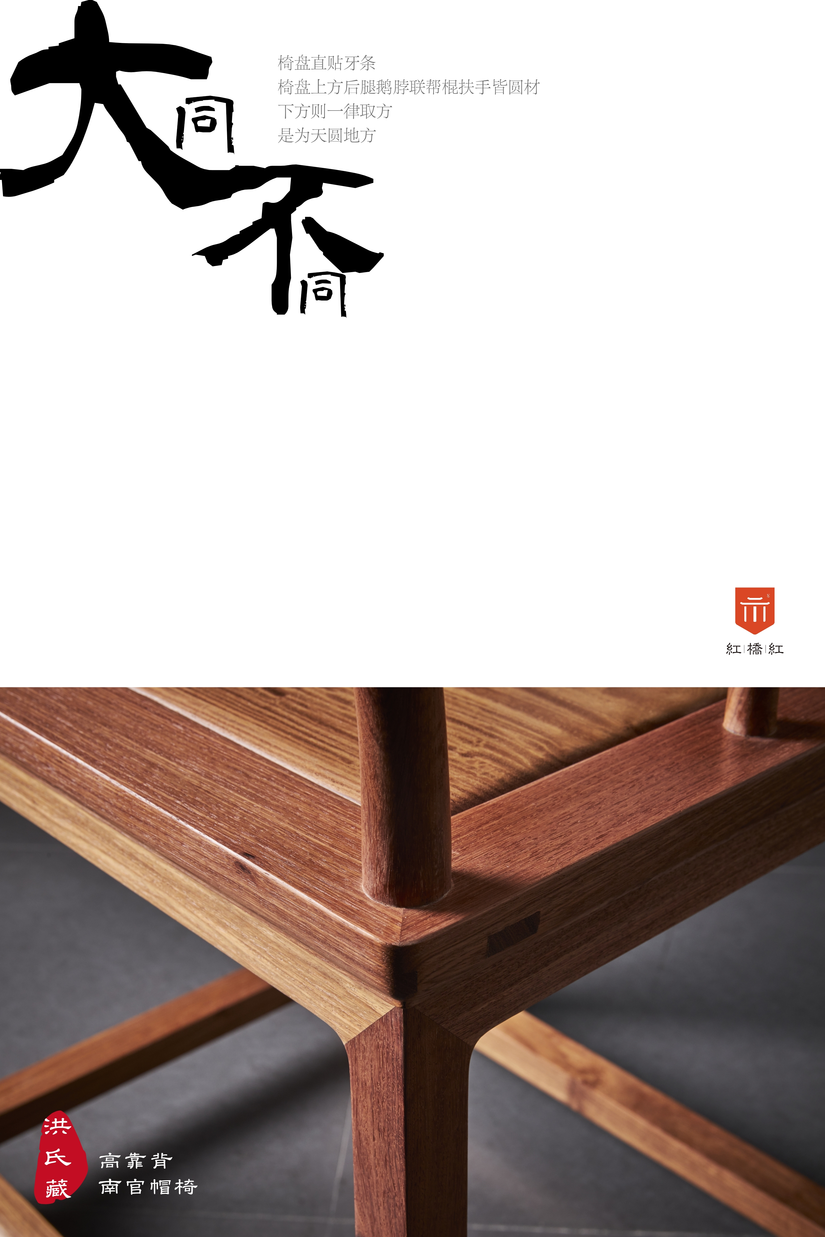 椅盘面上均用圆材,椅盘面下则用方材,形成了天圆地方的寓意,牙条紧贴椅盘面,四足内翻兜转有力的小马蹄,管脚枨并不是常见的步步高形式,而是齐平造法,因而用合掌而非格角的方式与腿足相交,以规避榫眼过分集中造成的开裂风险,踏脚枨也削出一段弯弧,有如经年使用形成的天然磨损。