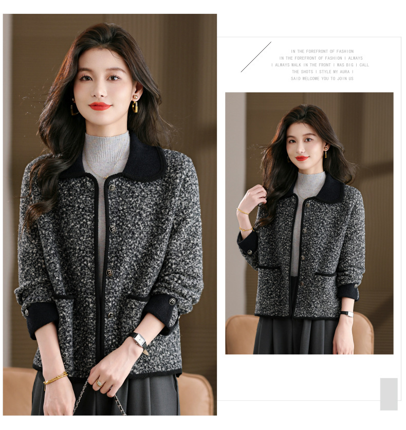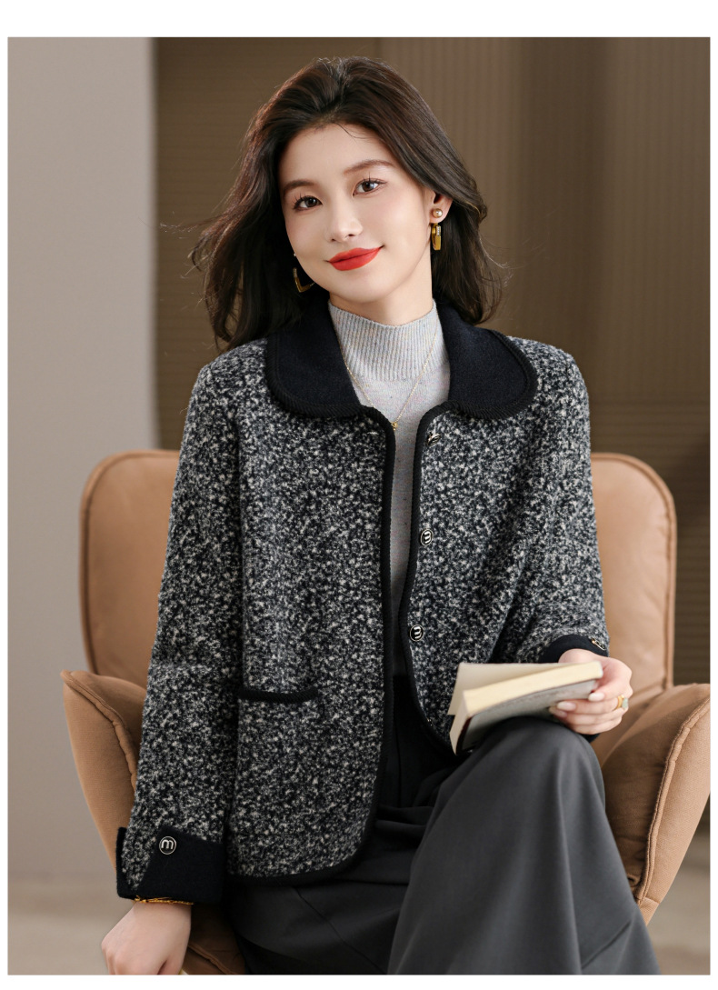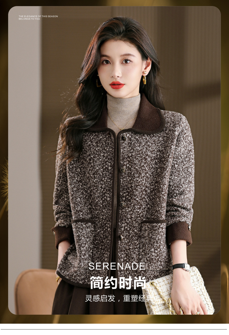 CC大码胖mm秋装毛呢开衫气质高级感时尚女装2025新款翻领外套女显瘦